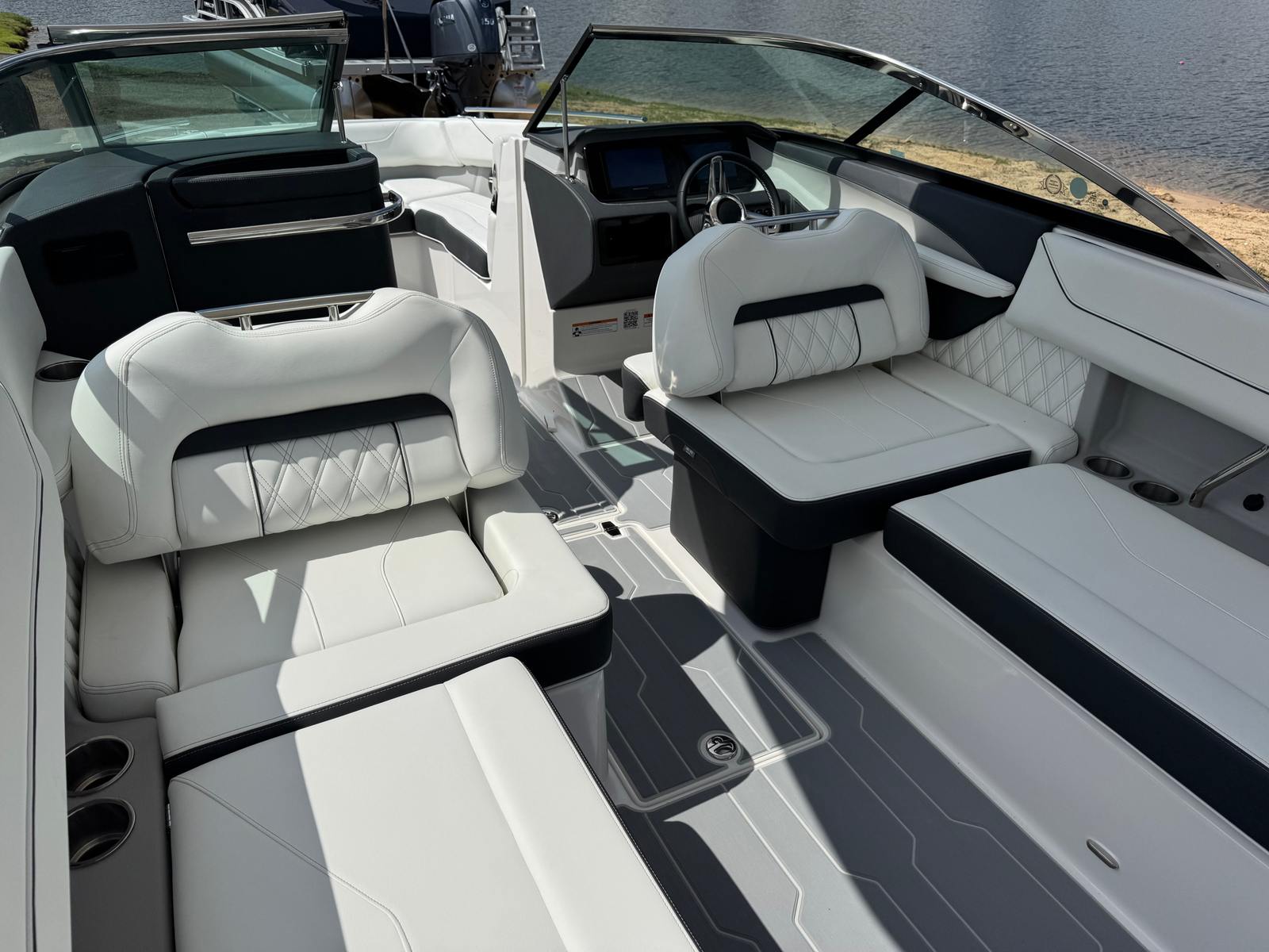 The 2026 Regal LS6 is designed with both aesthetics and functionality in mind. Its striking hull color in Tahiti Beach White is beautifully complemented by a Mediterranean Blue bottom, creating a sophisticated and eye-catching profile that will turn heads at any marina. Step aboard and you are greeted by a luxurious Titanium interior, offering a modern and inviting atmosphere for you and your guests.Enjoy the comfort and safety of the SeaDek cockpit sole and SeaDek swim platform, providing a soft, non-slip surface that enhances both style and practicality. The swim platform cover protects your boat’s rear deck, while the travel storage cover ensures your LS6 remains pristine during transport and storage. The dual battery switch with tray and cables, along with a battery charger, ensures you have reliable power for all your adventures, so you can focus on fun without worry.