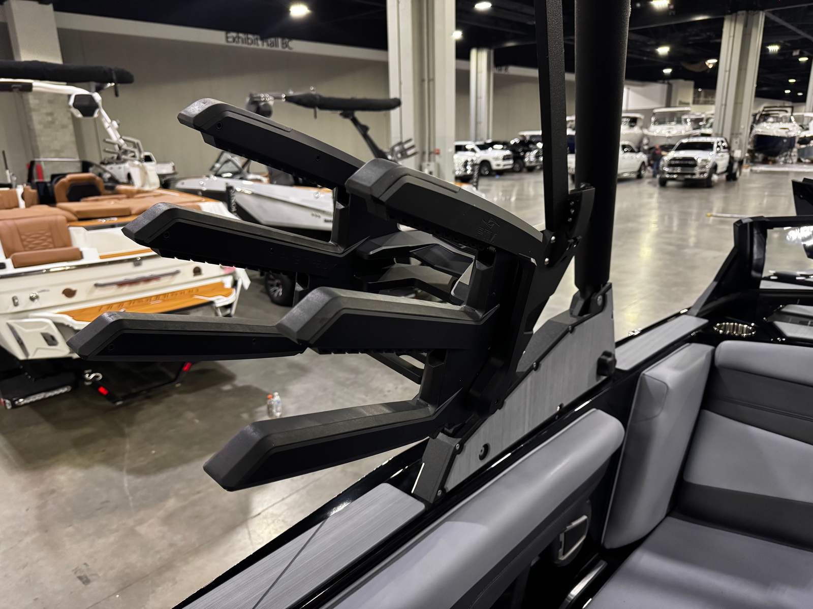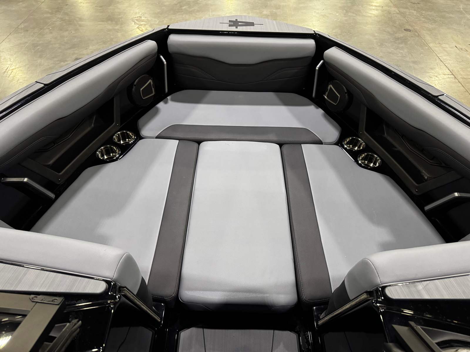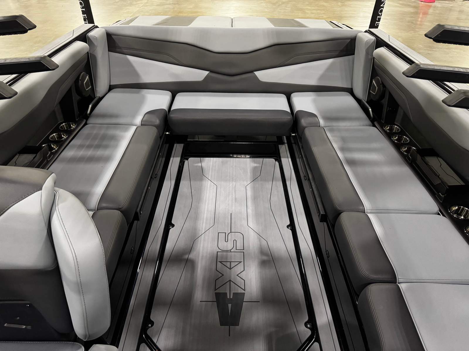The Axis T235 is loaded with innovative features and thoughtful details that elevate your time on the water. The ski pylon is perfect for towing skiers and wakeboarders, while the Deck Trac nonskid complete deck kit ensures safe and confident movement around the boat. Protect your investment with the CS Boat Cover featuring APS 2 and a dedicated swimboard cover, keeping your boat looking pristine between adventures.Stay informed and in control with the integrated depth finder, and enjoy precision speed management with the Zero Off GPS Cruise and Compass system—ideal for maintaining perfect speeds for every rider. Stainless cup holders add a touch of luxury and durability, while the Ballast HI FLO PNP Plumbing with Auto Vent allows for quick and efficient ballast adjustments to customize your wake. Three pairs of pull-up cleats provide secure and convenient docking options.Surf enthusiasts will love the Surf Gate with Axis Surfband, offering on-the-fly wave customization for the ultimate surf experience. The ChillAX Cockpit Flip Up Seats provide versatile seating arrangements, maximizing comfort and social interaction for everyone onboard.