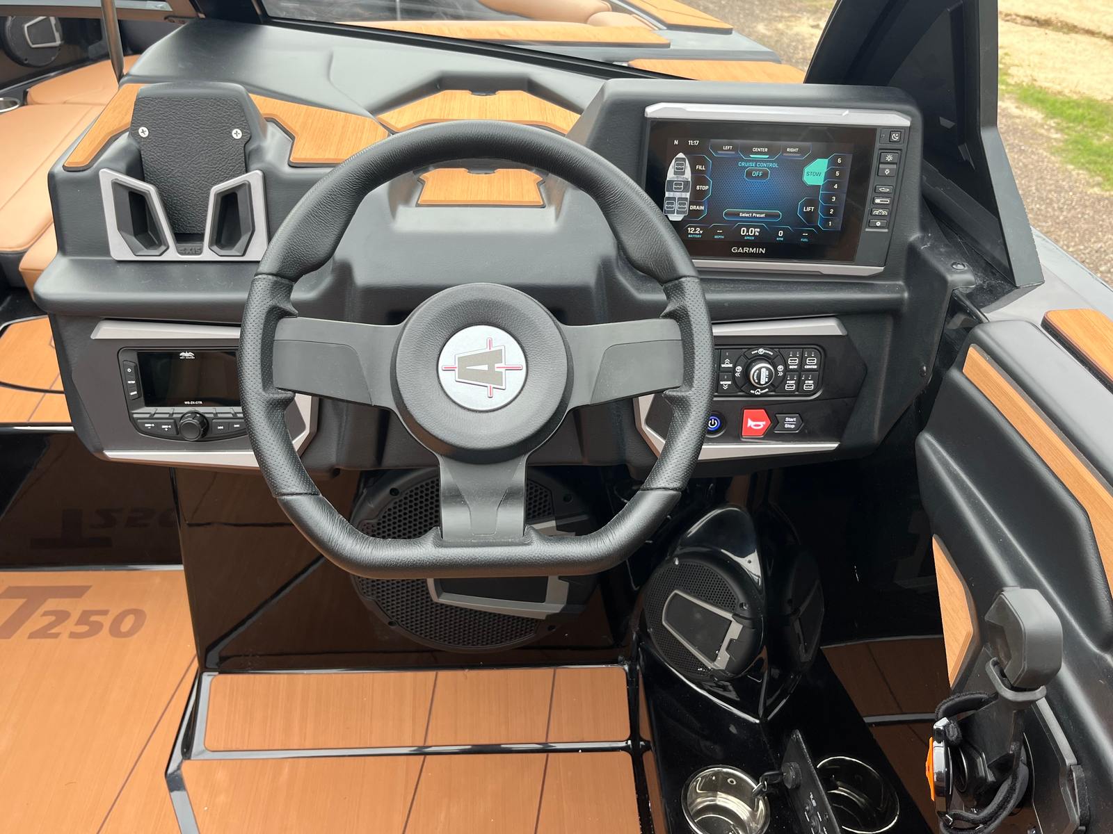 The 2025 Axis T250 is loaded with special features that elevate your boating experience to new heights. The exterior color upgrade allows you to personalize your boat’s appearance, ensuring it stands out wherever you go. Inside, the interior color upgrade adds a touch of sophistication and comfort, making every outing feel like a luxury escape. Trailer options provide flexibility and convenience for transporting your boat to your favorite lakes and rivers.For sun protection and gear storage, the CS Bimini Dual Coverage with surf straps and rope pockets offers ample shade and secure storage for your wakeboards and surf ropes. The CS boat cover with APS 2 and swimboard cover keeps your investment protected from the elements, preserving its pristine condition year after year.Music lovers will appreciate the Stereo Option - Pack 3, which includes a powerful sound system, a convenient stereo remote, and a 12-inch subwoofer with an amplifier. This setup ensures that your favorite tunes are always part of the adventure, whether you are anchored in a quiet cove or cruising at full speed.