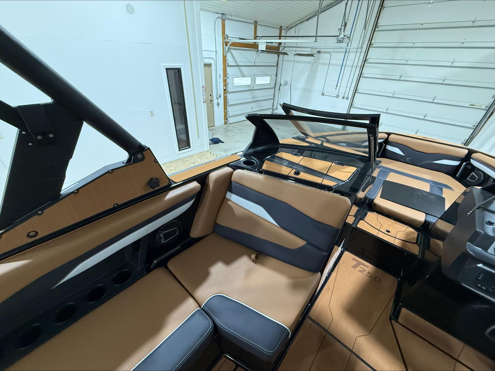 The 2025 Axis T250 comes loaded with special features designed to enhance your boating experience and maximize enjoyment. The Ebony-Speakers – Wet Sounds Rev 10 (1 set) deliver crystal-clear audio, ensuring your favorite tunes set the perfect mood for every outing. The Battery Set Up – Option 2 provides reliable power management, keeping your electronics running smoothly throughout the day. The CS Bimini Dual Coverage with surf straps and rope pockets offers versatile shade and convenient storage for your gear, while the depth finder helps you navigate safely and confidently.The driver’s seat is equipped with a flip-up bolster, allowing for optimal visibility and comfort at the helm. The Zero Off GPS Cruise and Compass system ensures precise speed control and navigation, making it easier than ever to maintain the perfect pace for skiing and wakeboarding. The AW20 Shock Package enhances ride comfort, absorbing bumps and vibrations for a smoother journey. The Edition-Core package adds a touch of luxury and style, while the soft-grip flooring provides a comfortable, non-slip surface for all passengers.