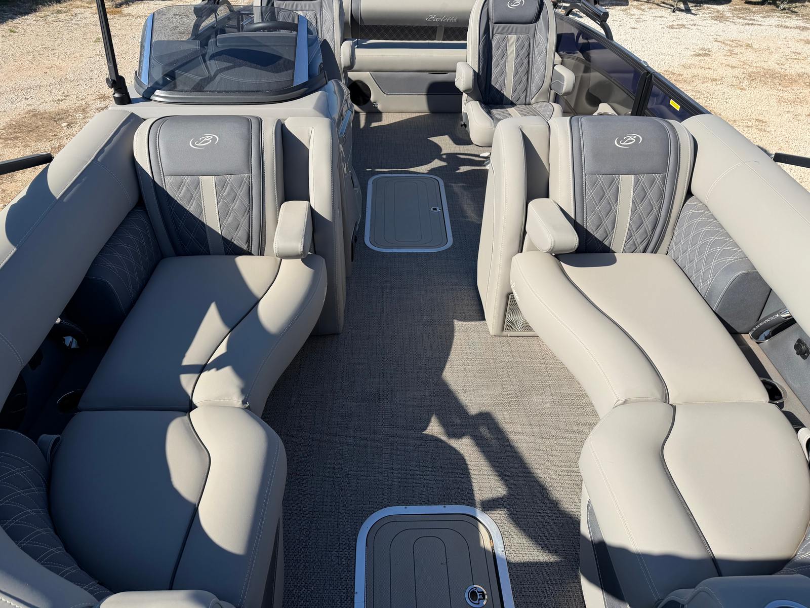 Powered by a robust 350-horsepower engine, the Barletta Lusso L23UC delivers exhilarating performance on the water. With just 30 engine hours, this pontoon boat is barely broken in, ensuring reliability and longevity for seasons to come. The powerful engine provides smooth acceleration and impressive top speeds, making it ideal for water sports, cruising, or simply enjoying a leisurely ride. The Lusso L23UC’s advanced engineering ensures responsive handling and a stable ride, even when navigating choppy waters or making tight turns. Whether you’re towing a tube, heading to your favorite cove, or simply enjoying a sunset cruise, this Barletta boat for sale offers the performance you need for any adventure.