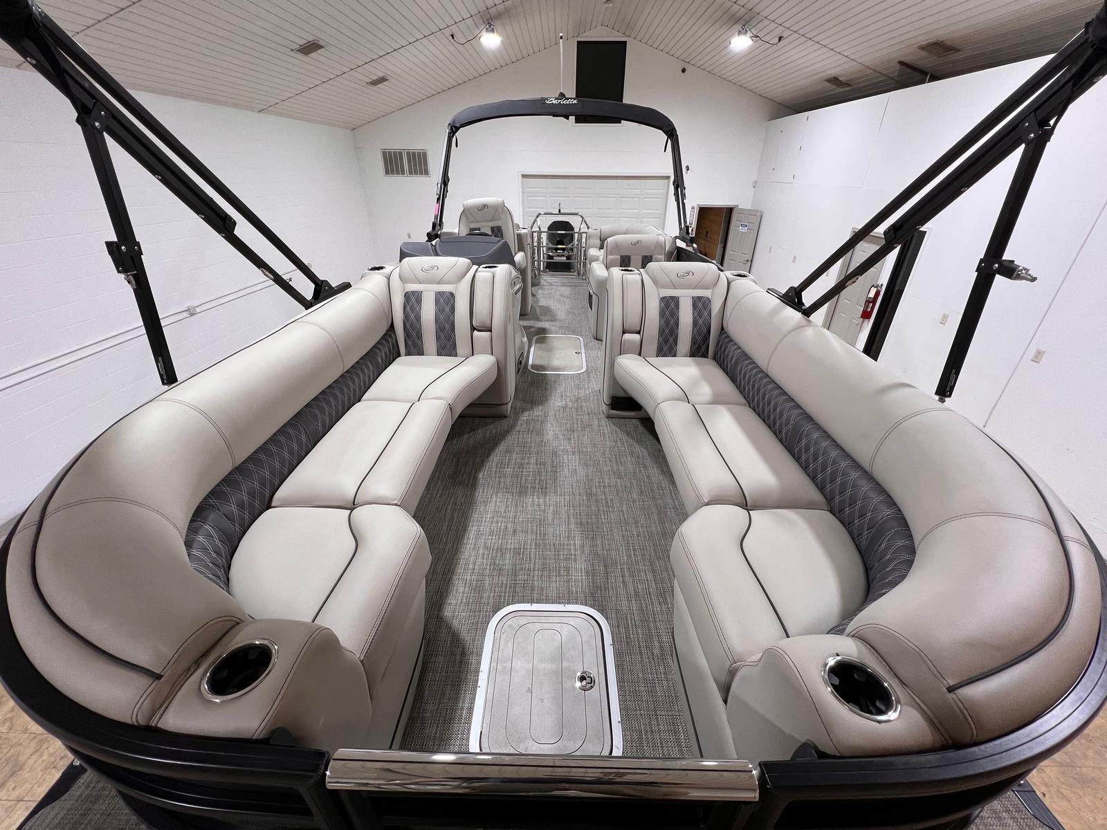 In summary, the 2022 Barletta L25QSS pontoon is a remarkable vessel that combines luxury, performance, and practicality in one stunning package. With its powerful 300-horsepower engine, spacious 27.5-foot layout, and thoughtful features, this used Barletta boat for sale is ready to deliver endless fun and relaxation on the water. Whether you are searching for a pontoon boat for sale for family outings, fishing trips, or social gatherings, the Barletta L25QSS is sure to exceed your expectations.Don’t miss your chance to own this exceptional pontoon boat. Contact the dealer today to learn more about the Barletta L25QSS and schedule your personal viewing. Your next adventure awaits on the water!