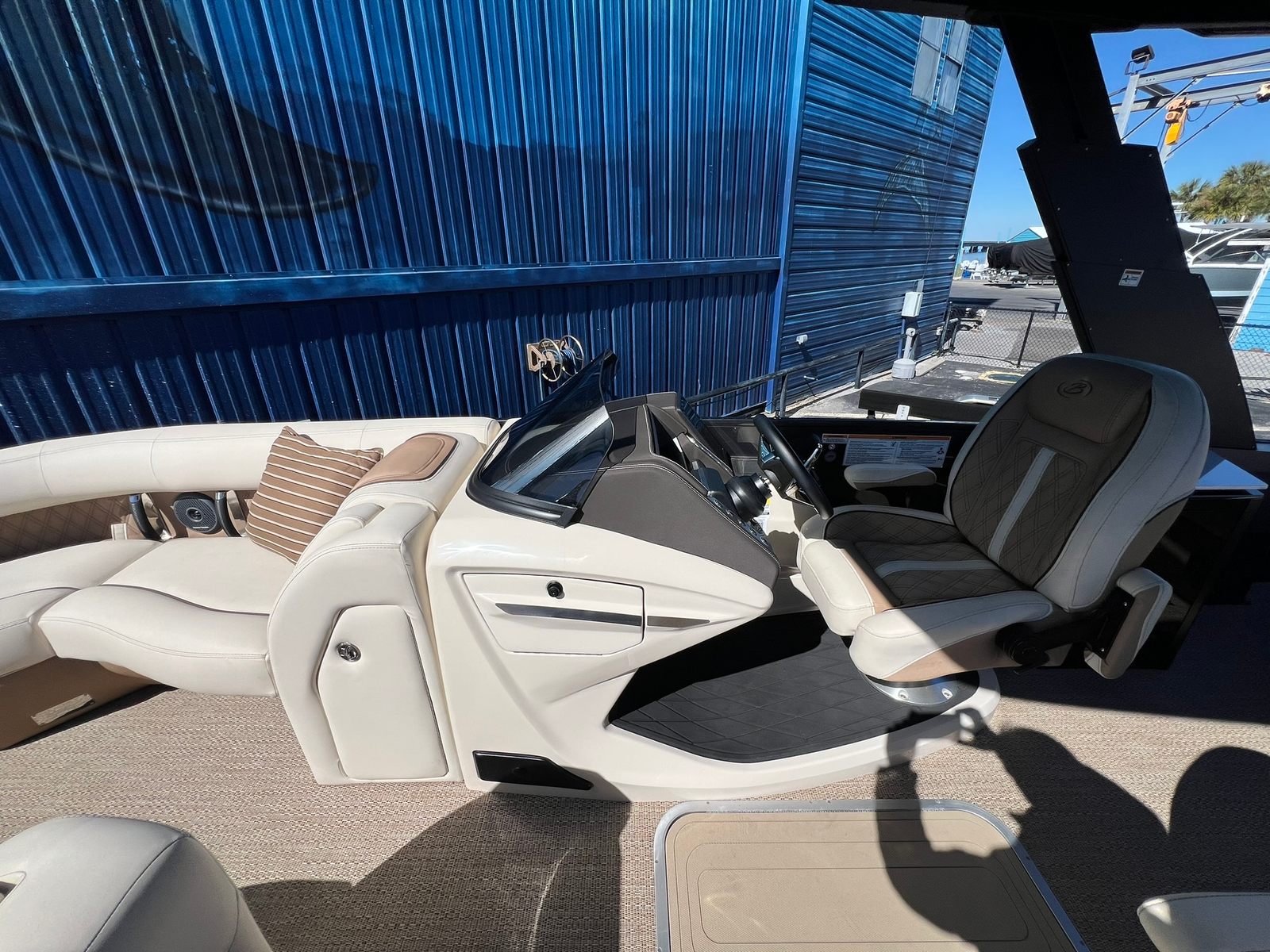 The 2024 Barletta Reserve V26UC is packed with features that enhance both comfort and convenience. Its 28.5-foot length provides ample space for guests, making it a fantastic choice for social gatherings, family outings, or relaxing solo escapes. The pontoon’s layout is thoughtfully designed to maximize seating, movement, and storage, ensuring that every inch of space is utilized to its fullest potential.Special features of the Barletta Reserve V26UC include premium upholstery, high-quality flooring, and a stylish helm that puts all controls within easy reach. The attention to detail in the design ensures that every journey is as comfortable as it is enjoyable. The pontoon’s construction is robust and durable, reflecting Barletta’s reputation for building boats that stand the test of time.