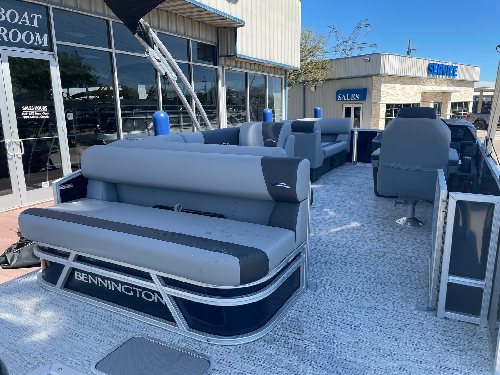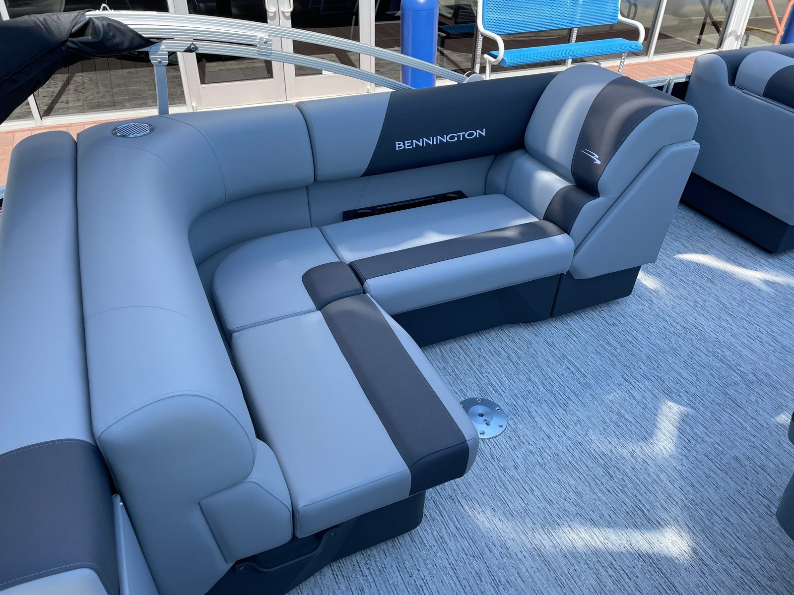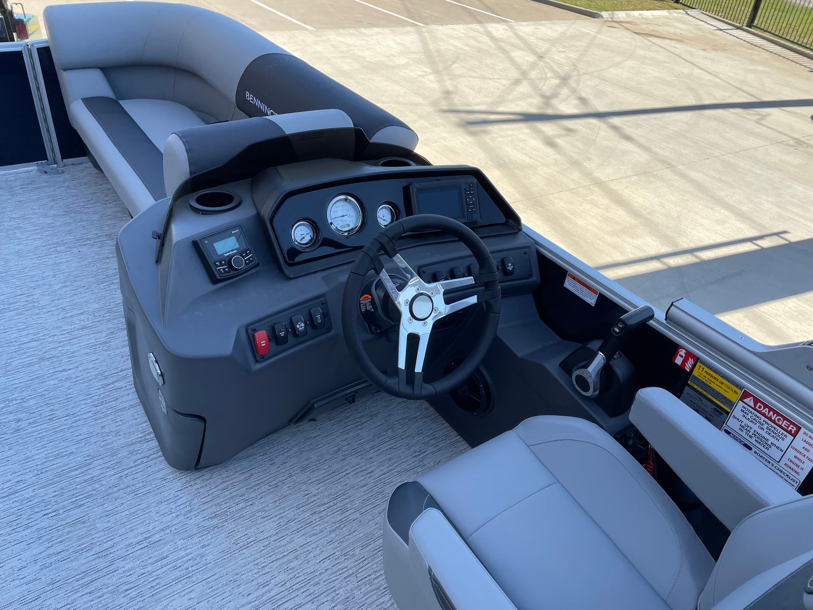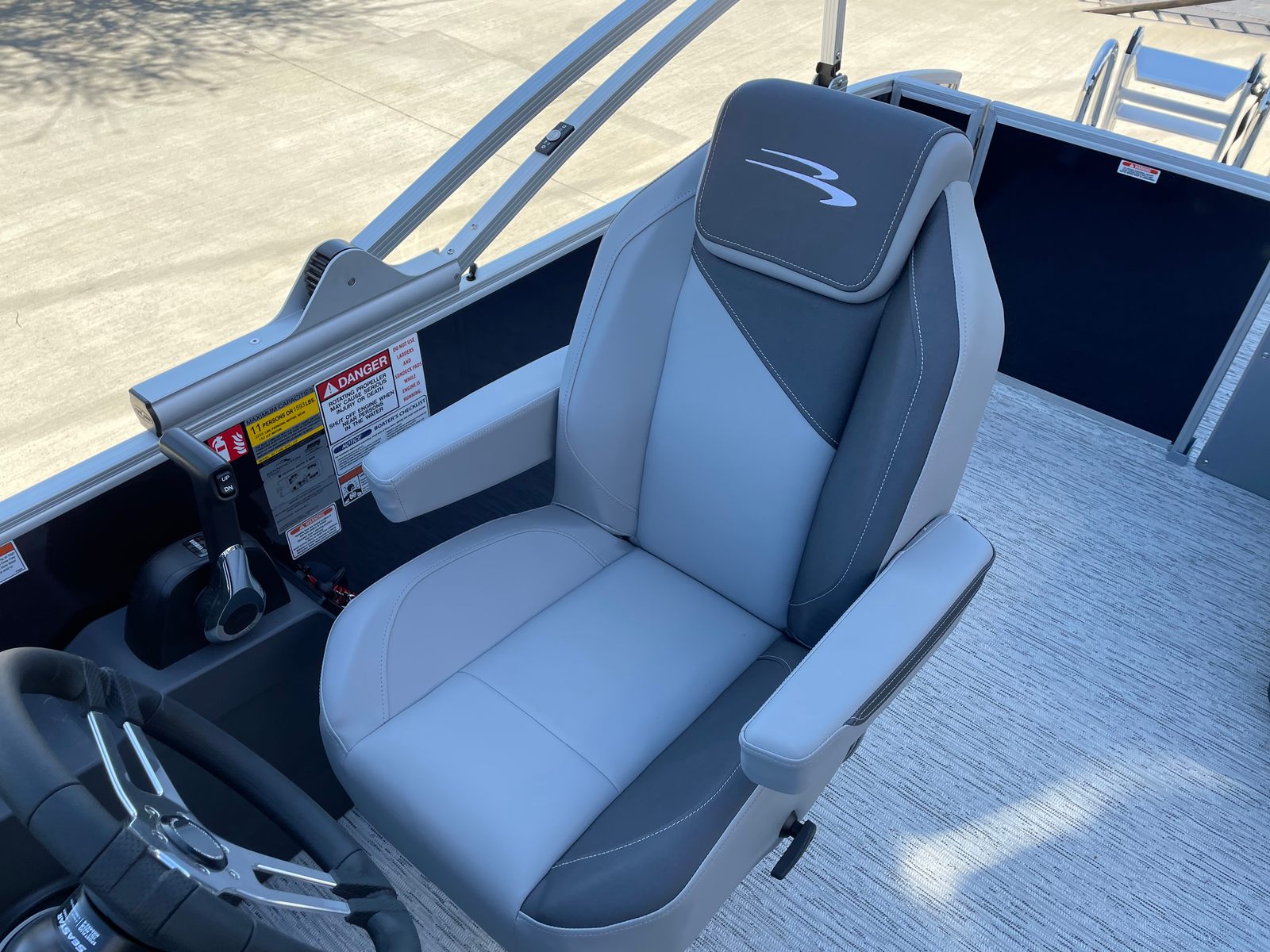 Step aboard the Bennington 21 SLJ SPS and discover a host of premium features designed to maximize your enjoyment and convenience. The single switch battery system provides reliable power management, while the electric power top curved Bimini offers effortless shade adjustment with a sleek, modern look. The midnight black canvas paired with shadow grey accents creates a sophisticated aesthetic, complemented by the ironwood dash accent for a touch of elegance at the helm. Stay connected and powered up with the integrated wireless charger, ensuring your devices are always ready for action. The Valencia grey upholstery adds a refined touch to the spacious seating areas, inviting you to relax in comfort as you cruise. The SPS Performance Package, featuring a 33-gallon transom direct fill, further enhances the boat’s stability and fuel capacity, supporting longer journeys and more time on the water.