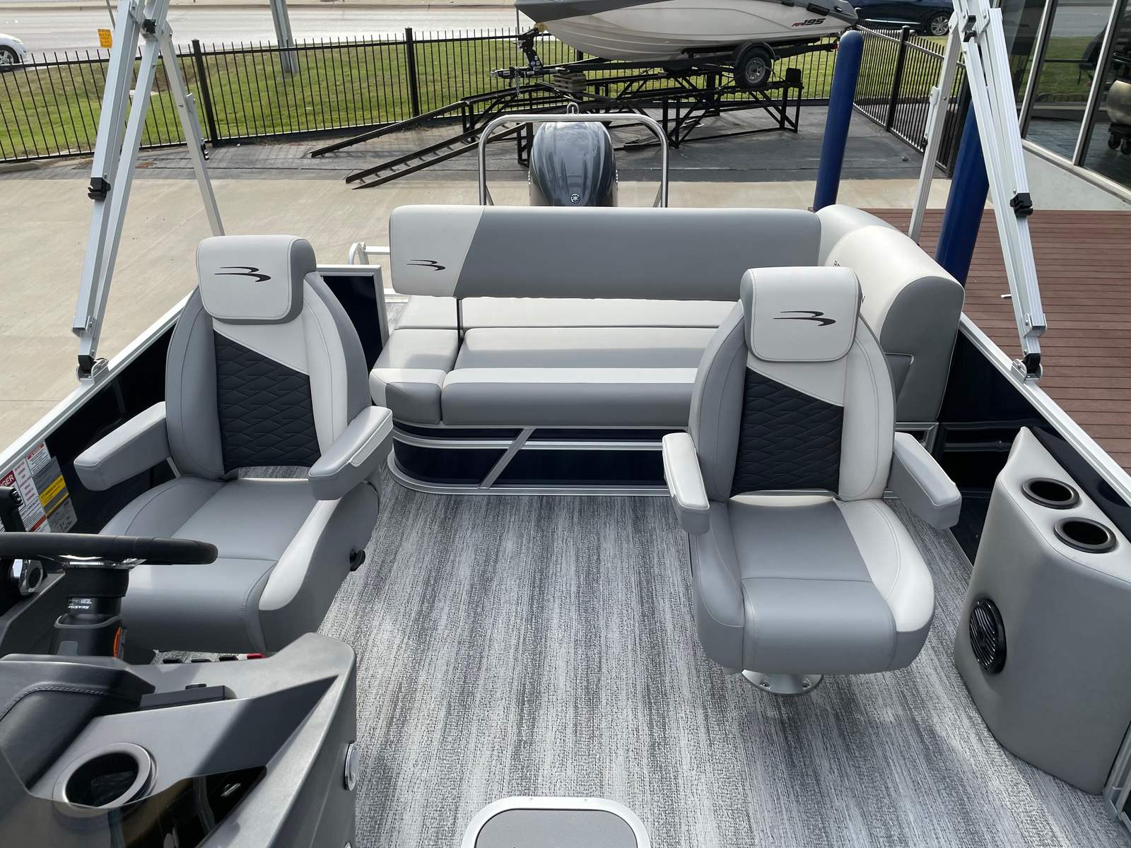Powering the Bennington 21 SSB SPS is a robust 150 HP 4-stroke mechanical engine with an integrated hydraulic cylinder and a 25-inch shaft. This setup provides smooth, responsive handling and impressive acceleration, making it easy to navigate lakes, rivers, and coastal waters. The single engine configuration is both efficient and reliable, offering the perfect balance of power and fuel economy for a variety of boating activities. With the SPS Performance Package and a 33-gallon transom direct fill fuel system, you can enjoy extended outings without worrying about frequent refueling stops. Whether you are towing a skier, cruising at sunset, or exploring new waterways, the Bennington 21 SSB SPS delivers a thrilling and dependable ride every time.
