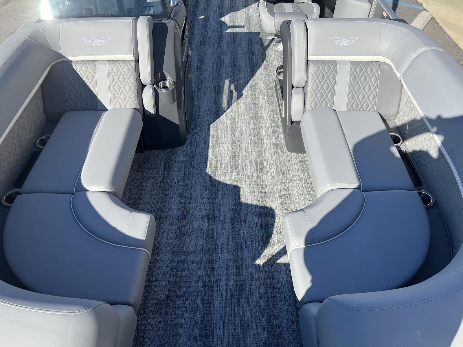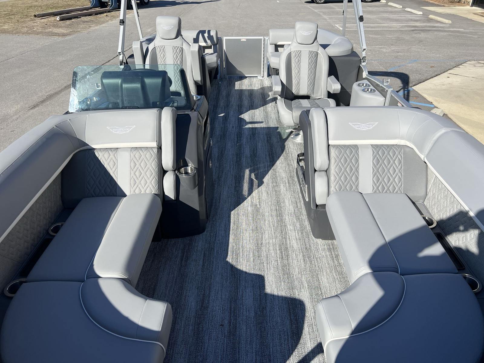 The 2025 Bennington 22 MFB SPS is a new pontoon boat that measures an impressive 24.25 feet in length, offering ample space for family, friends, and all your favorite activities. Bennington is renowned for its commitment to quality and craftsmanship, and this model exemplifies those standards with its modern aesthetics and attention to detail. Whether you’re planning leisurely cruises, lively gatherings, or relaxing afternoons on the water, this pontoon boat is designed to meet your every need.