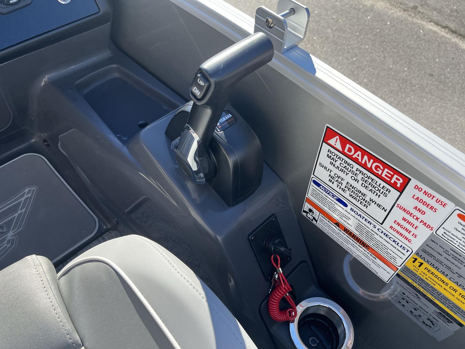 Powering the Bennington 22 MFB SPS is a robust Yamaha F150XC engine, delivering 150 horsepower for smooth, reliable performance. This single-engine setup ensures efficient fuel consumption while providing plenty of power for cruising, towing water toys, or exploring new waterways. The Yamaha Mechanical Pre-Rig – Delete Hydraulic Cylinder enhances the boat’s handling and responsiveness, making it easy to maneuver in a variety of conditions. Whether you’re gliding across calm lakes or navigating busy marinas, this pontoon boat offers a confident and enjoyable ride.