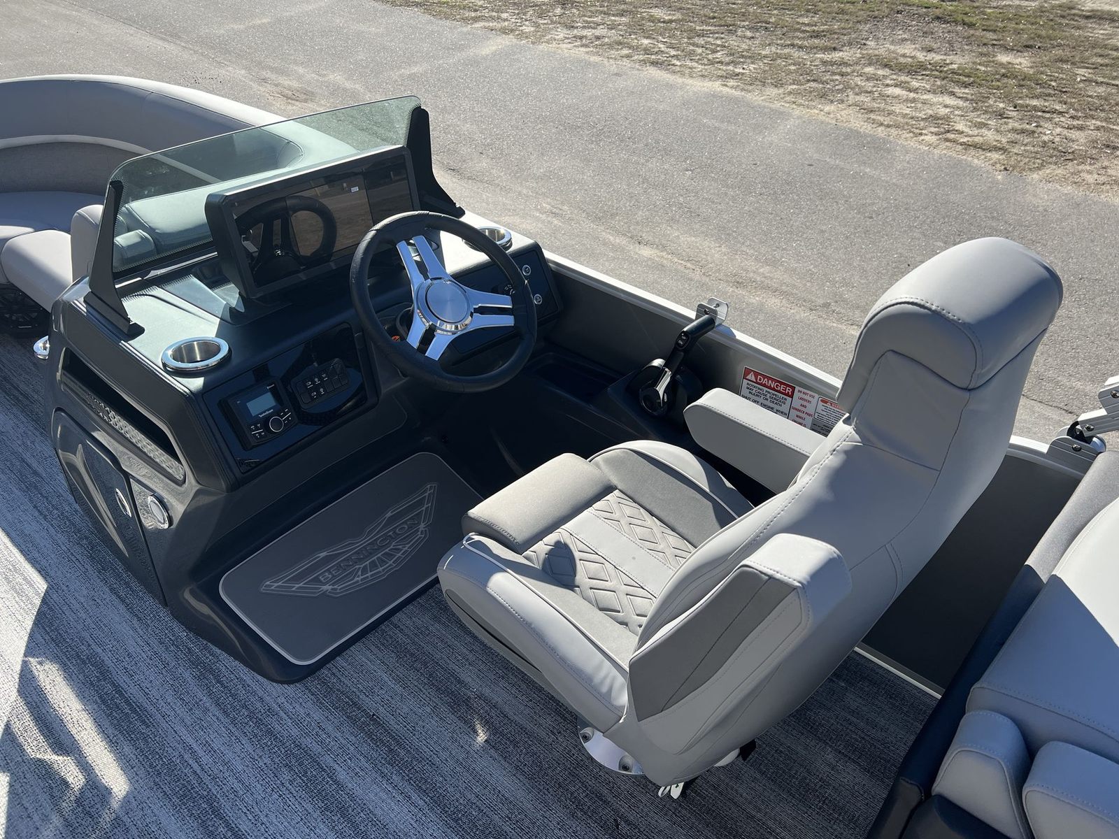 The Bennington 22 MFB SPS is packed with innovative features that set it apart from other pontoon boats for sale. The 12 Button Digital Switching system puts control at your fingertips, allowing you to manage onboard systems with ease. The 7" Vivid UX Touchscreen Display provides intuitive access to navigation, entertainment, and boat information, ensuring you stay connected and informed throughout your journey. The Master Power switch offers added convenience and safety, while the horn ensures you’re always prepared for any situation.For modern connectivity, the USBP Panel with Wireless Charging Dock keeps your devices powered up and ready to go, so you can capture every moment and stay in touch with loved ones. The interior and exterior design features a sophisticated combination of Panel – Smooth Silver, Accent – Smooth Metallic White, Canvas – Metallic Silver, and Shadow Gray Veneto, all complemented by striking Chrome Logos. These premium finishes create a contemporary, upscale atmosphere that’s sure to impress.