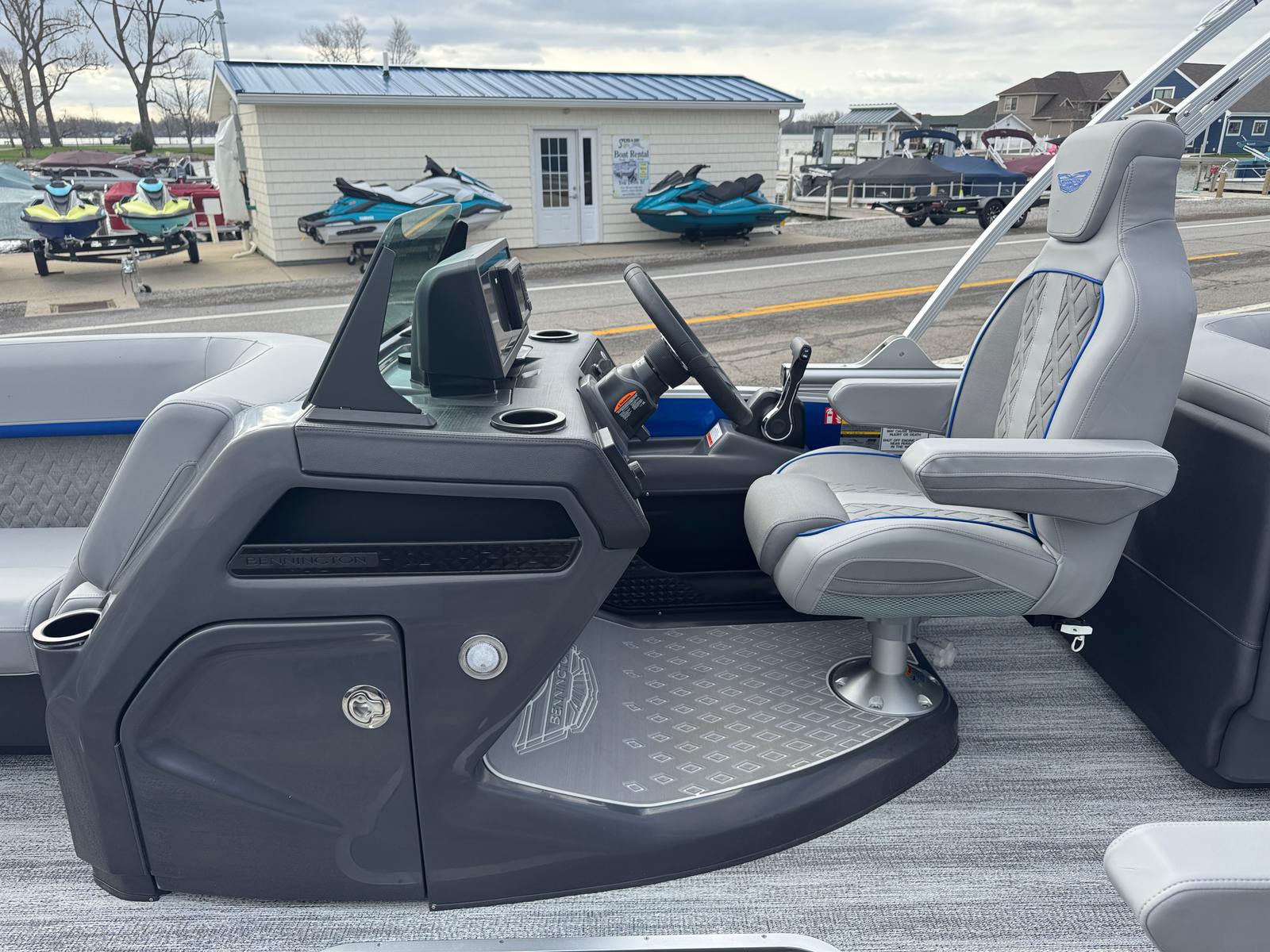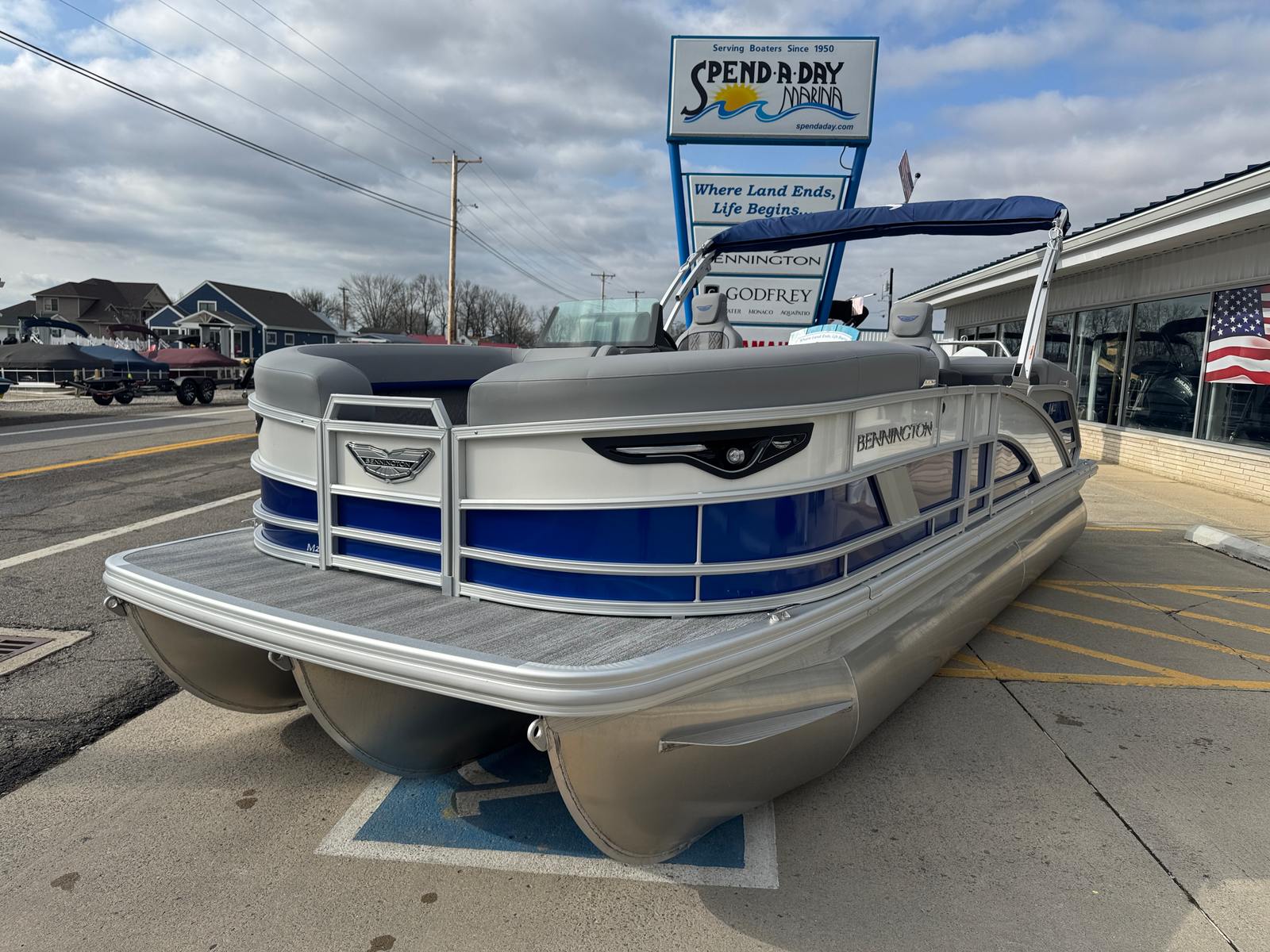 The 2026 Bennington 22 MFB SPS pontoon is a remarkable blend of style, performance, and versatility. With its striking Smooth Metallic Luminous Blue and White exterior, luxurious Luminous Blue Simtex interior, and advanced features like the Suzuki DF200ATXW5 engine, Power Hydraulic Assist steering, and Electric Power Top Bimini, this new Bennington boat for sale is designed to exceed your expectations. The elevated console, removable flag pole, and spacious layout ensure that every outing is comfortable, convenient, and memorable.If you are ready to elevate your boating experience and enjoy the ultimate in comfort, performance, and style, the Bennington 22 MFB SPS is the perfect choice. Don’t miss your chance to own this exceptional pontoon boat – contact your local dealer today to learn more and schedule a viewing. Your next adventure awaits on the water!