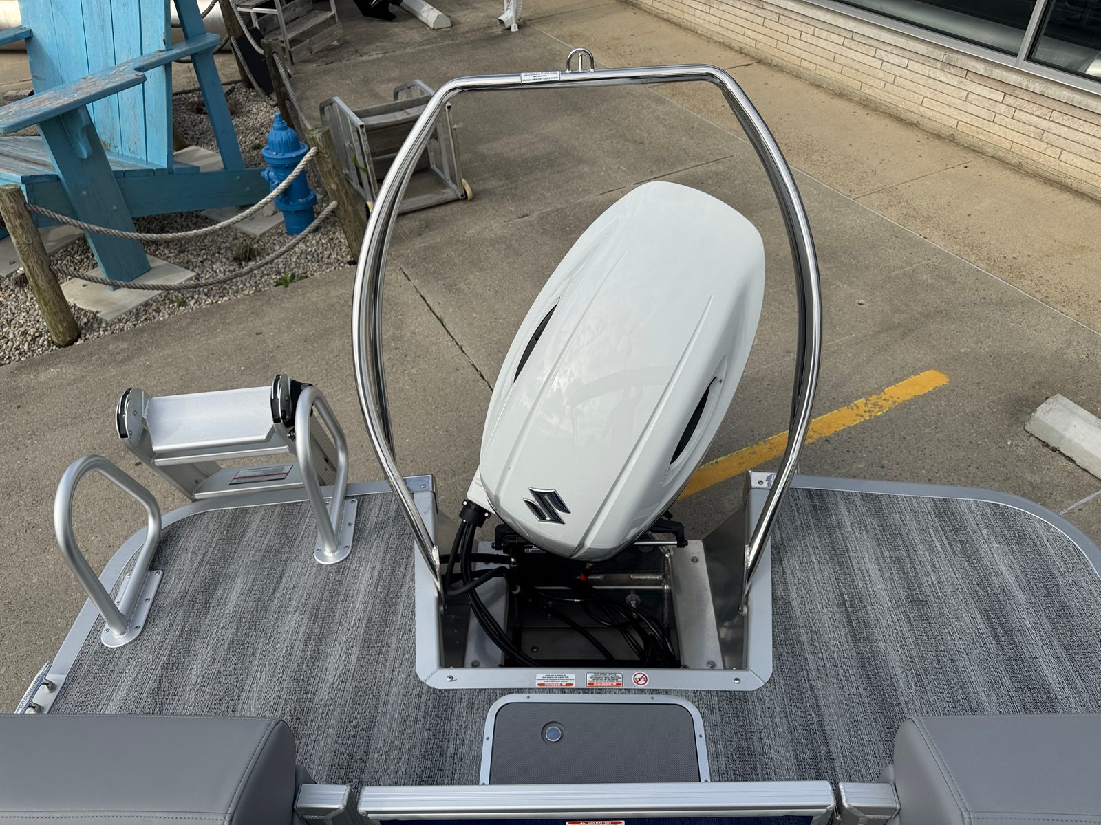 Power and performance are at the heart of the Bennington 22 MFB SPS. Equipped with a single Suzuki DF200ATXW5 engine, this pontoon delivers an impressive 200 horsepower, ensuring smooth acceleration and responsive handling on the water. The Suzuki Mechanical Pre-Rig enhances the driving experience, providing reliable and efficient engine control. Whether you are cruising at a leisurely pace or picking up speed for water sports, the Bennington 22 MFB SPS offers the power and agility to meet your needs. The advanced steering system, featuring Power Hydraulic Assist, ensures effortless maneuvering and precise control, making every outing enjoyable and stress-free.