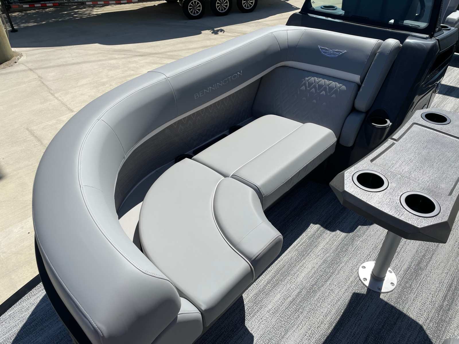 The 2026 Bennington 22 MSB SPS pontoon boat is loaded with special features designed to enhance your comfort and enjoyment. Toekick lights (1-37" and 1-41") create a welcoming ambiance for evening cruises, while the elevated console with pocket Mythos offers superior visibility and convenient storage for your essentials. The interior accent in Arctic Ice White Simtex, paired with luxury furniture from the M Series, delivers a sophisticated and inviting atmosphere for you and your guests. Smooth metallic white accents and a midnight black canvas add a touch of elegance and modern flair, ensuring your pontoon stands out wherever you go. Lumbar lighting further elevates the onboard experience, providing subtle illumination for nighttime relaxation and entertainment.