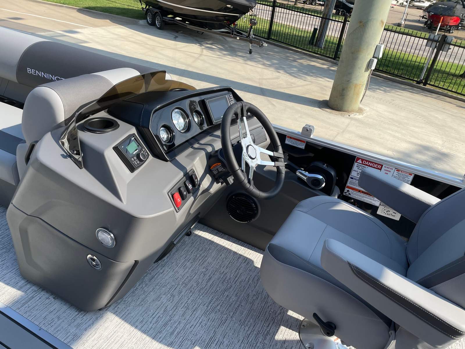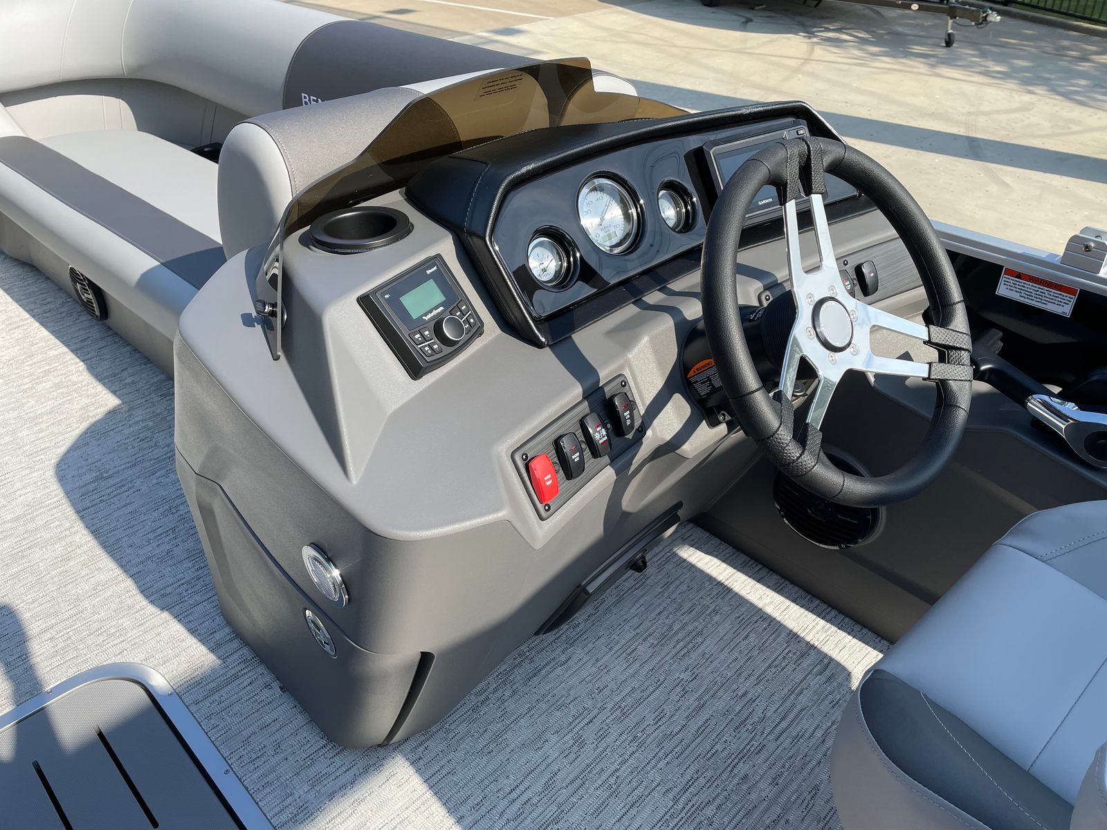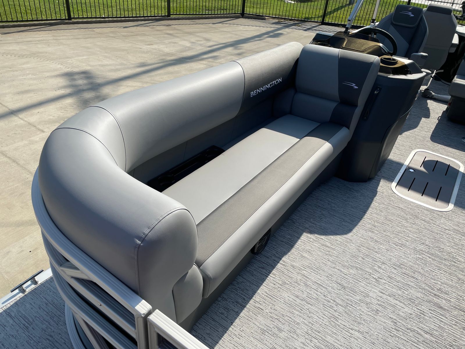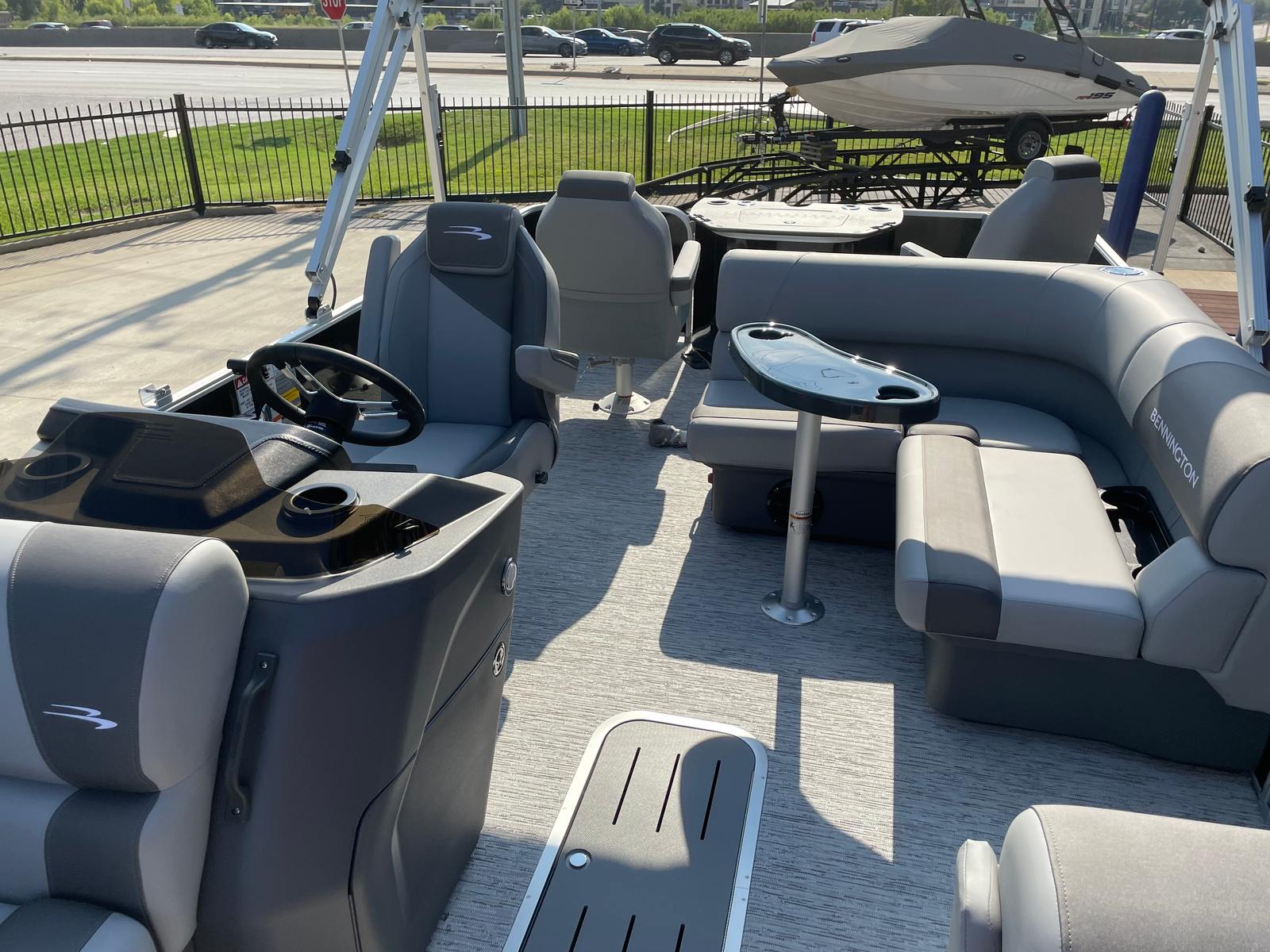 Step aboard the Bennington 22 SS SPS and discover a host of premium features designed to enhance your boating experience. The Serene Soft Touch Vinyl with Simtex Accents provides plush, comfortable seating that invites you to relax and unwind. The Ironwood Dash Accent adds a touch of elegance to the helm, while the windscreen offers protection from the elements, ensuring a pleasant ride in any weather.The extended aft deck creates additional space for socializing, sunbathing, or preparing for water sports, making it easy to accommodate guests and gear. The Midnight Black canvas not only adds to the boat’s visual appeal but also provides shade and shelter when needed. With its thoughtful layout and attention to detail, the Bennington 22 SS SPS is designed for maximum comfort and convenience on the water.