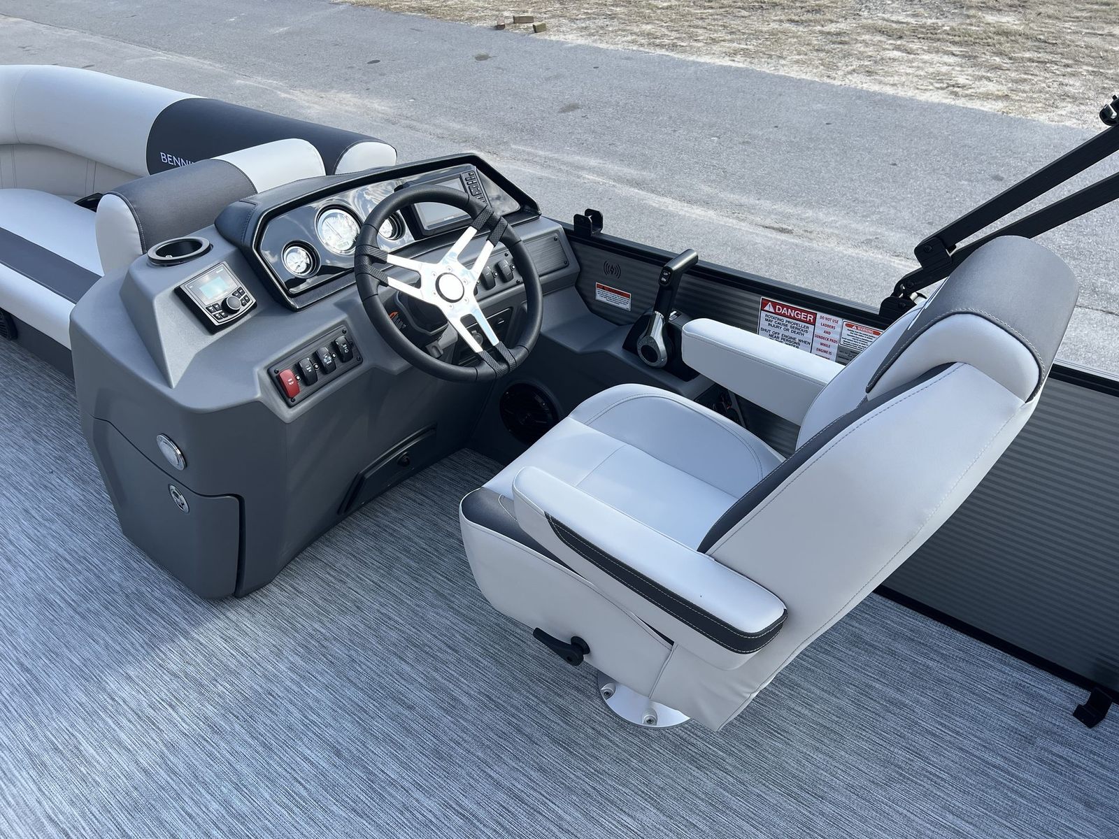 The 2025 Bennington 22 SSB SPS Pontoon stands out with its sleek profile and contemporary design. Measuring 21.5 feet in length, this pontoon offers ample space for relaxation, entertainment, and adventure. Bennington is renowned for its commitment to quality, and the 22 SSB SPS continues that tradition with meticulous attention to detail and superior craftsmanship. Whether you’re cruising along the shoreline or anchoring for a sunset gathering, this Bennington boat for sale promises unforgettable experiences on the water.