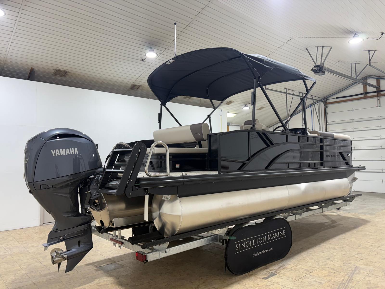 The 2025 Bennington 22 SSB SPS is a new pontoon boat that stands out for its modern design and impressive build quality. Measuring just under 23 feet in length, this pontoon offers ample space for relaxation, entertainment, and recreation. The Bennington name is synonymous with craftsmanship and reliability, and the 22 SSB SPS continues that tradition with attention to detail and premium materials throughout. Its elegant silhouette is complemented by blackout logos and a striking midnight black canvas, ensuring you’ll turn heads at every marina and lakeside dock.