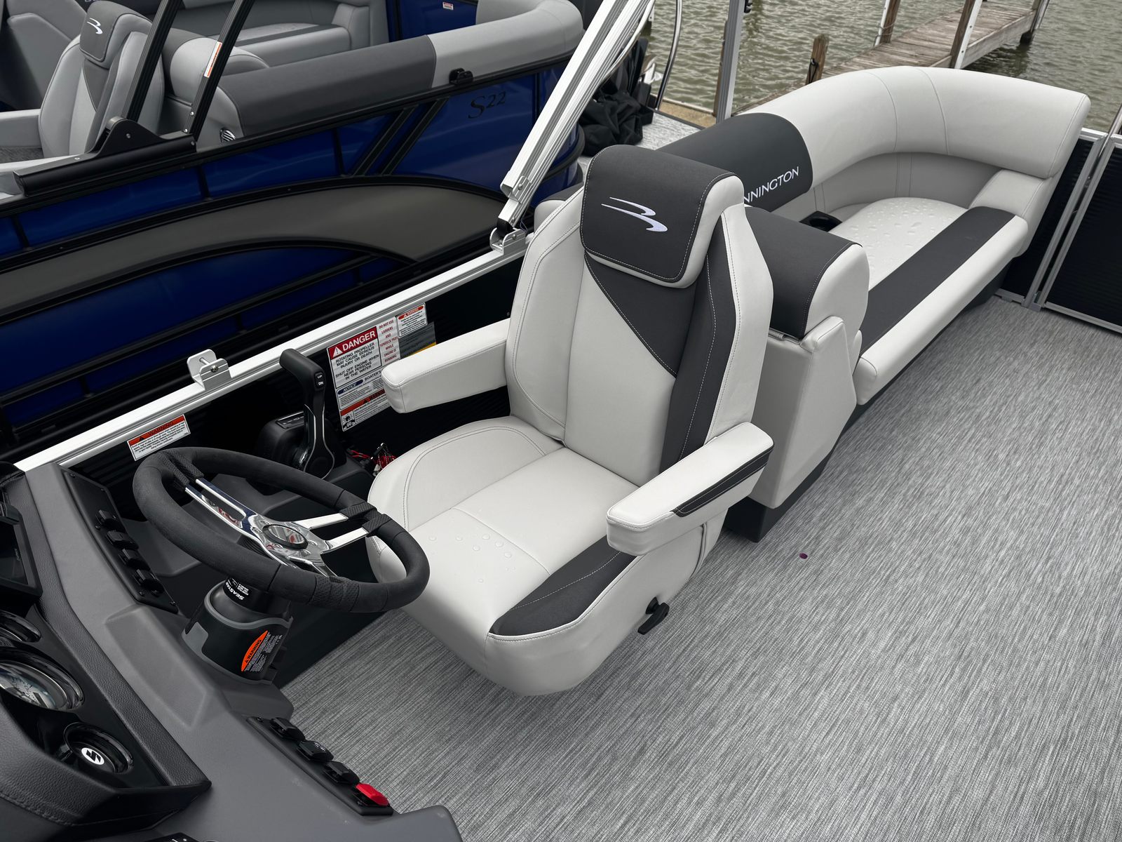 The 2026 Bennington 22 SSR SPS is loaded with special features designed to elevate your time on the water. The Switching S Analog system provides intuitive control over your boat’s functions, while the Display Main S Analog V3 Echomap offers clear, real-time navigation and system information. The striking Gemini Black panel color, complemented by a sleek black canvas and Leon Light Silver base vinyl, creates a modern and sophisticated aesthetic. Dimensional Brushed Silver Logos add a touch of elegance, while the Package Trim S Series Snap ensures a polished finish throughout the vessel. Every detail has been thoughtfully crafted to deliver both style and functionality, making this Bennington pontoon boat for sale a true standout in its class.