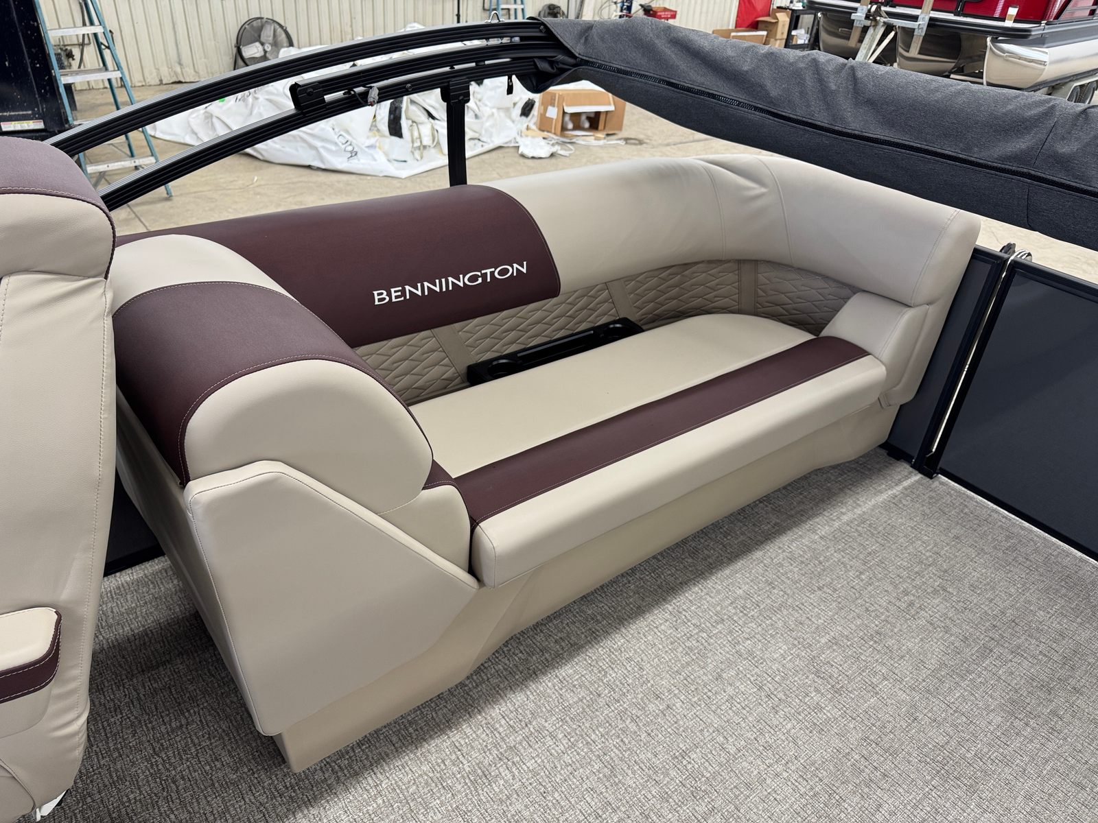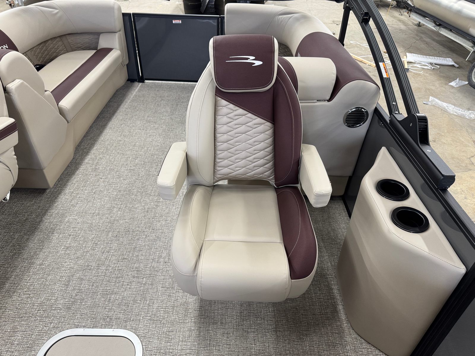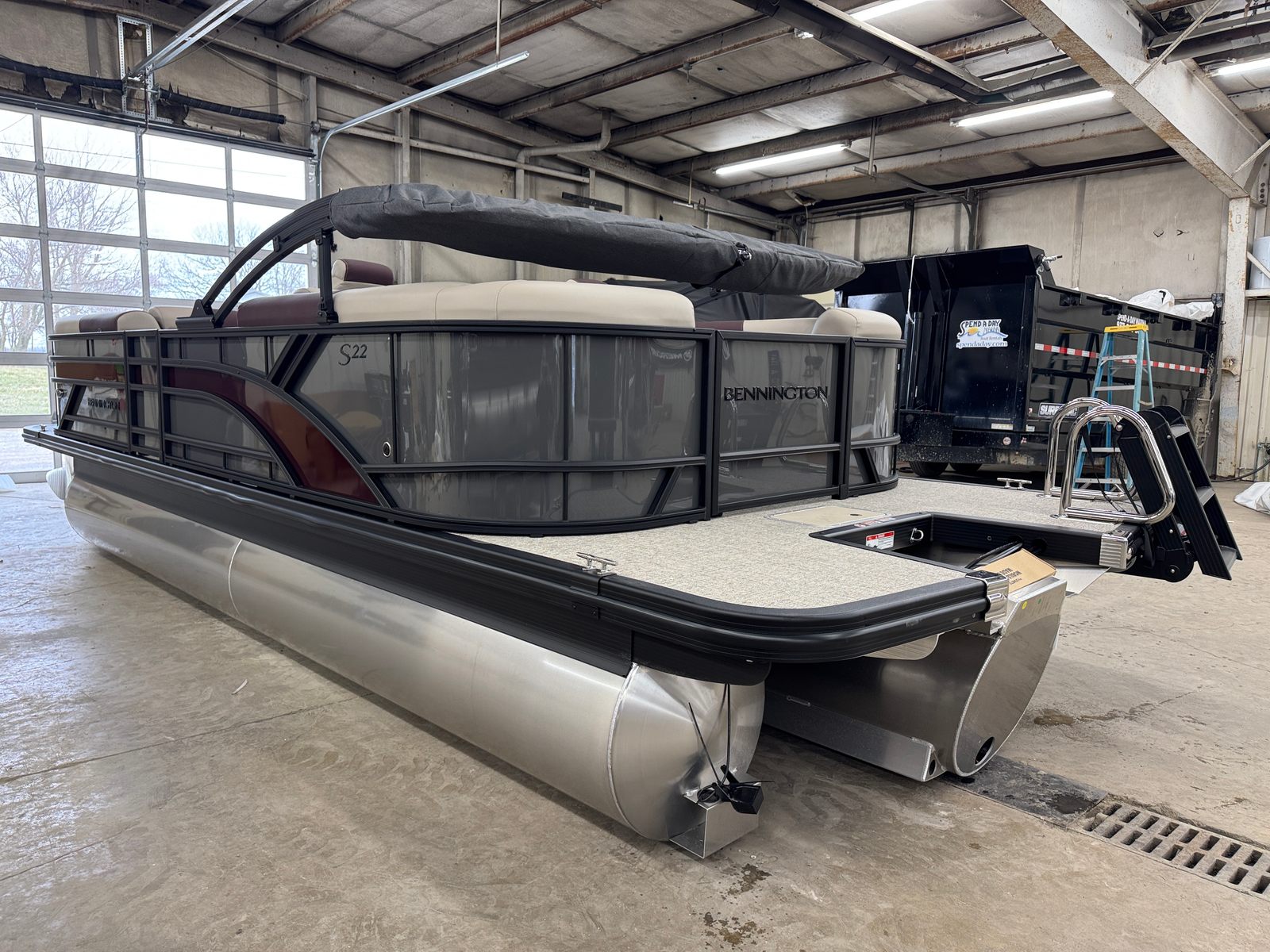 Step aboard the Bennington 22 SSR SPS and discover a world of premium features designed to elevate your boating experience. The striking Blackout Logos and Black Rub Rail Insert add a touch of modern sophistication, while the Console Dolce and Dolce upholstery provide plush comfort and style. The Ironwood Dash Accent enhances the helm’s visual appeal, creating a refined and inviting command center. The Panel - Smooth Anthracite and Canvas - Anthracite deliver a sleek, contemporary look that is sure to turn heads at every marina.The Standard S Trim ensures a polished finish throughout the pontoon, while the Valencia Taupe accents add warmth and elegance to the interior. Every detail, from the durable construction to the thoughtfully designed seating, reflects Bennington’s commitment to quality and luxury. This pontoon is not just a boat – it is a floating retreat, ready to host your next adventure.