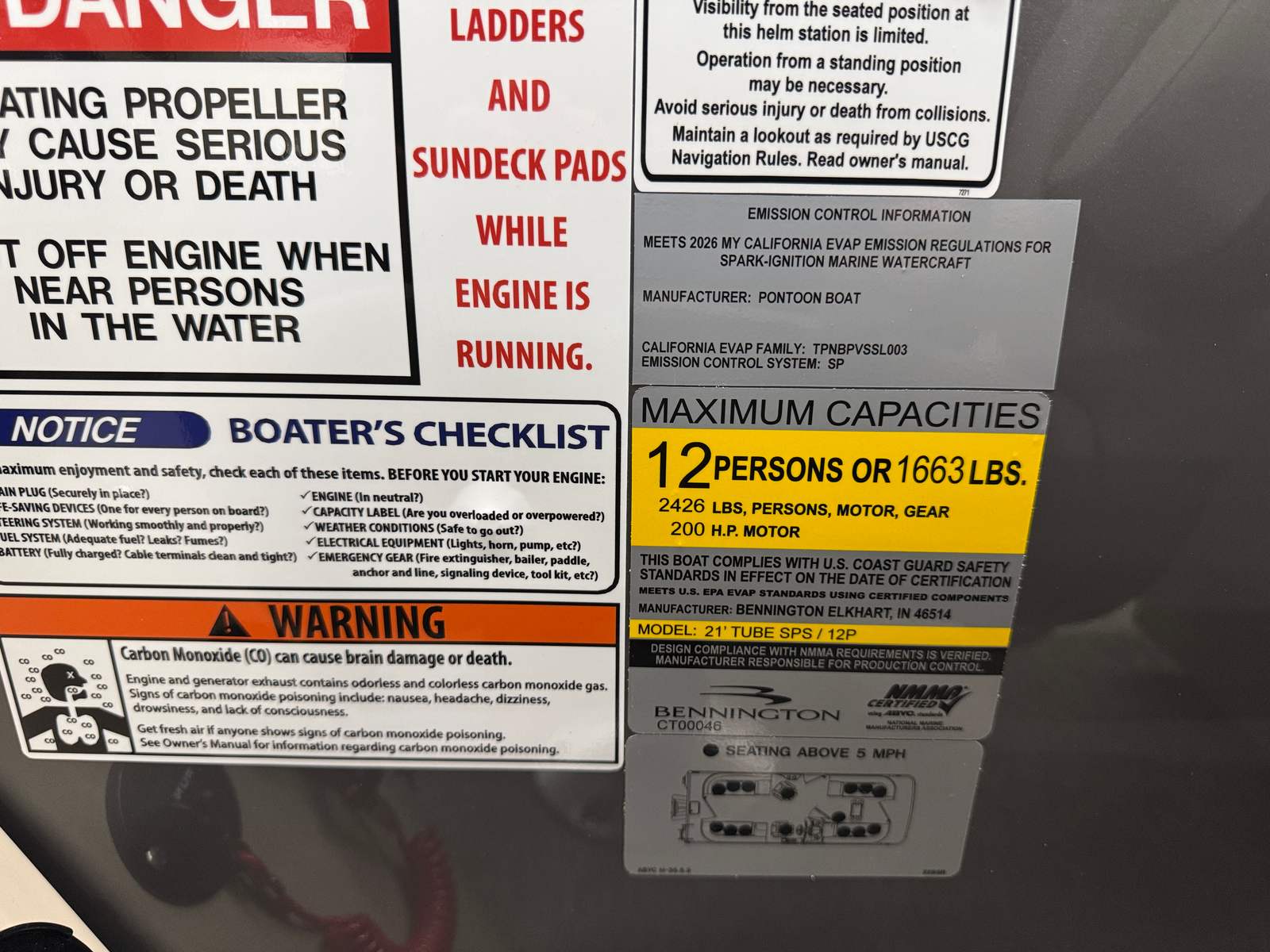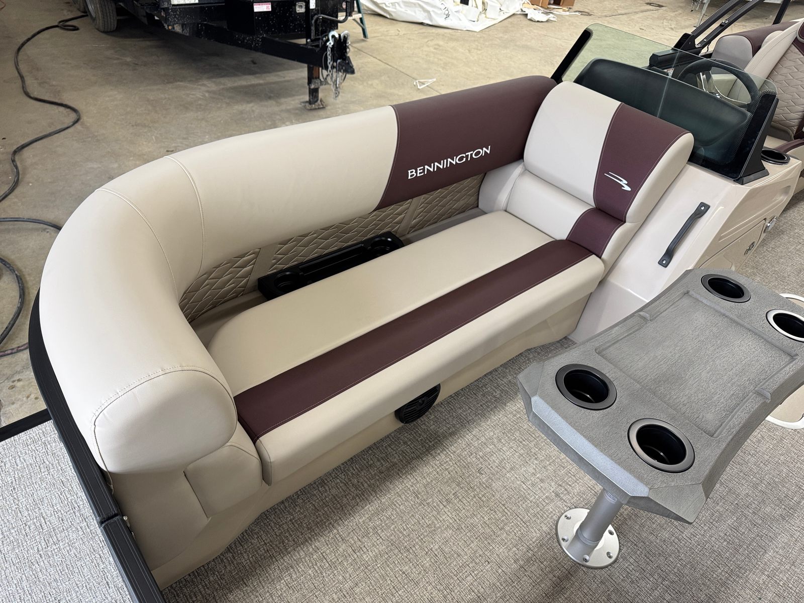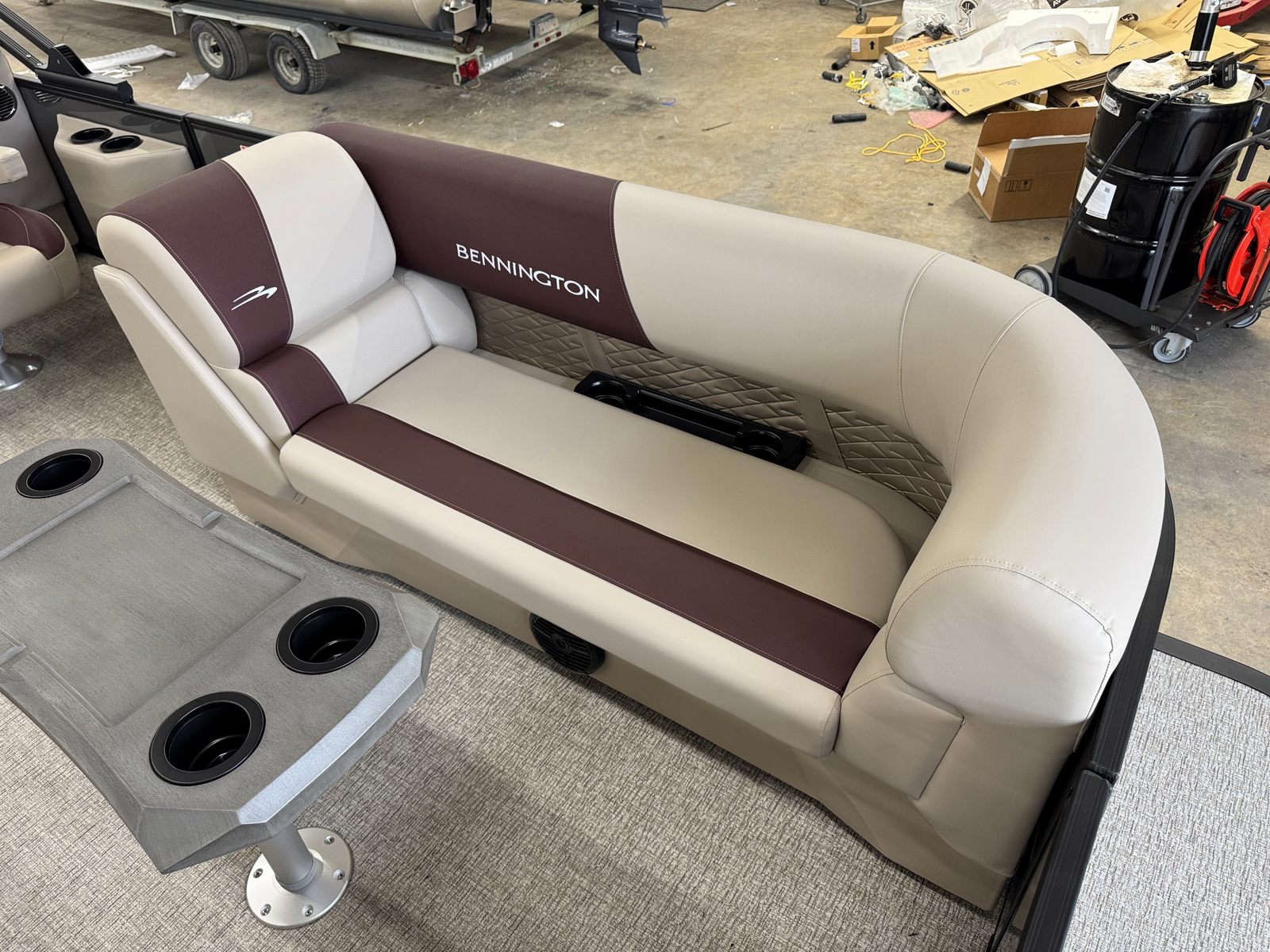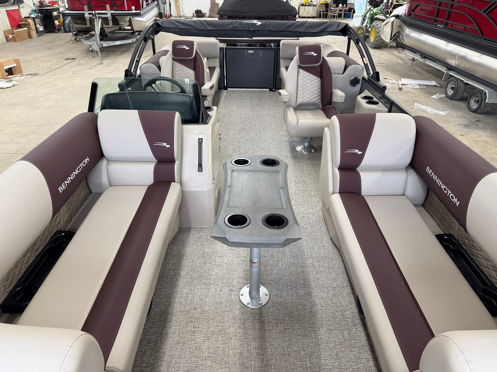 Step aboard the Bennington 22 SSR SPS and discover a world of premium features designed to elevate your boating experience. The striking Blackout Logos and Black Rub Rail Insert add a touch of modern sophistication, while the Console Dolce and Dolce upholstery provide plush comfort and style. The Ironwood Dash Accent enhances the helm’s visual appeal, creating a refined and inviting command center. The Panel - Smooth Anthracite and Canvas - Anthracite deliver a sleek, contemporary look that is sure to turn heads at every marina.The Standard S Trim ensures a polished finish throughout the pontoon, while the Valencia Taupe accents add warmth and elegance to the interior. Every detail, from the durable construction to the thoughtfully designed seating, reflects Bennington’s commitment to quality and luxury. This pontoon is not just a boat – it is a floating retreat, ready to host your next adventure.