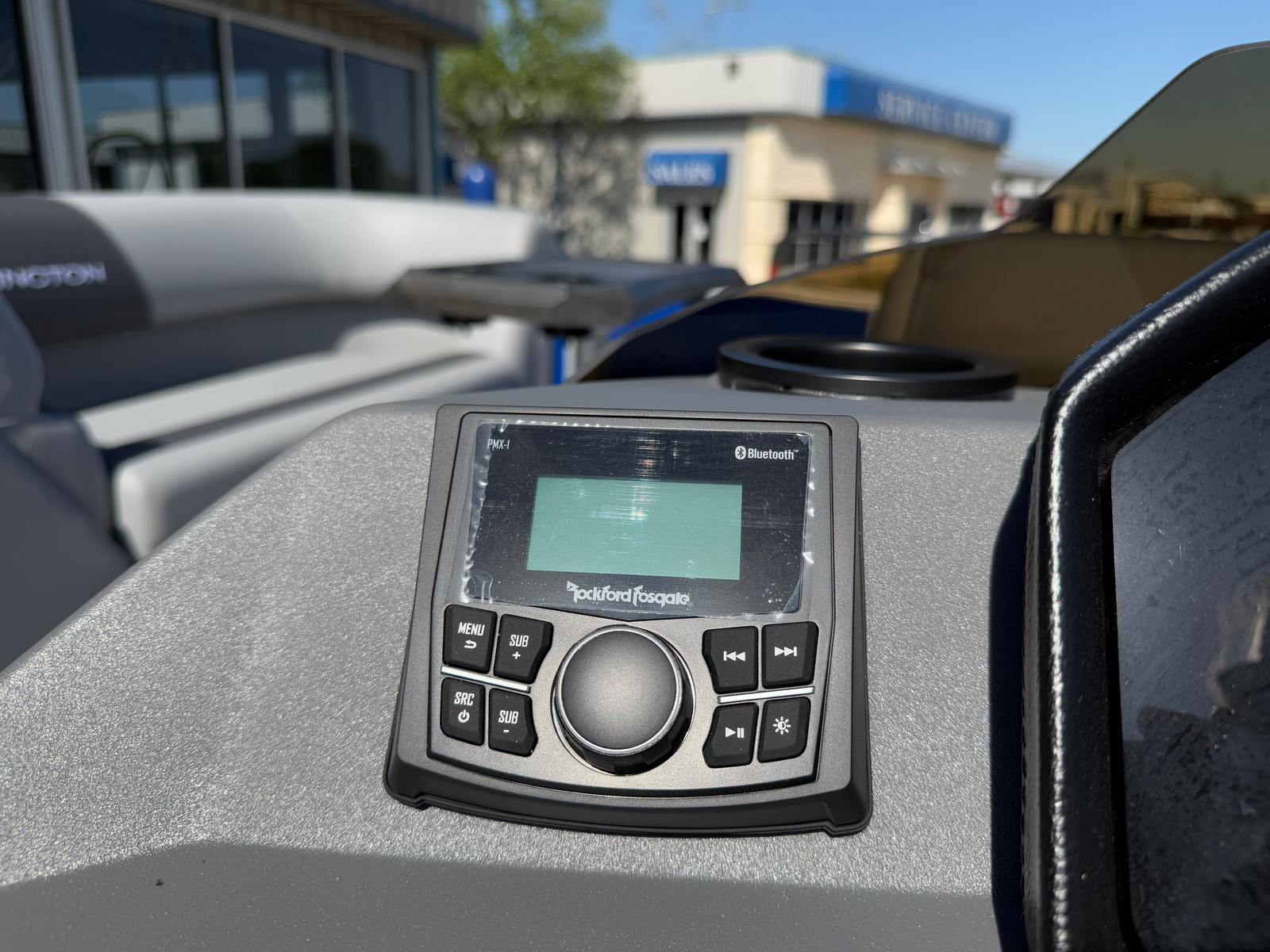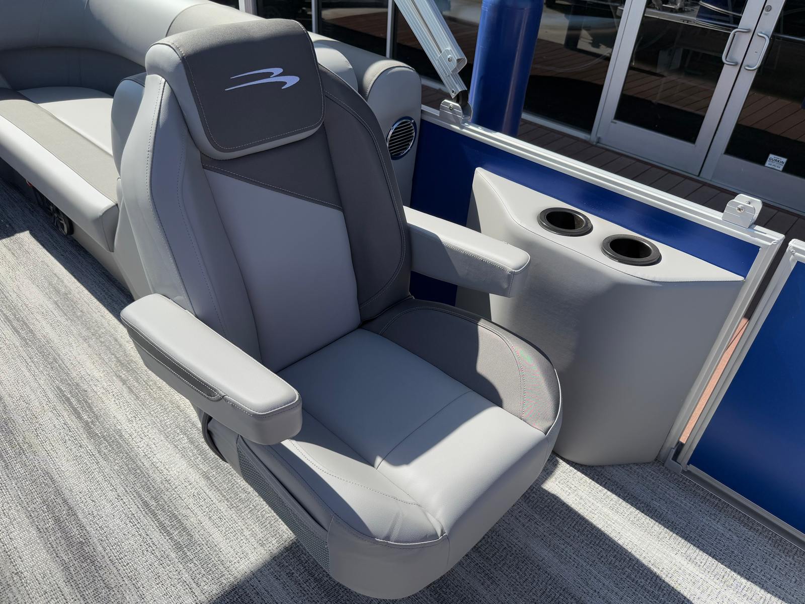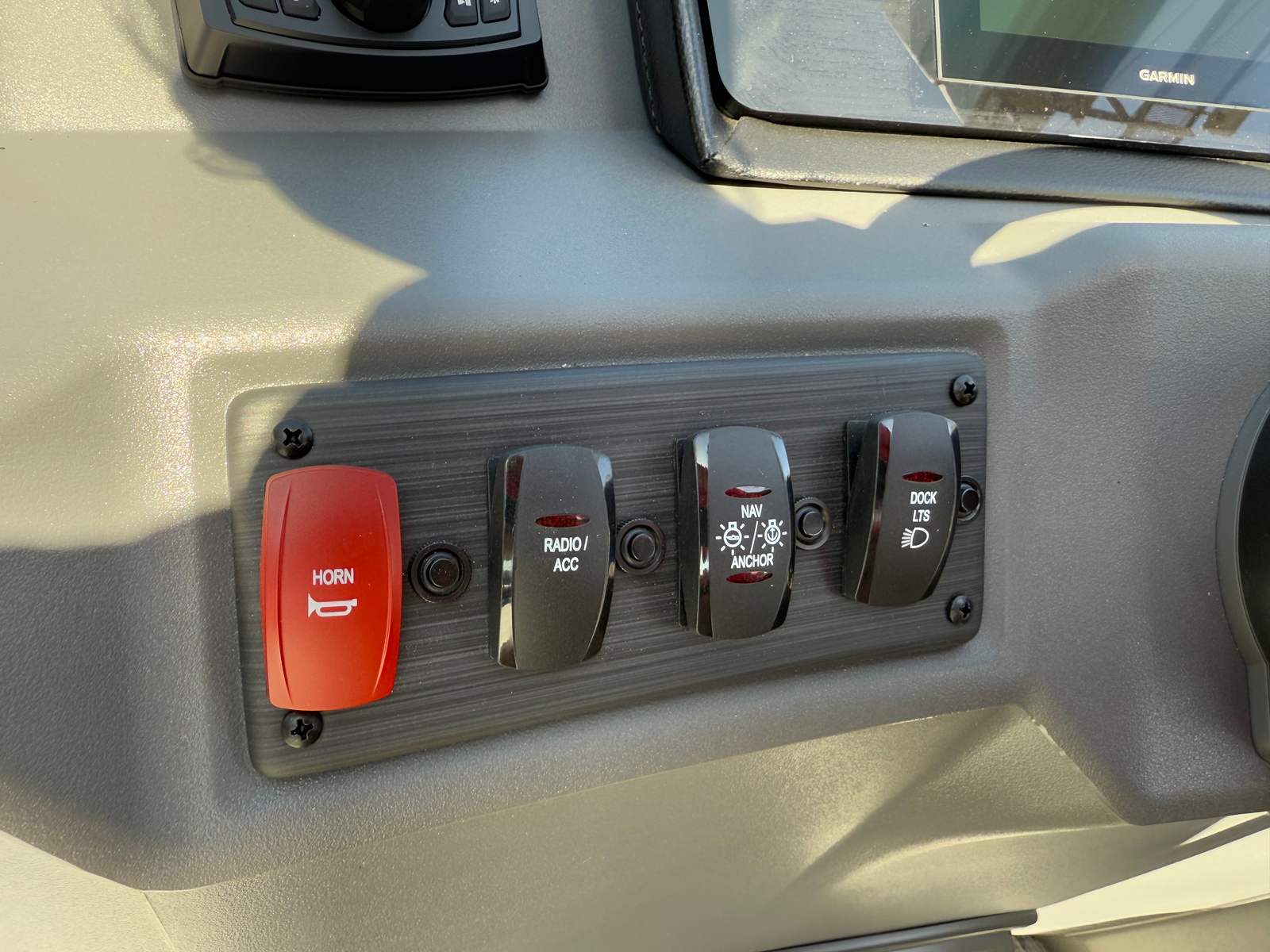 The Bennington 22 SSR SPS is loaded with features designed to enhance your time on the water. The dual battery switch with fuse provides peace of mind, ensuring you have reliable power for all your onboard electronics and accessories. Lighted cupholders add a touch of elegance and convenience, keeping your favorite beverages secure and illuminated during evening cruises.For those who love music, the Rockford Fosgate 6.5" M1 lighted speakers (four in total) with an RGB control upgrade deliver premium sound quality and customizable lighting to match your mood or the occasion. The Serene Soft Touch Vinyl with Simtex accents offers plush, comfortable seating that is both stylish and durable, making long days on the water a true pleasure. The Ironwood dash accent adds a refined touch to the helm, while the overall color palette of Shadow Grey and Carbon creates a cohesive and upscale look throughout the boat.