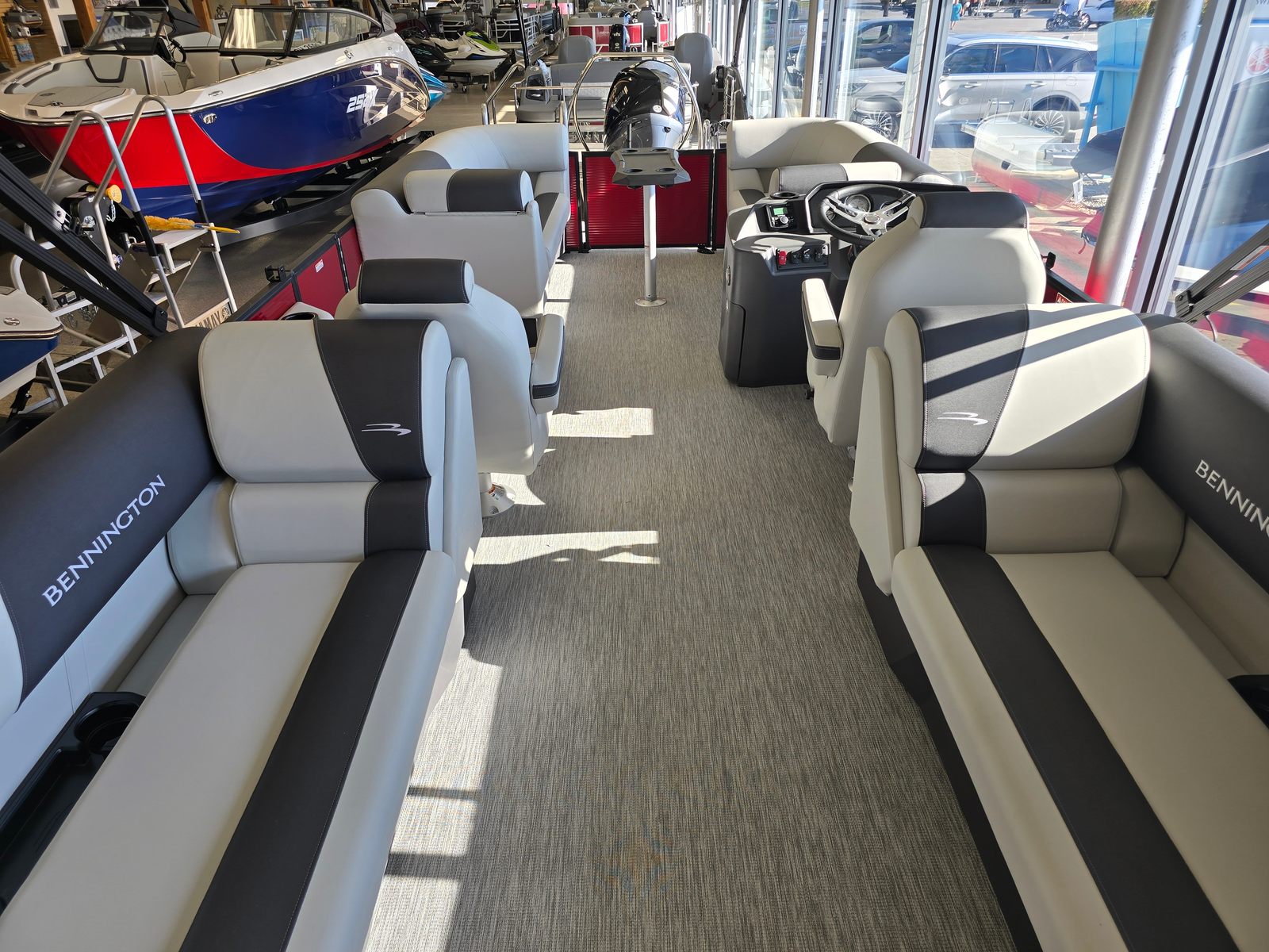 Beyond its impressive style and performance, the Bennington 22 SSR SPS offers a range of practical benefits that make ownership a breeze. The efficient Yamaha F150XD engine provides excellent fuel economy, allowing you to spend more time on the water and less time at the pump. The sturdy construction and quality materials ensure durability and low maintenance, so you can focus on enjoying your boat rather than worrying about upkeep.Docking and maneuvering are made simple thanks to the responsive handling and thoughtfully designed layout. The ski tow bar adds versatility, making it easy to switch from cruising to watersports in seconds. The spacious deck offers plenty of room for coolers, gear, and water toys, while the Bimini top provides essential shade and protection from the elements.
