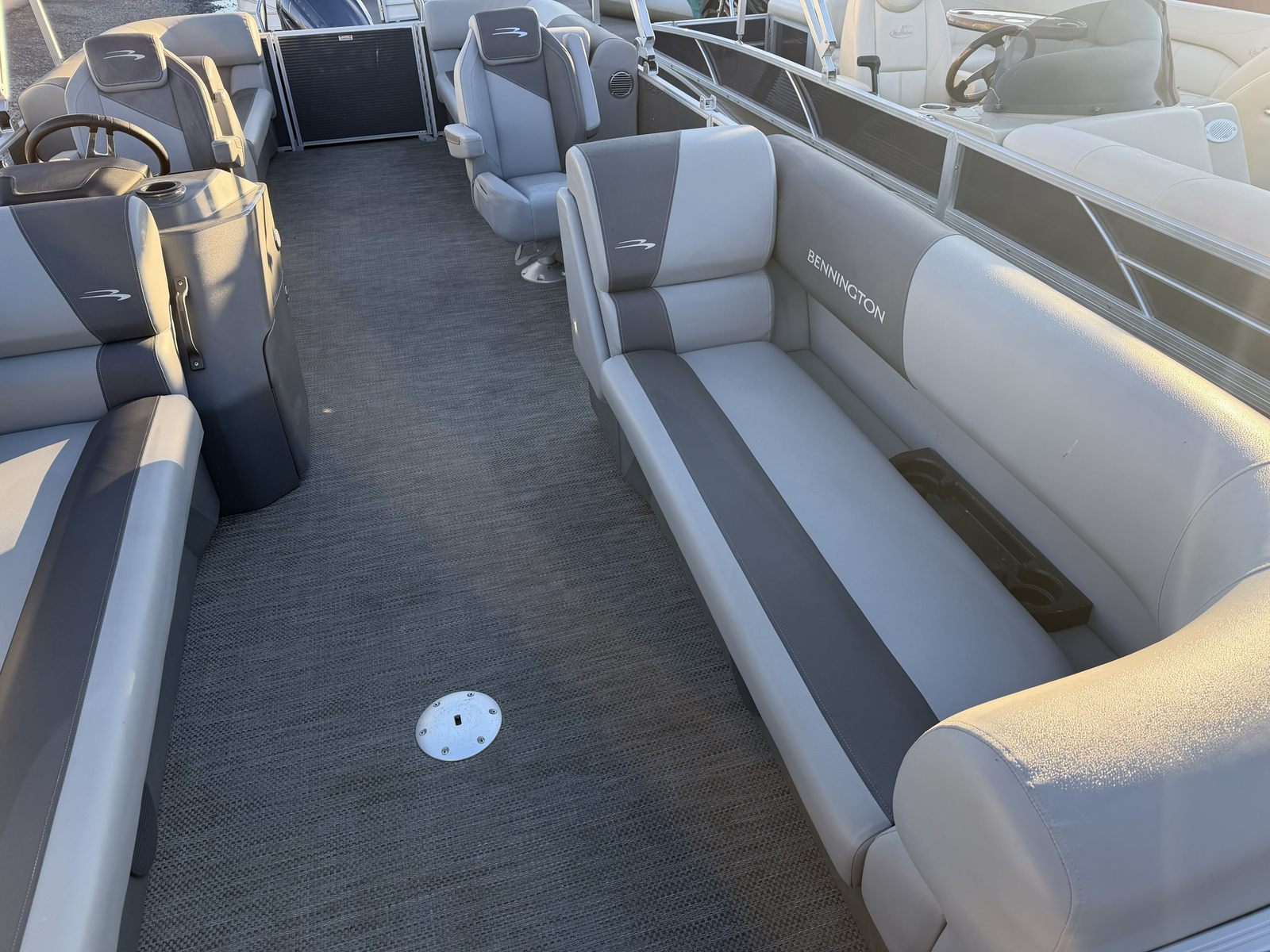 This Bennington pontoon boat for sale is designed with practicality in mind. The generous deck space makes it easy to store gear, coolers, and water toys, keeping everything organized and accessible. Docking is a breeze thanks to the responsive handling and manageable length, allowing you to explore new destinations with confidence. The fuel-efficient Yamaha engine helps you enjoy longer outings without frequent stops, maximizing your time on the water. The durable Seagrass Silver Full Flooring is easy to clean, so you can spend less time on upkeep and more time enjoying your boat. Whether you’re planning a day of fishing, swimming, or simply relaxing, the 22 Svsr SPS adapts to your needs effortlessly.