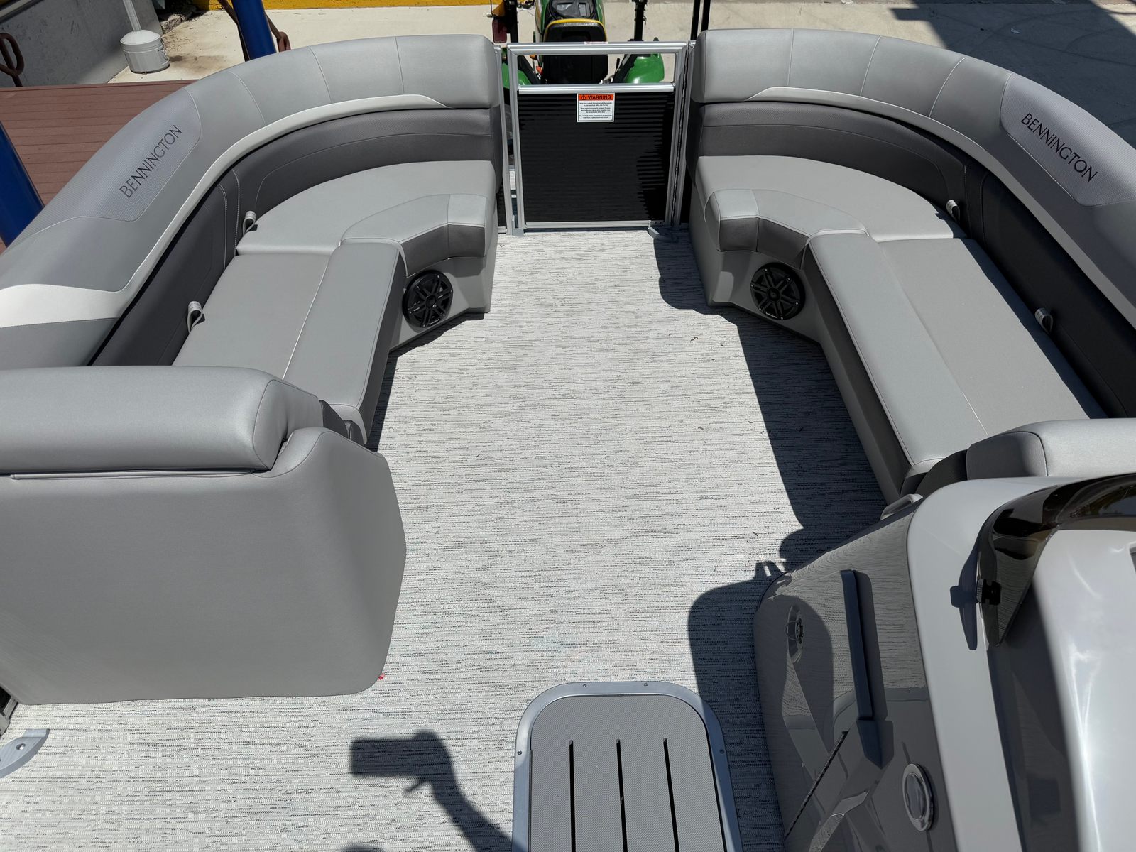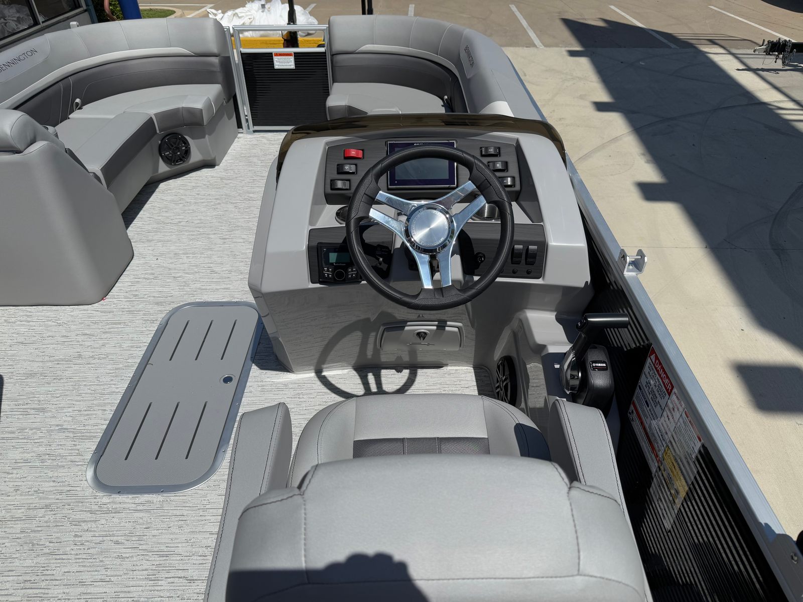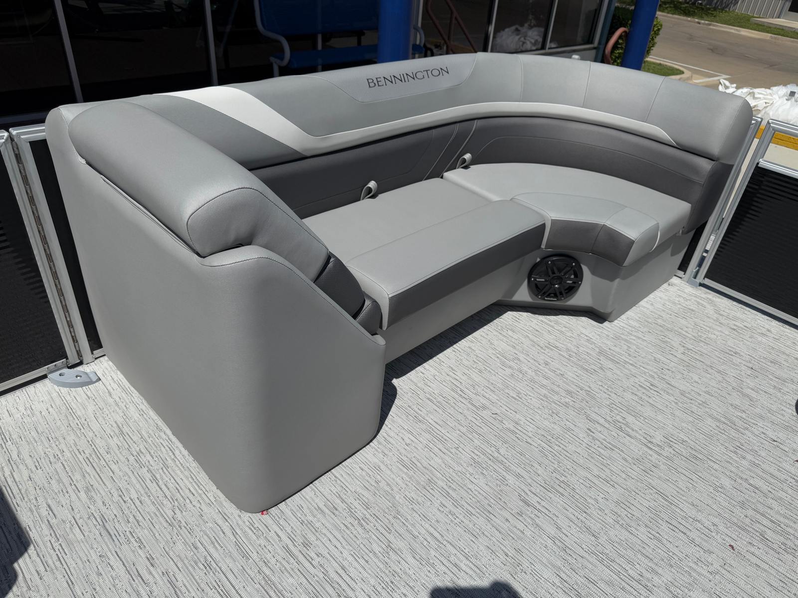 The Bennington 22 Sxsb SPS is loaded with features designed to enhance your boating experience. The portable armrest with stainless steel cup holders offers flexible comfort and convenience, allowing you and your guests to relax in style. Rub rail protectors safeguard your pontoon from everyday bumps and scrapes, preserving its pristine appearance for years to come.For those who love to set the mood, the RGB toe kick lighting and RGB controller SX provide customizable ambient lighting throughout the boat. Whether you are hosting an evening gathering or enjoying a quiet sunset cruise, you can tailor the atmosphere to suit any occasion. The Rockford Fosgate M1 lighted speakers deliver premium sound quality, ensuring your favorite playlists sound incredible on the water, while also adding a visual flair with their integrated lighting.The combination of Metallic Silver accents, Zebrawood Matte Slate finishes, and Arctic Ice White Diamante interior creates a sophisticated and inviting space. Every detail is thoughtfully designed to maximize comfort, style, and functionality, making this Bennington boat for sale a true standout in its class.