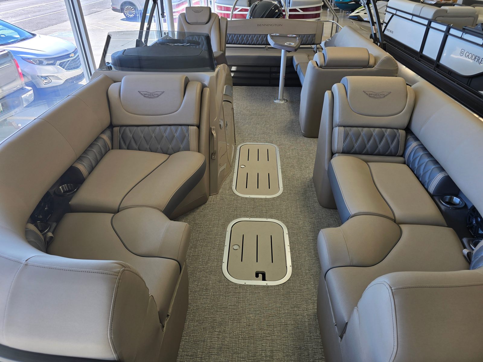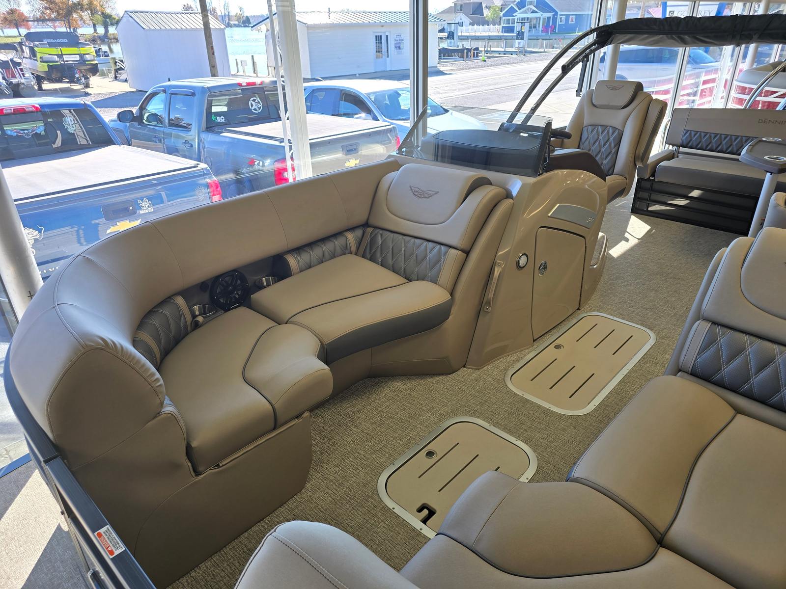 Beyond its luxurious features, the Bennington 23 Lxssb SPS Plus is designed with practicality in mind. The spacious deck provides plenty of room for coolers, water toys, and gear, making it easy to prepare for a day of fun. The power hydraulic assist steering simplifies docking and tight maneuvers, reducing stress and making every outing more enjoyable. The sturdy stainless steel rub rail offers peace of mind when coming alongside docks or other boats, protecting your pontoon from minor impacts.Fuel efficiency is enhanced by the advanced engineering of the 250-horsepower engine, allowing you to spend more time on the water and less time at the pump. The electric bimini top can be deployed or retracted in seconds, adapting to changing weather conditions and maximizing your comfort. Every detail of the Bennington 23 Lxssb SPS Plus is designed to make ownership easy, enjoyable, and worry-free.