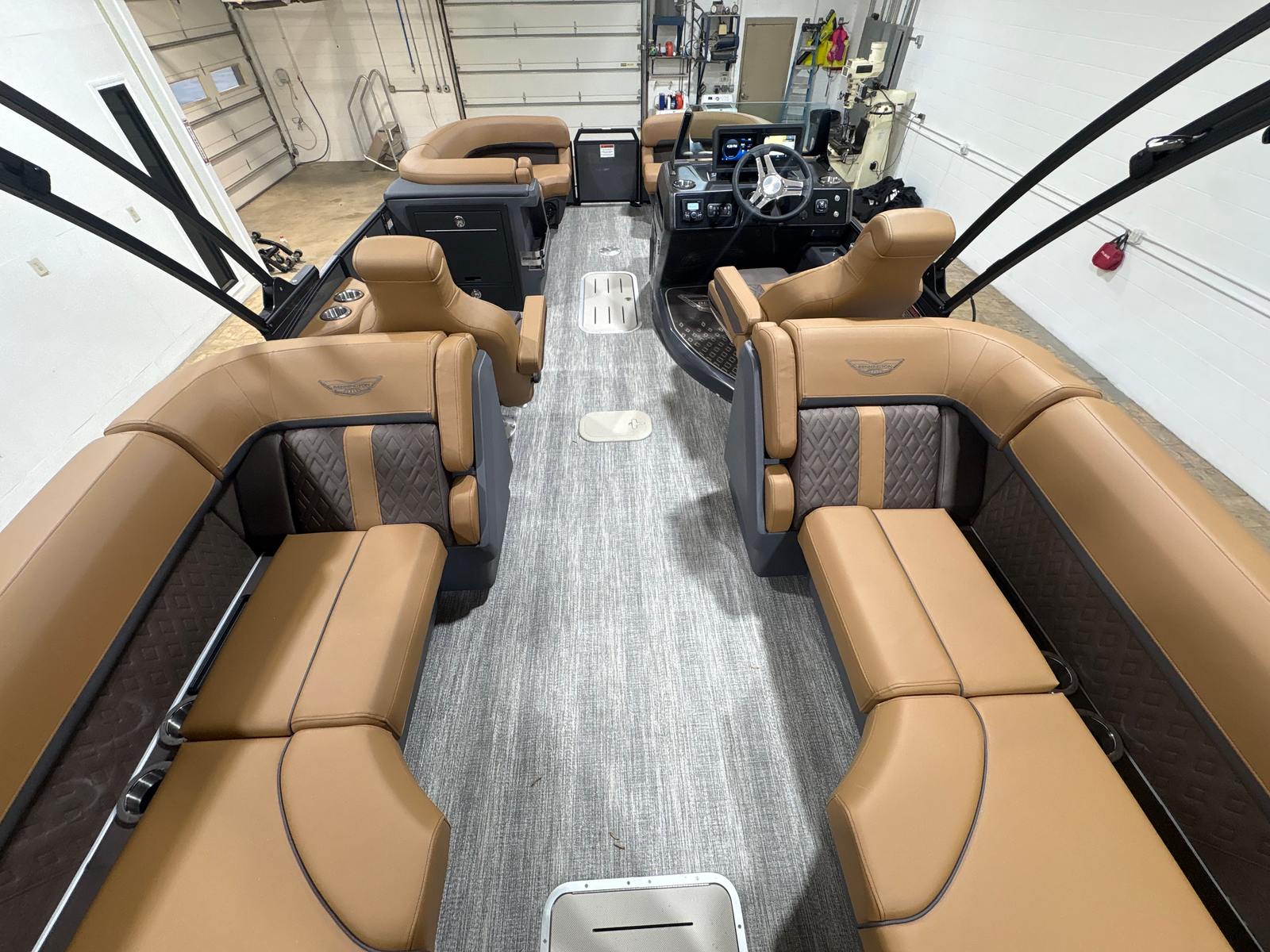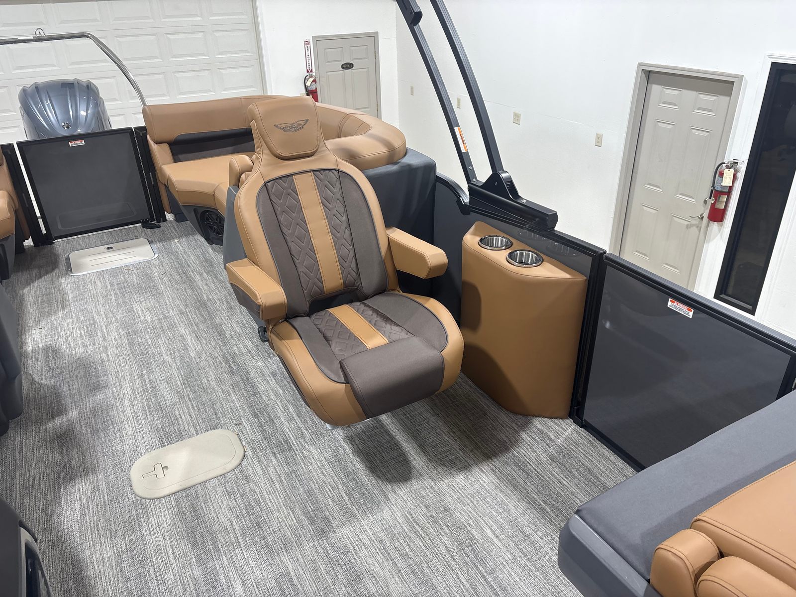 Powering the Bennington 23 MFB ESP is a single Yamaha F250XSB engine, delivering a robust 250 horsepower for exhilarating performance and smooth cruising. The Yamaha Integrated Steering Pre-Rig ensures precise handling and effortless maneuverability, allowing you to navigate lakes, rivers, and coastal waters with confidence. Whether you’re gliding across calm waters or picking up speed for a thrilling ride, this pontoon boat offers a dynamic and responsive experience that will impress both seasoned boaters and newcomers alike.