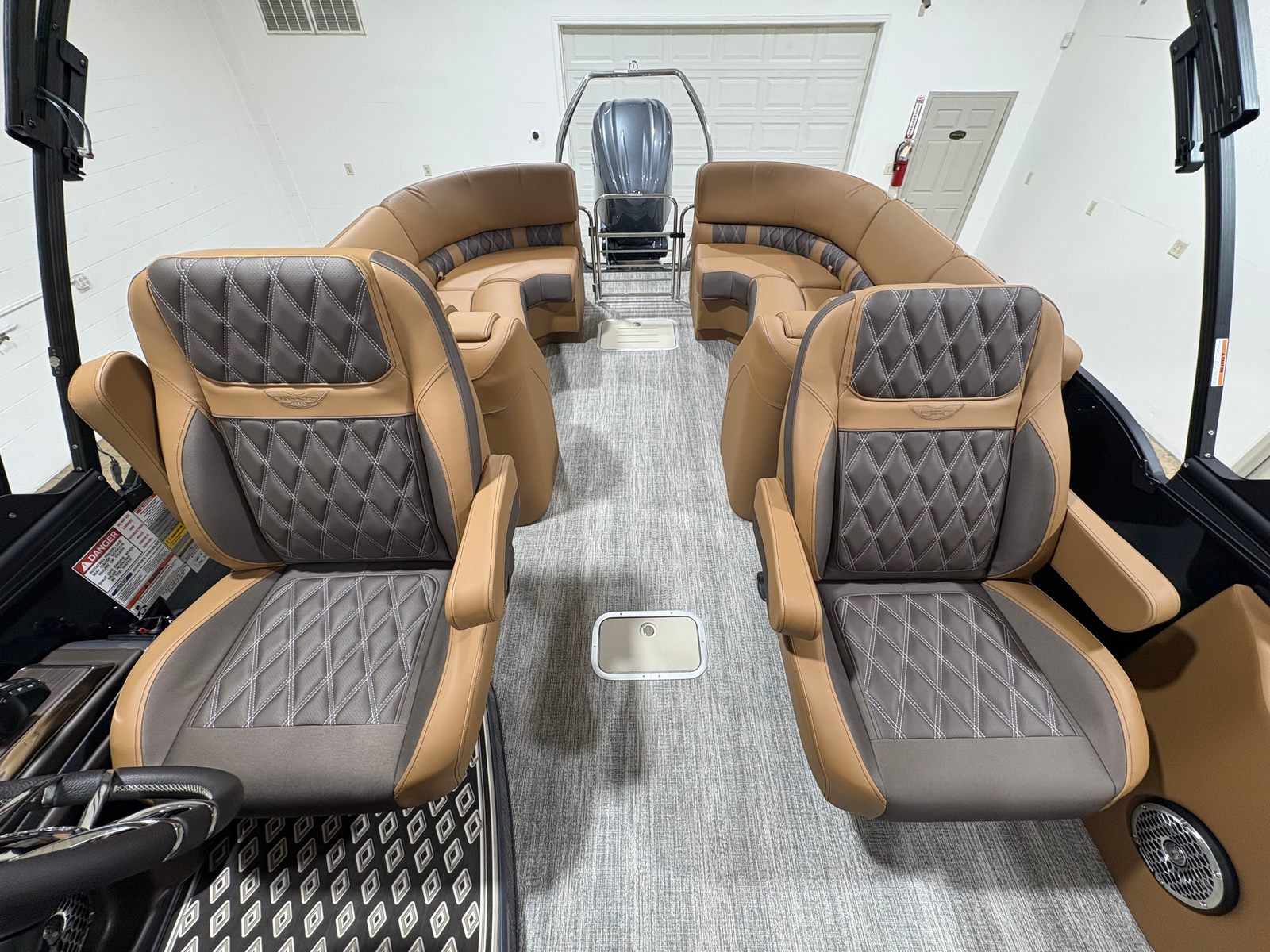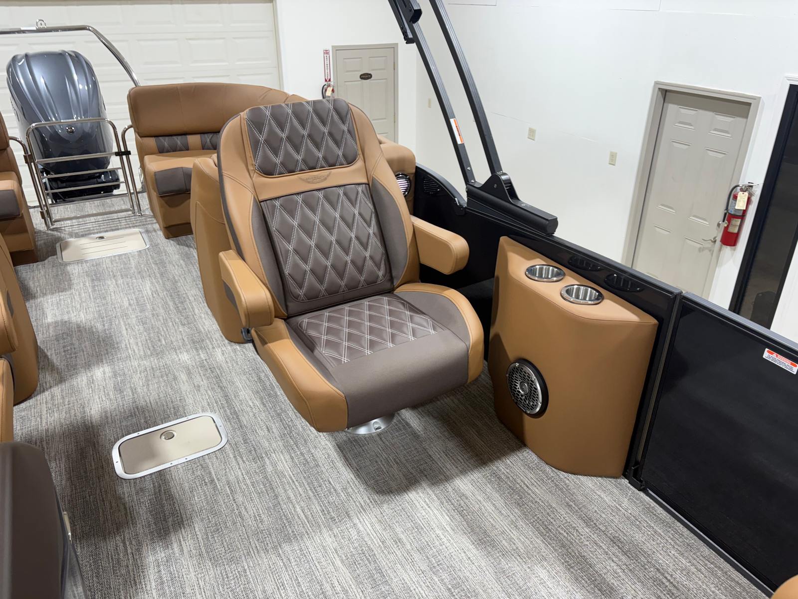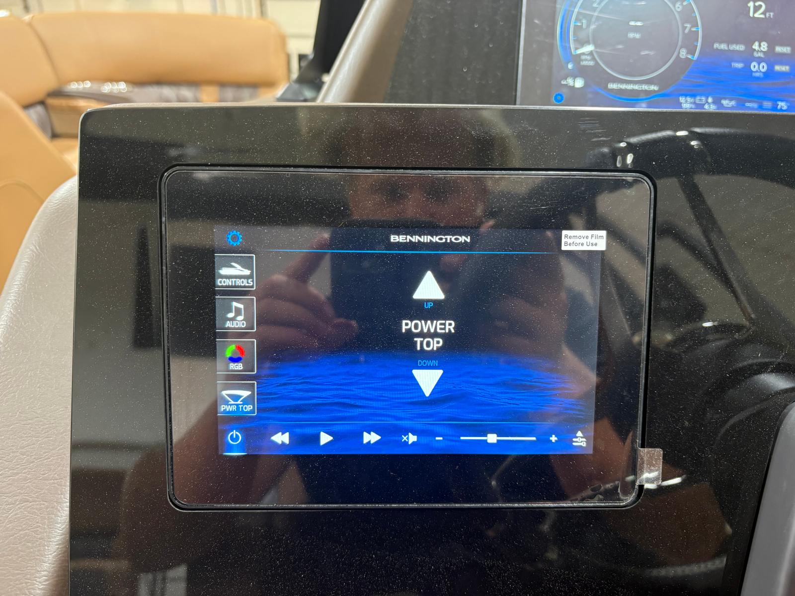 Step aboard the Bennington 23 RFB ESP and discover a world of premium features designed to enhance every moment on the water. Enjoy the ambiance created by illuminated cupholders (eight in total), exterior side lighting, underwater lighting, and toekick lights (2-37' and 2-62'), which add a touch of elegance and safety during evening cruises. The blackout logos and electric power top curved Bimini in sleek black not only provide shade but also elevate the boat’s modern aesthetic.Music lovers will appreciate the Rockford Fosgate audio system, featuring four 6.5" M2 speakers, two 8" M2 speakers (Fastback), a 10" M2 subwoofer, and a dual PM Punch amplifier upgrade. Whether you’re hosting a party or relaxing with a good book, the sound quality is sure to impress. The interior is adorned with Zebrawood Matte Beige accents, creating a sophisticated and inviting atmosphere for you and your guests.