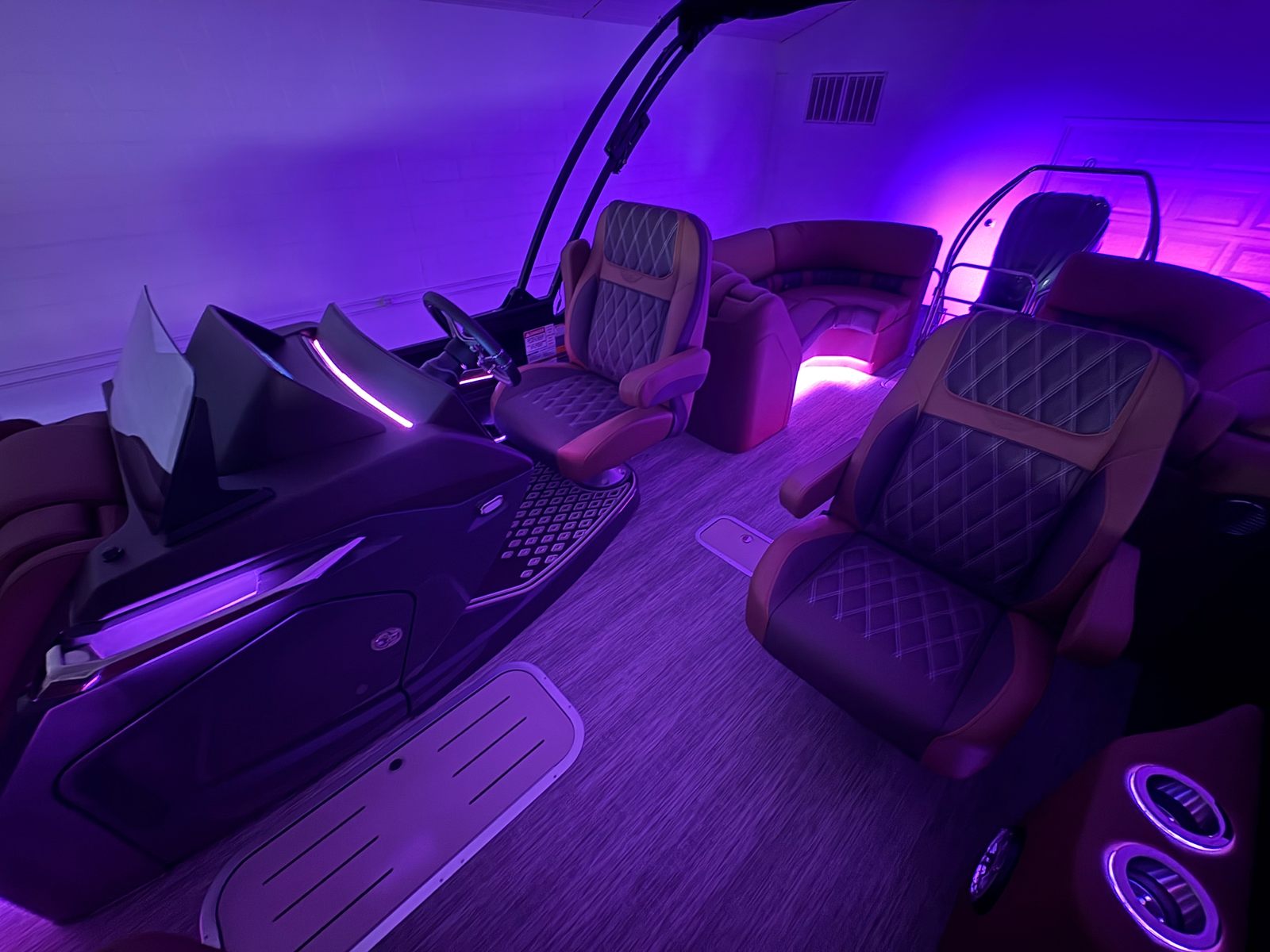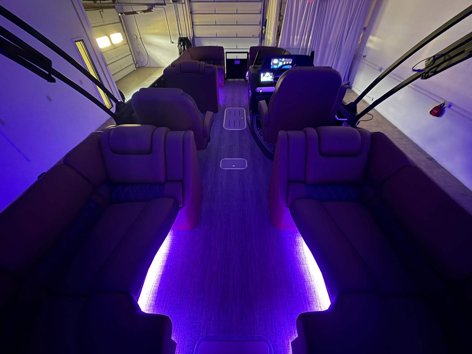 This pontoon boat for sale is perfect for a wide range of activities and occasions. Imagine hosting family outings where everyone can relax, swim, and enjoy the sunshine. The spacious deck and premium audio system make it ideal for lively parties, while the comfortable seating and elegant lighting create a serene atmosphere for romantic sunset cruises.Fishing enthusiasts will appreciate the stability and ample space for casting lines, while adventure seekers can take advantage of the powerful engine for watersports and exploration. The Bennington 23 RFB ESP is equally suited for luxury getaways, offering a private oasis on the water where you can unwind and recharge.