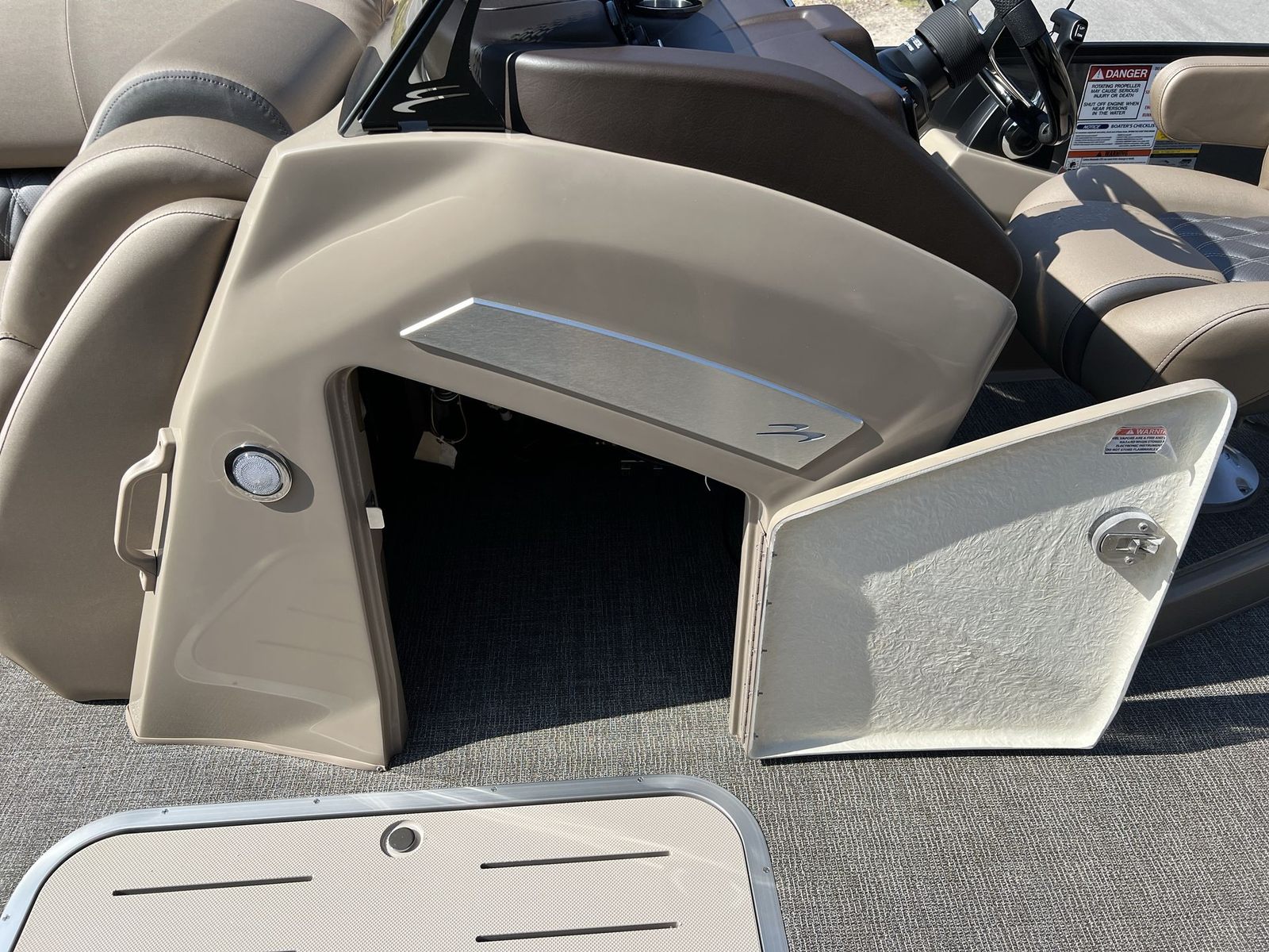 Step aboard the Bennington 24 Lxssb ESP and discover a world of premium features designed to enhance your boating experience. Accent lighting and exterior side lighting create a vibrant atmosphere for evening cruises, while blackout logos add a touch of modern elegance to the boat’s exterior. The elevated console platinum offers superior visibility and ergonomic control, ensuring the captain’s comfort and convenience.Inside, the interior accent of perforated metallic carbon and the Zebrawood matte beige finish deliver a sophisticated and inviting ambiance. The Rockford Fosgate 10" subwoofer and amplifier with a custom enclosure upgrade provide exceptional sound quality, transforming your outings into memorable events with rich, immersive audio. Every detail of this Bennington boat for sale is crafted to impress, from the sleek lines to the luxurious finishes.