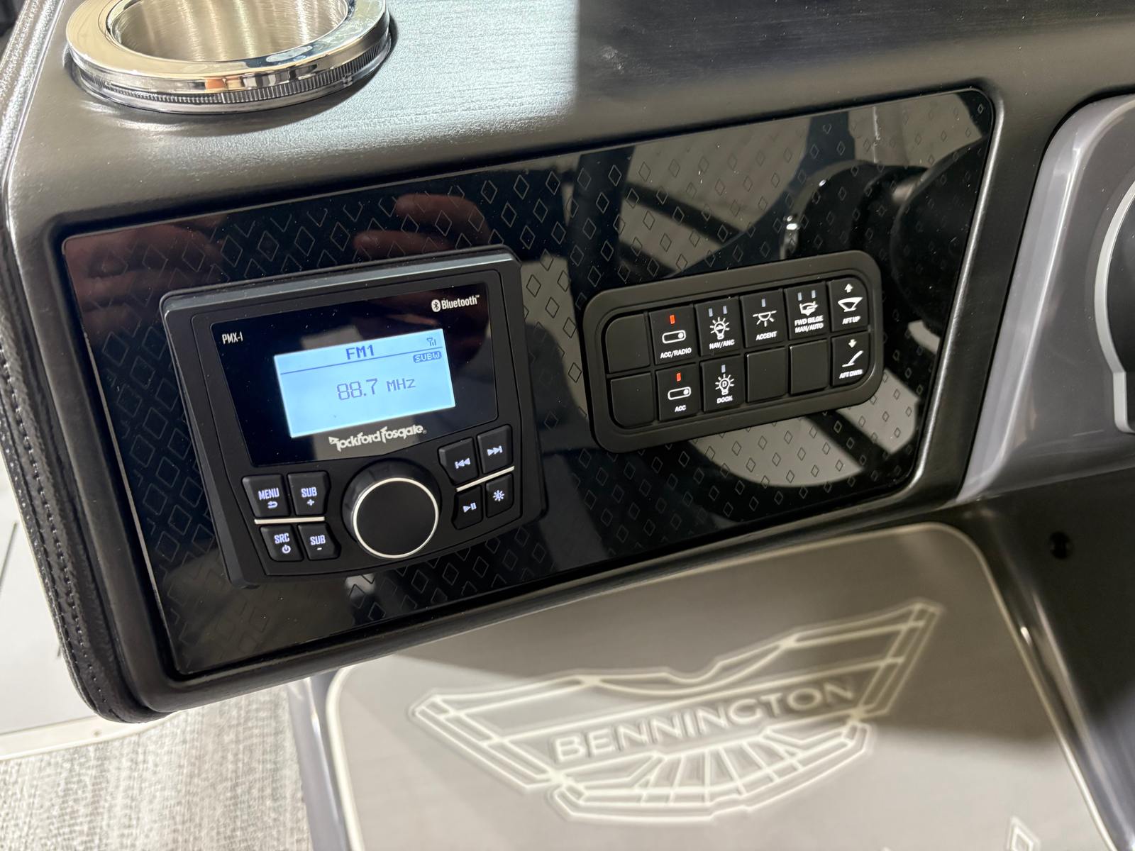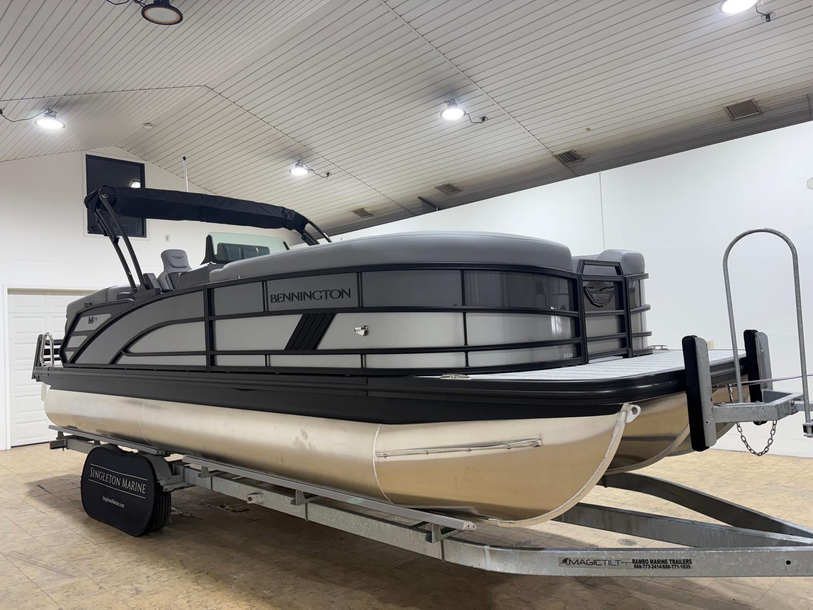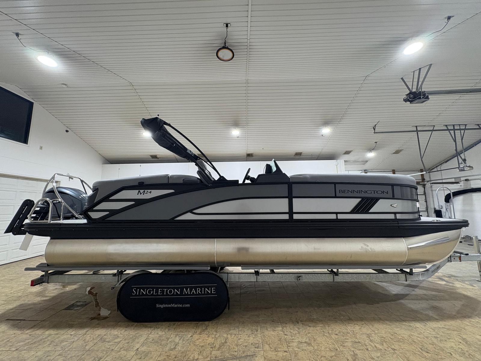 In summary, the 2026 Bennington 24 MFB ESP is a standout pontoon boat for sale that combines powerful performance, luxurious features, and exceptional versatility. With its 250-horsepower engine, elevated console, electric power top, striking exterior lighting, and stylish interior accents, this Bennington boat for sale is designed to impress and built to last. The thoughtful layout and premium amenities ensure every outing is comfortable, enjoyable, and memorable.If you are ready to elevate your time on the water and experience the ultimate in pontoon luxury, the Bennington 24 MFB ESP is the perfect choice. Discover the difference that quality craftsmanship and innovative design can make—contact your local dealer today to learn more about this remarkable pontoon boat and start planning your next adventure.