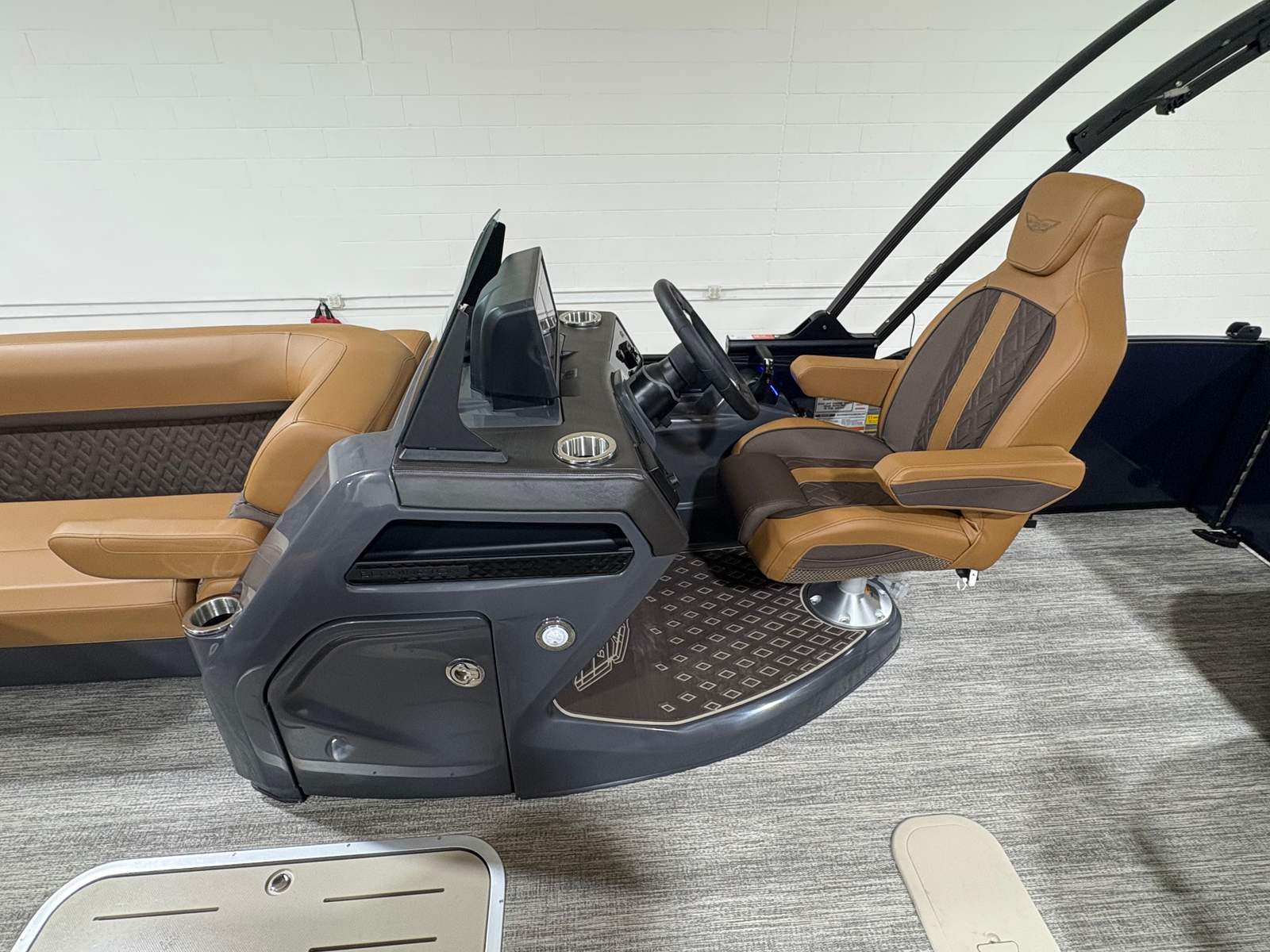Practicality meets luxury in the Bennington 24 MSB ESP. The aft pop-up cleats simplify the docking process, making it easy to secure your boat at any location. The ESP Performance Package enhances fuel efficiency and handling, so you can spend more time enjoying the water and less time worrying about refueling or maneuvering. The spacious layout provides plenty of room for gear, coolers, and personal items, ensuring that everything you need for a day of fun is always within reach.The midnight black canvas not only adds style but also offers protection from the elements, keeping your boat looking pristine. The power hydraulic assist steering makes navigation effortless, even in challenging conditions, while the advanced touchscreen display keeps you informed and in control. Every feature is designed to make ownership easy, enjoyable, and worry-free.