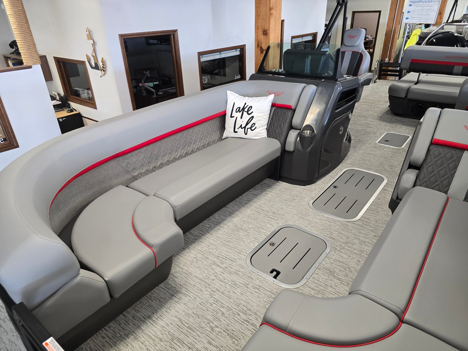 Practicality is at the core of the Bennington 24 MSB SPS Plus. The dual battery switch system with fuse provides peace of mind, ensuring you always have reliable power for your electronics and accessories. The elevated console offers improved visibility and convenient access to controls, making docking and maneuvering a breeze. The ample storage provided by the Base Furniture M Series means you can keep your gear organized and out of the way, while the ski tow bar adds versatility for active families and adventure seekers. The Valencia Grey exterior is not only stylish but also easy to maintain, ensuring your pontoon looks great season after season.