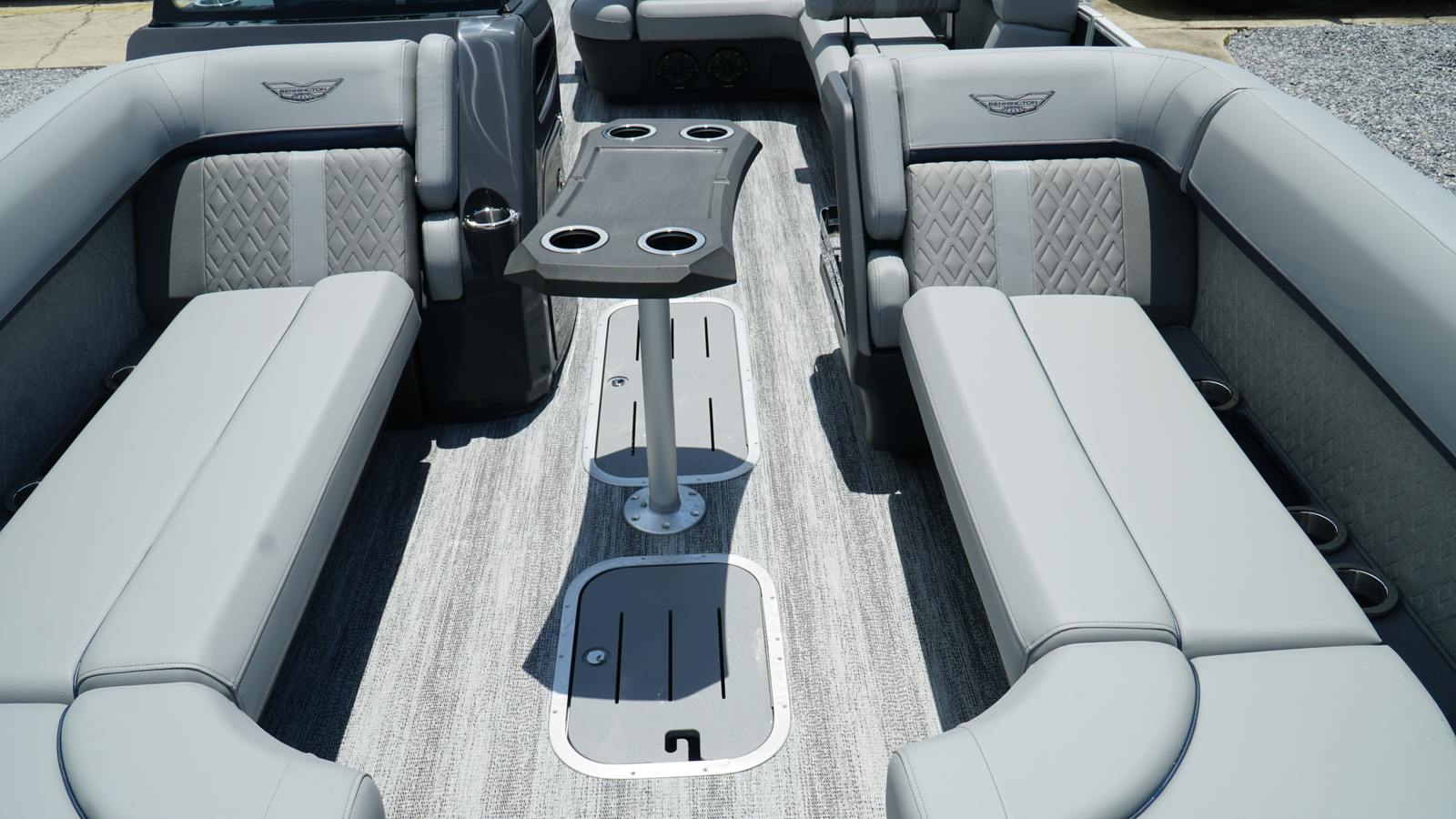 Practicality is at the core of the Bennington 24 MSB SPS design. The elevated console and ample storage pockets keep your essentials organized and within reach, while the dual battery system ensures uninterrupted operation of onboard electronics and accessories. Docking is made easier with responsive hydraulic steering, and the Rough Water Package provides peace of mind when conditions are less than ideal. Fuel efficiency is enhanced by the single Yamaha engine, reducing operating costs and environmental impact. The thoughtful layout and premium materials are easy to clean and maintain, so you can spend more time enjoying your boat and less time on upkeep.