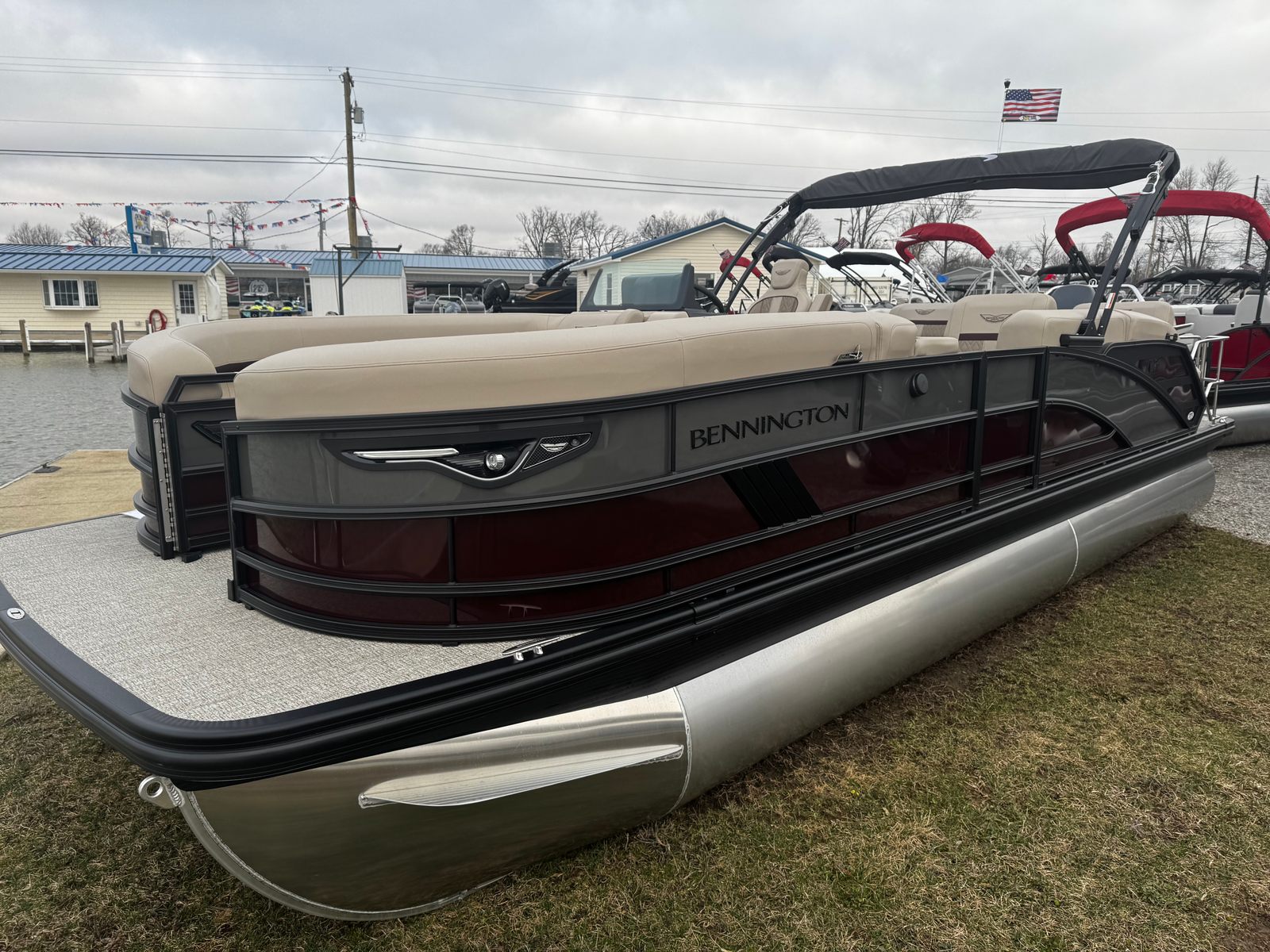 The 2026 Bennington 24 MSL ESP is a brand-new pontoon boat that measures an impressive 26.25 feet in length, offering ample space for friends and family to relax and enjoy the open water. This Bennington boat for sale is crafted with meticulous attention to detail, ensuring a premium boating experience from bow to stern. The sleek exterior features a striking Panel in Smooth Sunset Red, complemented by an Accent in Smooth Anthracite, creating a bold and modern look that stands out at any marina or lakefront.