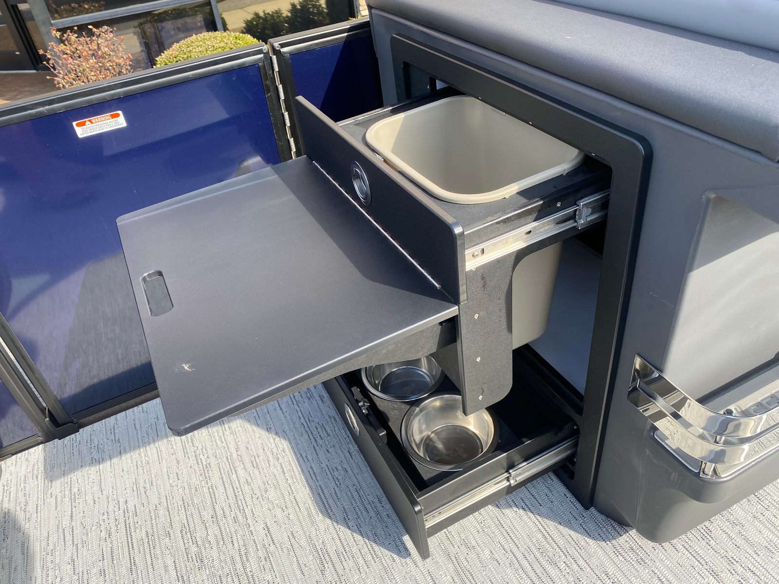 Step aboard the Bennington 24 MSL SPS and you will immediately notice its attention to detail and luxurious appointments. The exterior is finished in a striking Smooth Midnight Blue panel, accented by Smooth Satin Black for a modern, sophisticated look. The Graphite Veneto adds a touch of elegance, while the Interior Accent in Midnight Blue Simtex creates a refined and inviting atmosphere.Lighting plays a key role in setting the mood on this pontoon. The RGB Control M Series allows you to customize the ambiance with vibrant, color-changing lights, while the exterior side lighting and toekick lights (2-62") add both style and safety for evening cruises. Entertainment is elevated with Rockford Fosgate M1 lighted speakers, delivering premium sound quality and visual flair for your on-water gatherings.