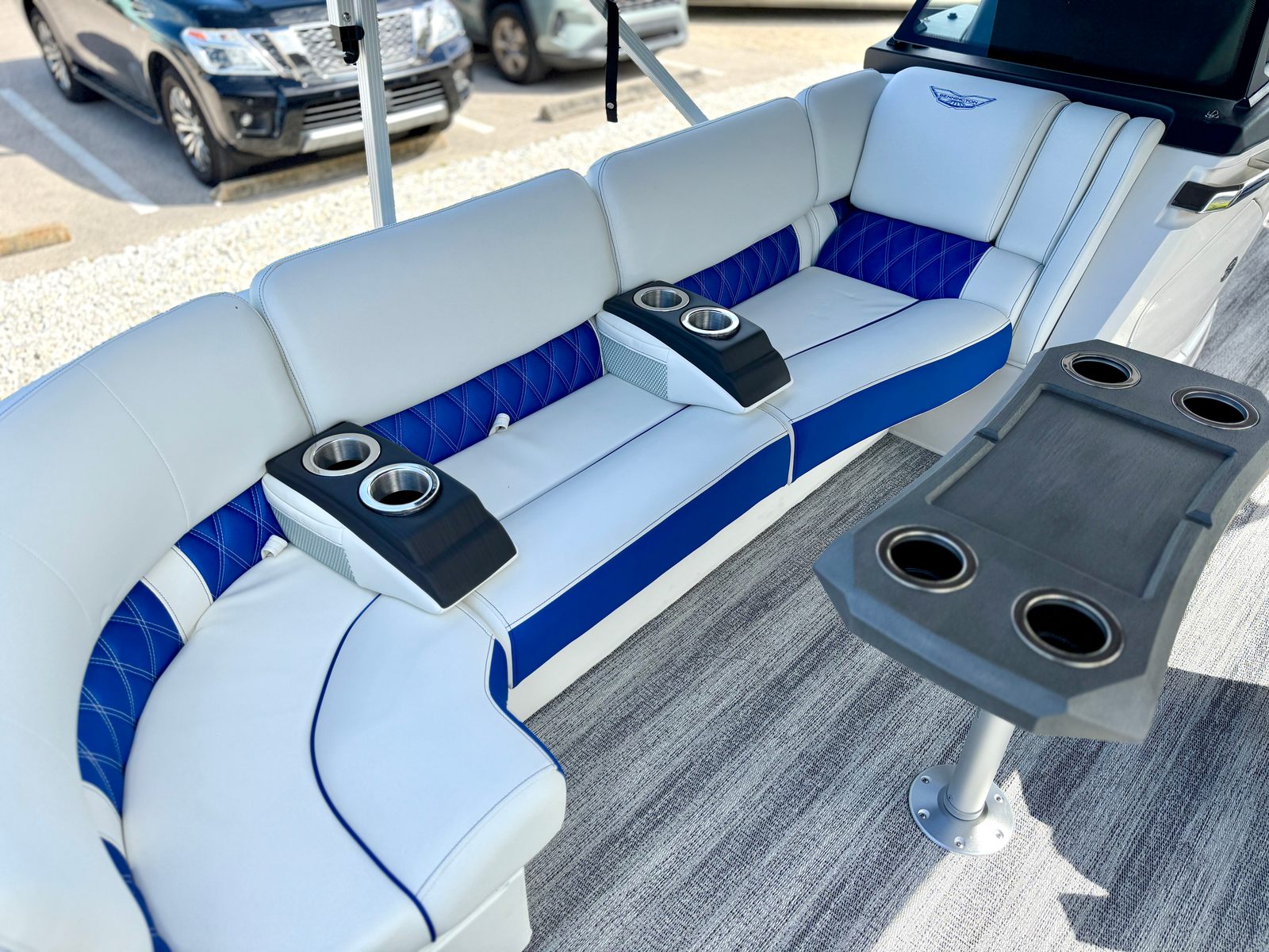 The 2026 Bennington 25 RFB ESP stretches an impressive 25.33 feet in length, offering ample space for entertaining, lounging, and enjoying the open water. As a brand-new pontoon, it boasts the latest advancements in marine technology and design, ensuring a modern and reliable boating experience. The sleek exterior is complemented by dimensional chrome logos, giving the boat a distinctive and upscale appearance that will turn heads at any marina or lakeside dock.