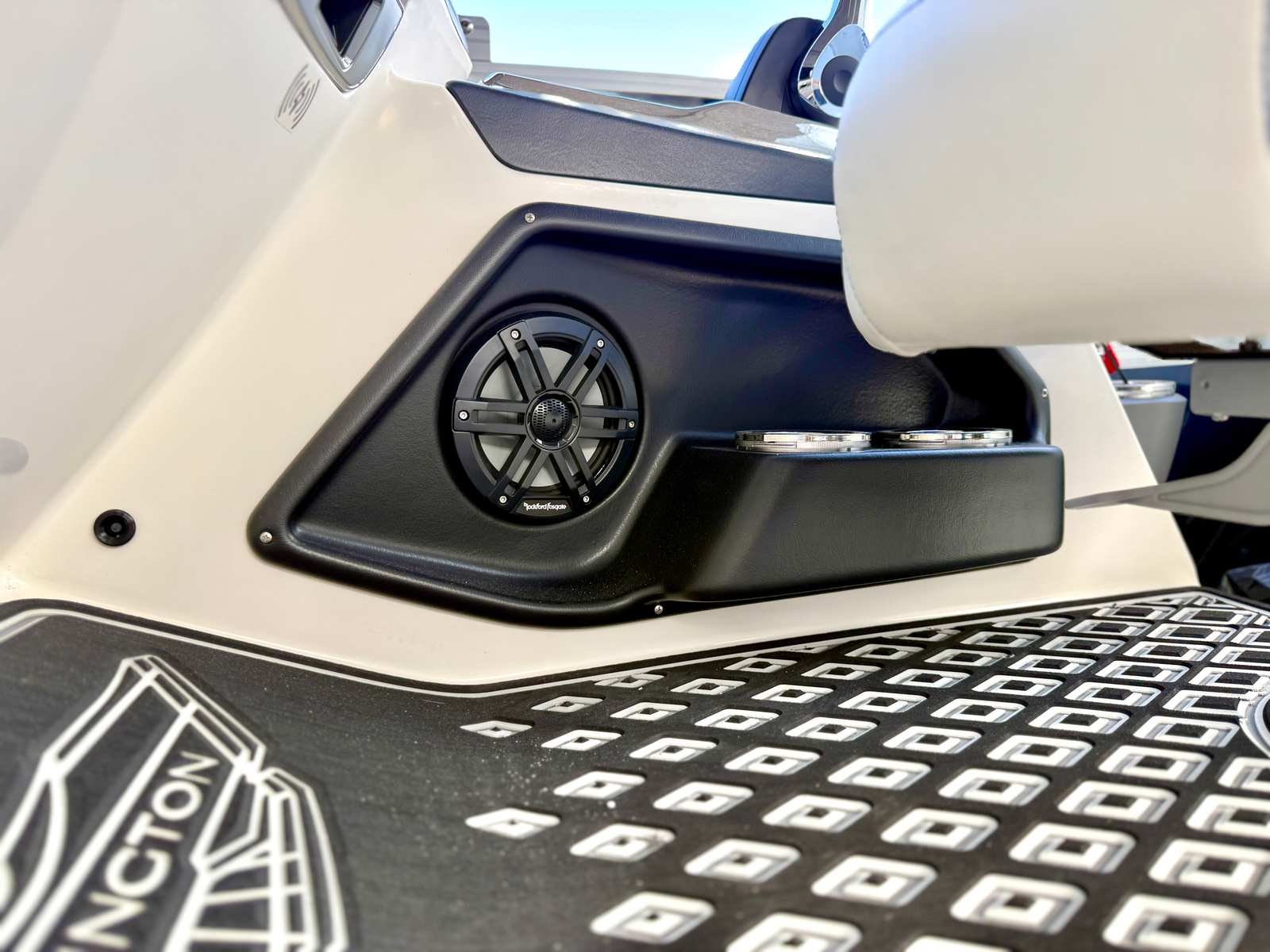 Step aboard the Bennington 25 RFB ESP and discover a world of premium features designed to enhance every moment on the water. The Sunshine Package bathes the deck in natural light, creating a bright and inviting atmosphere perfect for sunny days. Toekick lights, including two 37-inch and two 62-inch fixtures, add a touch of elegance and safety, illuminating the deck for evening cruises or late-night gatherings.The console is finished in a striking Ice White, paired with Zebrawood Matte Slate accents for a contemporary and sophisticated look. The base pillowtop diamond-stitched upholstery (R) provides plush seating that is as comfortable as it is stylish, inviting you and your guests to relax in luxury. The Benny Quick Fender Latch Kit in silver (quantity 4) makes it easy to secure fenders quickly and efficiently, adding convenience and peace of mind when docking or mooring.