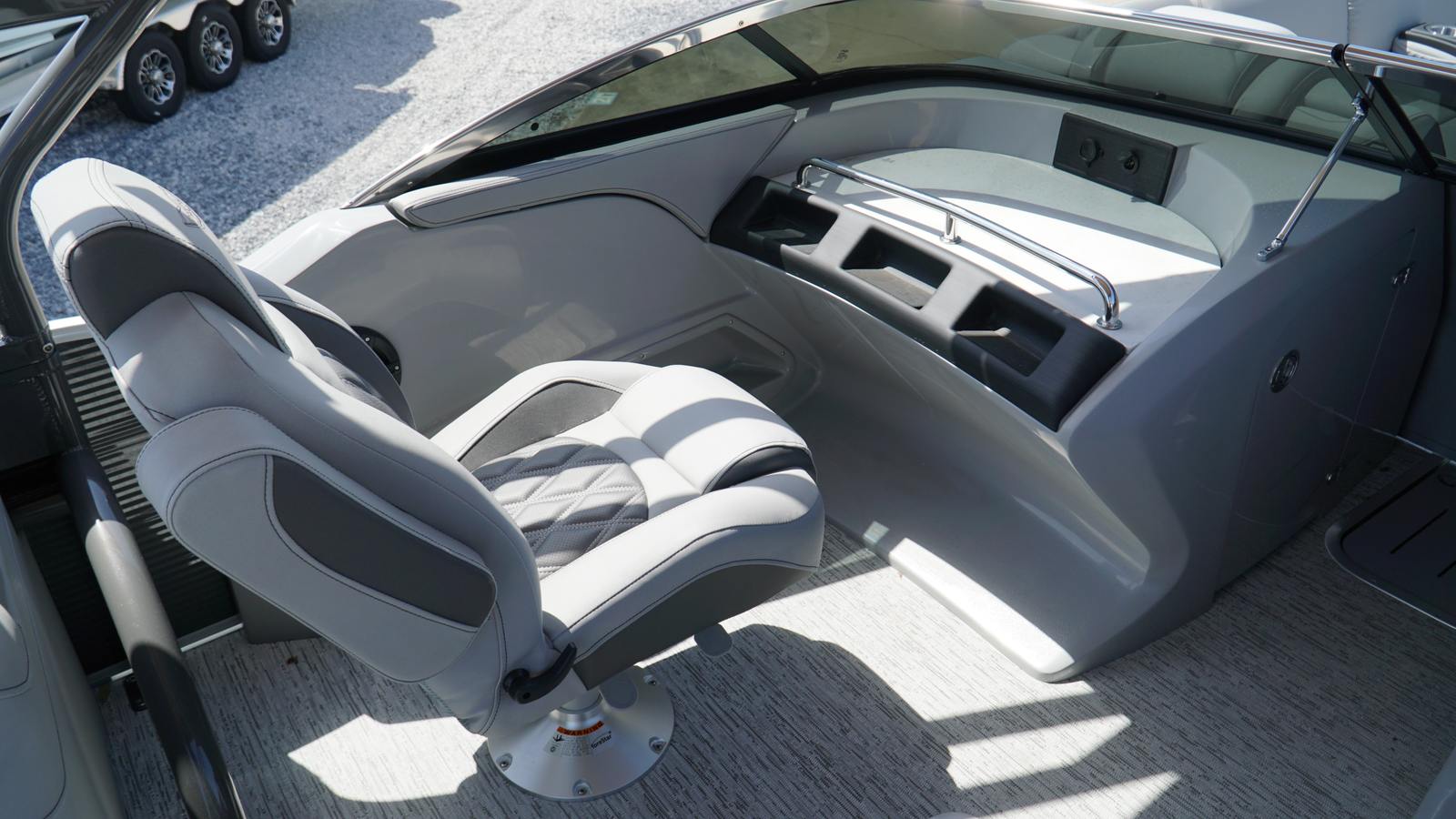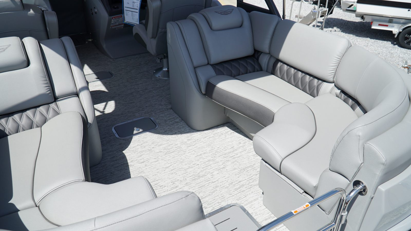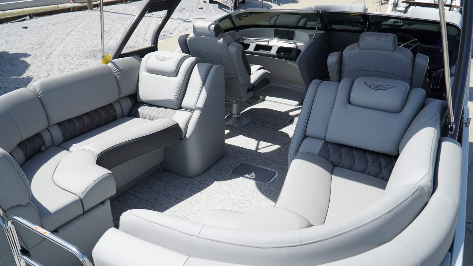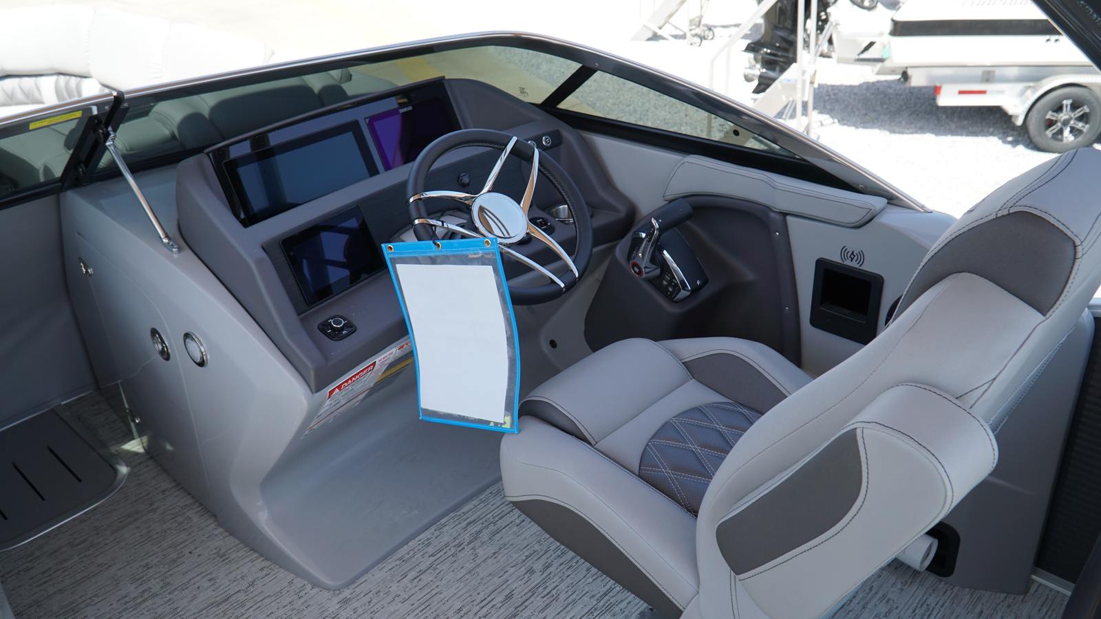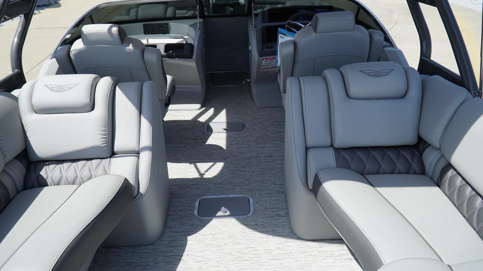 The Bennington 25 Rfbwa ESP is packed with special features that set it apart from other pontoon boats. The interior accent features Perforated Metallic Carbon, adding a touch of modern sophistication to the cabin. The Zebrawood Matte Slate trim brings a refined, natural aesthetic, while the Taupe canvas offers both style and protection from the elements. The base pillowtop diamond-stitched upholstery (R) ensures plush comfort for all passengers, and the arch color match with custom primary panel color creates a cohesive and striking visual appeal. No accent textured surfaces and Silver Simtex materials further enhance the boat’s luxurious feel. Mercury Power Steering rounds out the package, providing effortless maneuverability and a premium driving experience.