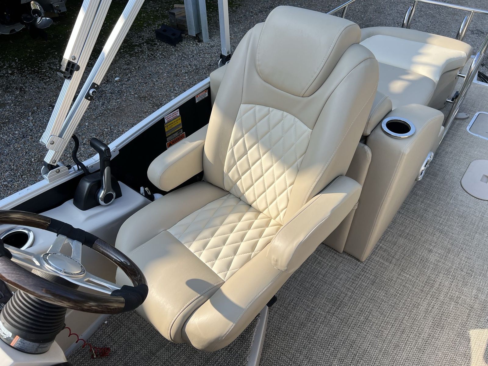Powering this Bennington 2575 QCW is a single engine boasting an impressive 250 horsepower. This robust engine ensures smooth acceleration, responsive handling, and plenty of power for cruising, watersports, or leisurely rides. With only 110 engine hours, you can be confident in the engine’s longevity and reliability. Whether you’re gliding across calm lakes or navigating gentle rivers, the performance of this pontoon boat is sure to impress. The combination of horsepower and Bennington’s advanced hull design means you’ll enjoy a stable, comfortable ride every time you hit the water.
