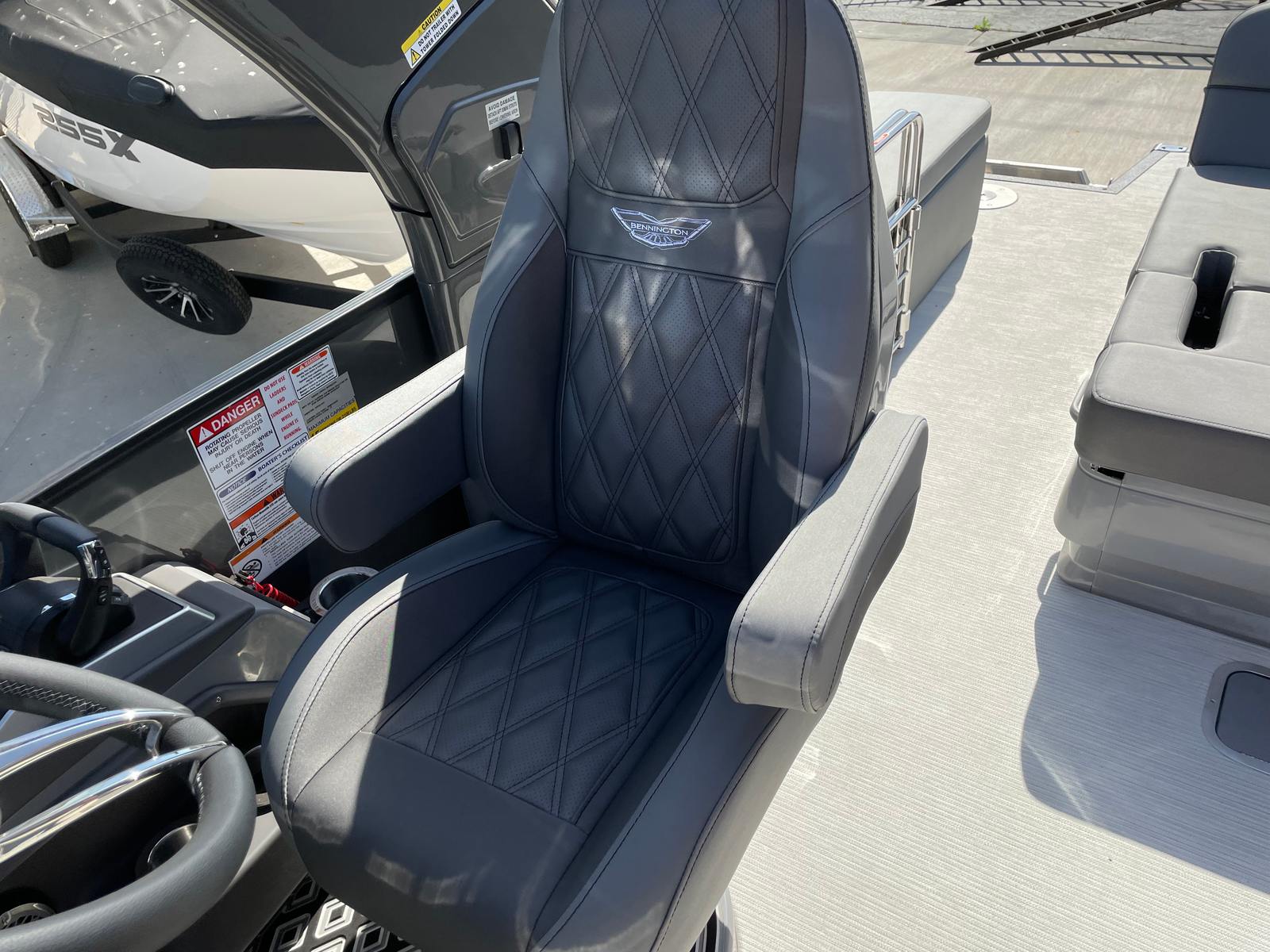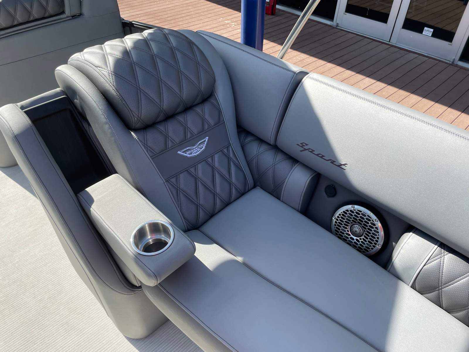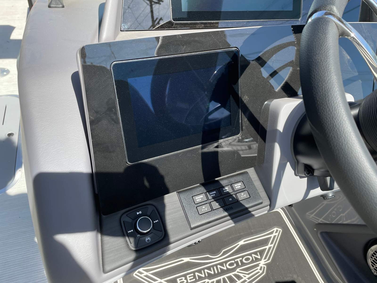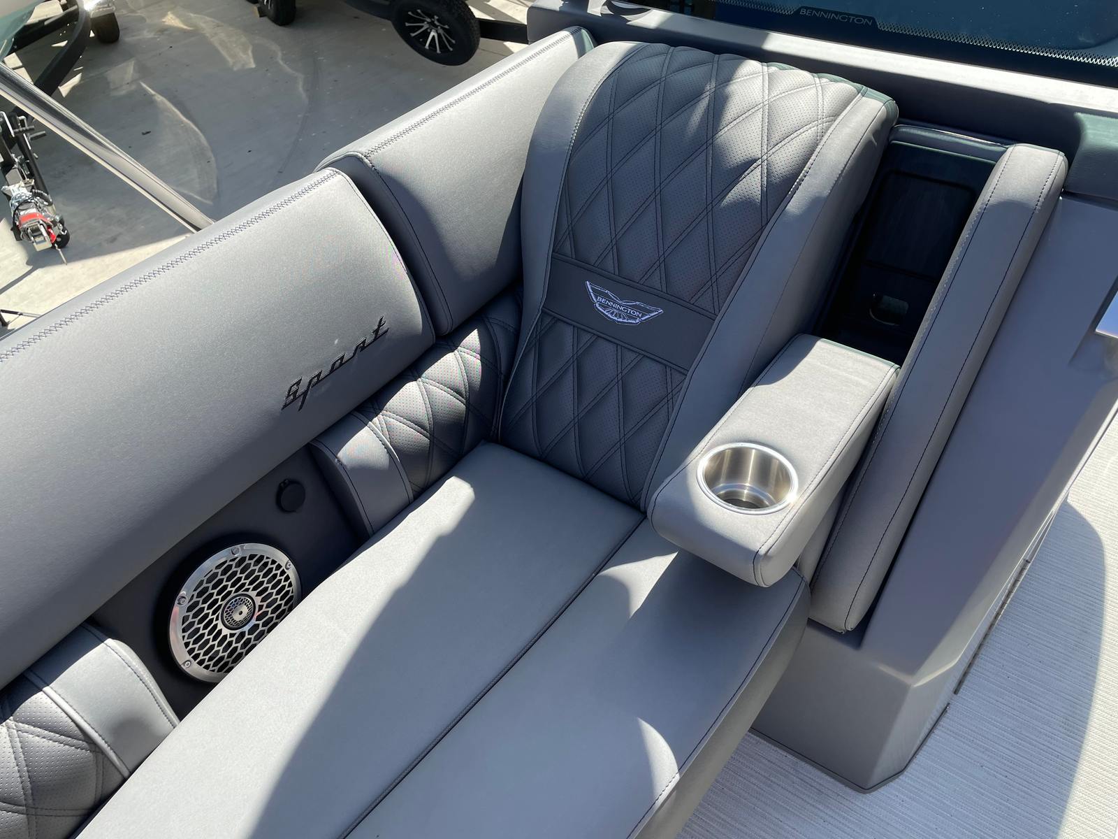 The 2025 Bennington 27 QSBAX2 ESP is loaded with premium features designed to enhance every aspect of your boating experience. The illuminated cupholders add a touch of elegance and ensure your favorite beverages are always within reach, even after sunset. Exterior side lighting and underwater lighting create a captivating ambiance, making evening outings truly magical. The toekick lights, available in multiple sizes (2-41", 1-62", 2-72"), provide both safety and style, illuminating walkways and adding to the boat’s modern aesthetic.The interior of this Bennington pontoon is a masterpiece of comfort and design. The console graphite and graphite Simtex materials offer a sleek, contemporary look, while the interior accent in perforated metallic carbon adds a sophisticated touch. The entertainment system is second to none, featuring eight Rockford Fosgate 6.5" M2 speakers, a powerful 10" M2 subwoofer, and a PM Punch amplifier upgrade. Whether you are hosting a party or enjoying a quiet evening on the water, the audio experience is immersive and crystal clear.