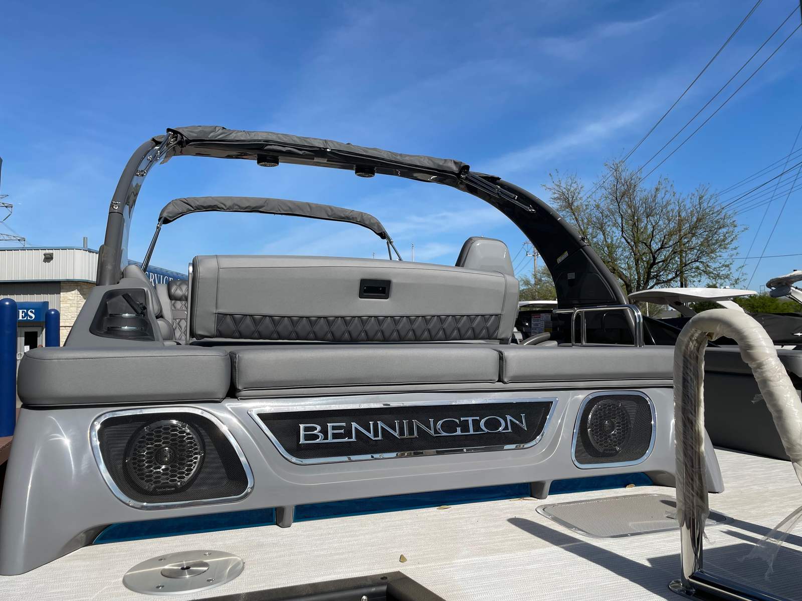 The 2025 Bennington 27 QSBAX2 ESP is more than just a pontoon boat for sale—it is a statement of luxury, performance, and fun. With its powerful twin Yamaha engines, advanced steering system, and a host of premium features including illuminated cupholders, exterior and underwater lighting, and a top-tier Rockford Fosgate audio system, this Bennington boat for sale is designed to impress. The stylish interior, spacious layout, and practical amenities make it the perfect choice for families, entertainers, and boating enthusiasts alike.If you are ready to elevate your time on the water, the Bennington 27 QSBAX2 ESP is waiting to make your boating dreams a reality. Contact your local dealer today to learn more about this exceptional pontoon boat and discover how you can make it yours.