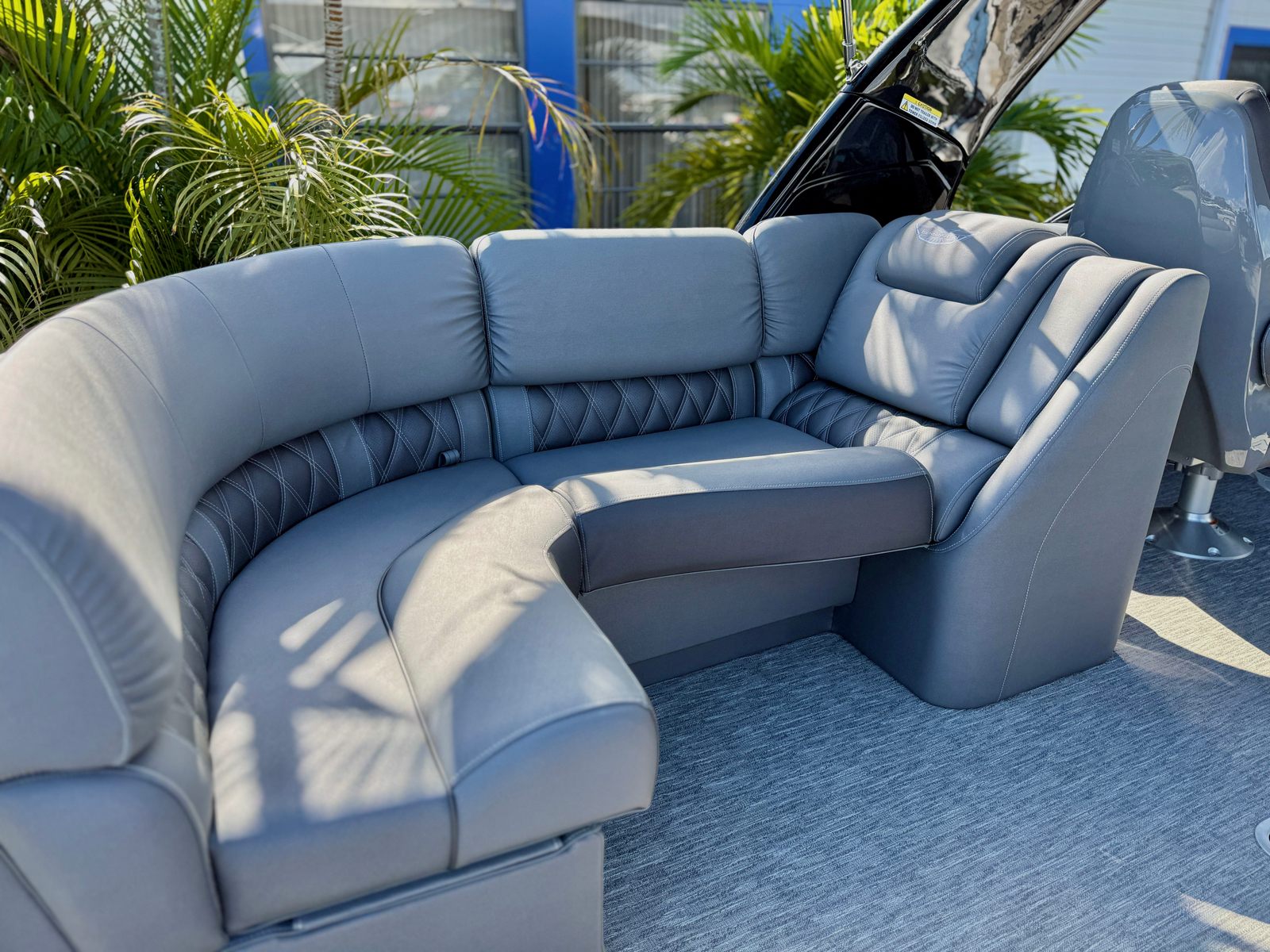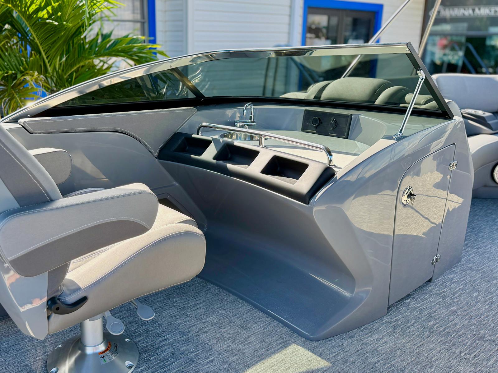 Owning the Bennington 27 QXFBWAX2 ESP pontoon boat means embracing a lifestyle of fun, relaxation, and social connection. The spacious deck layout provides ample room for guests to lounge, mingle, and soak up the sun. The advanced lighting systems create a festive atmosphere for evening cruises, while the premium audio setup ensures your favorite playlists sound incredible, whether you’re anchored in a quiet cove or hosting a lively party on the water.Comfort is paramount, with plush seating and thoughtful design elements that make every moment onboard enjoyable. The illuminated cupholders and accent lighting add a touch of luxury, while the high-performance engines guarantee thrilling rides and smooth cruising. This Bennington boat for sale is perfect for those who want to combine excitement with relaxation, offering the best of both worlds.