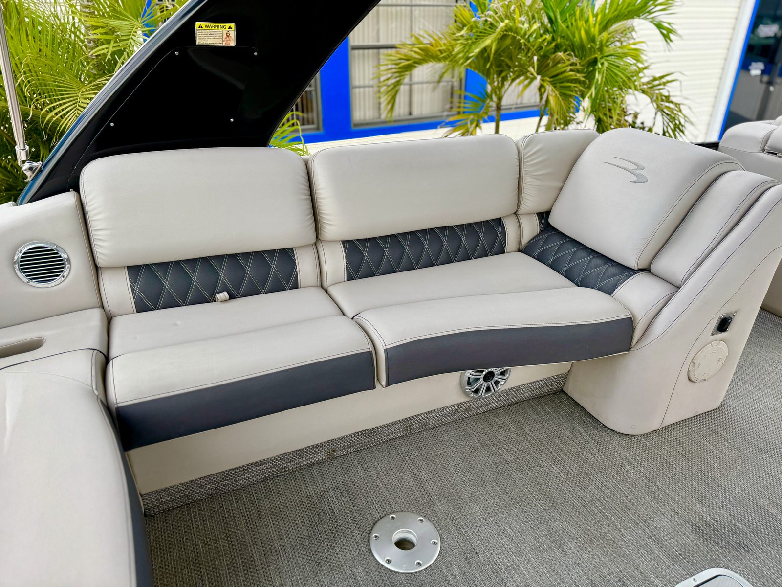 Powering this Bennington pontoon is a robust single engine with an impressive 425 horsepower, delivering smooth and reliable performance on the water. With only 298 engine hours, this boat has plenty of life left for countless adventures. The powerful engine ensures quick acceleration, effortless cruising, and the ability to handle a variety of water conditions with confidence. Whether you are towing water toys, exploring new coves, or simply enjoying a leisurely cruise, the performance of this Bennington boat for sale will exceed your expectations.