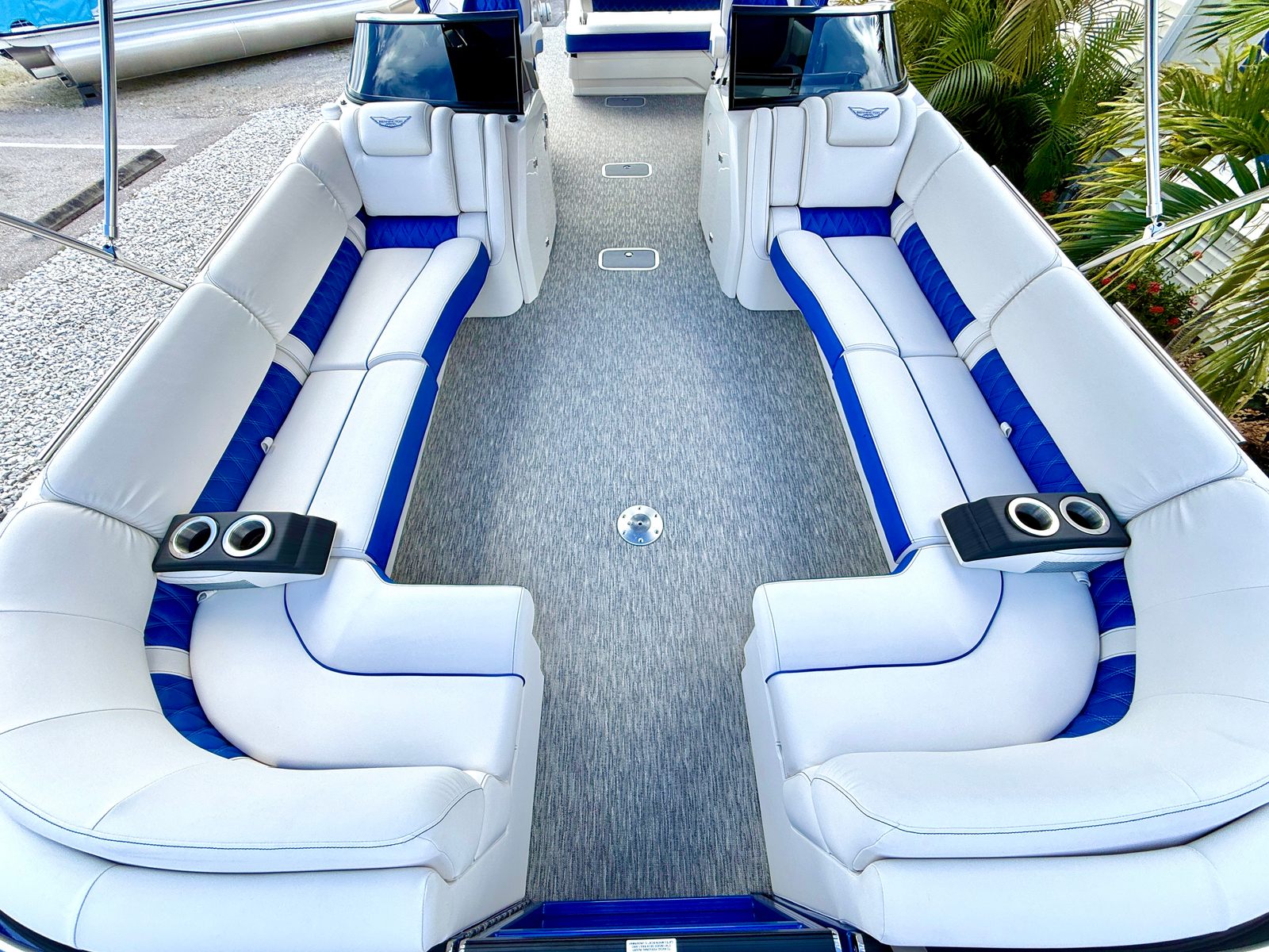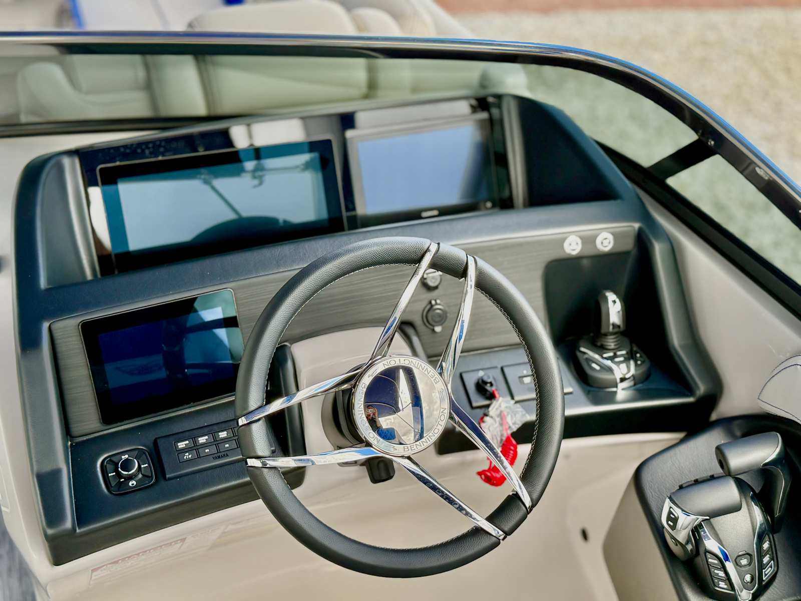 Power and precision define the performance of the Bennington 30 QXSBWAX2 ESP. Equipped with twin 450 HP Yamaha Offshore engines featuring integrated steering, this pontoon delivers a combined 900 horsepower for exhilarating acceleration and smooth handling. The Yamaha Twin Integrated Steering system ensures responsive control, making navigation effortless even in challenging conditions. Whether you are cruising across the lake or exploring new waterways, the robust engine setup provides the confidence and excitement that boating enthusiasts crave.