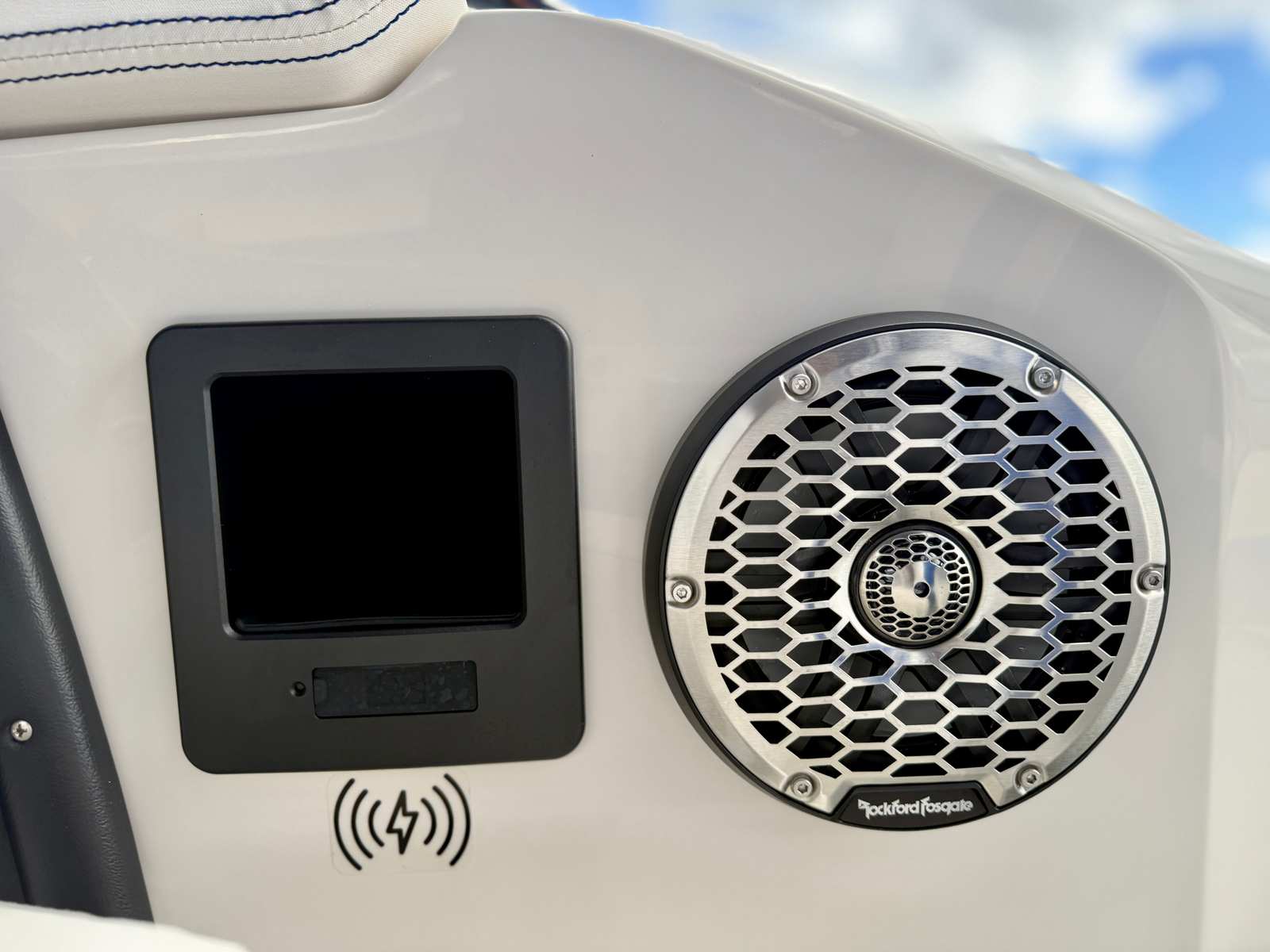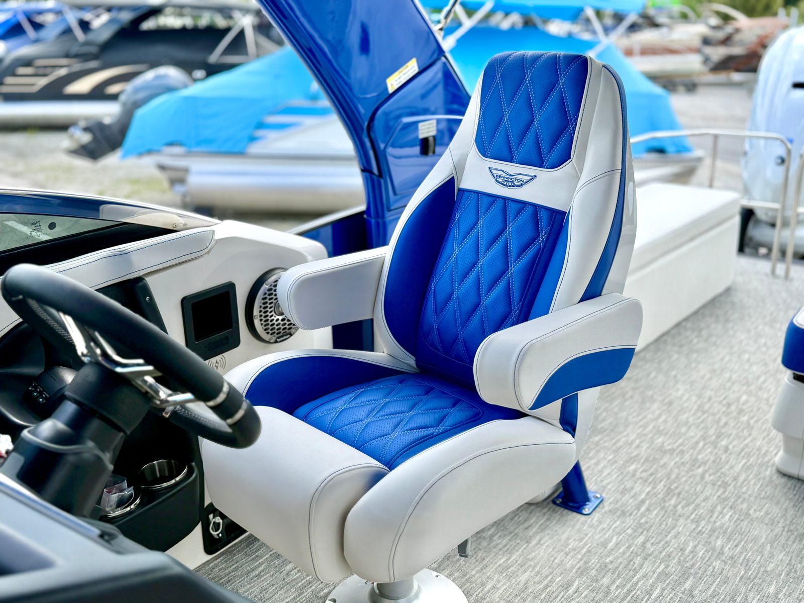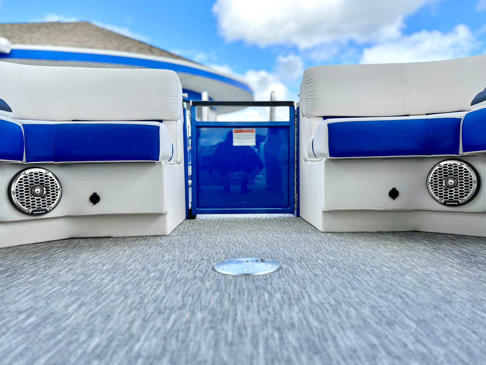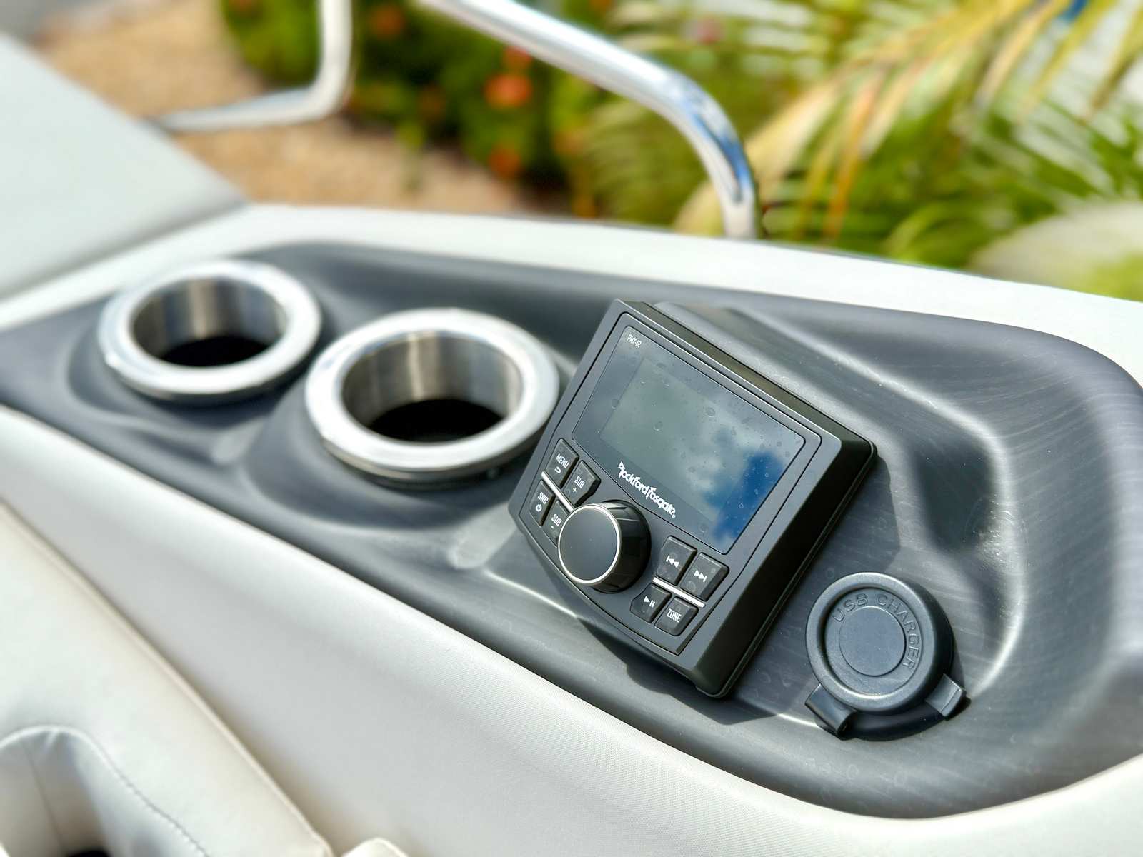 The Bennington 30 QXSBWAX2 ESP is loaded with premium features designed to enhance every aspect of your time on the water. The Sunshine Package brings a bright and inviting atmosphere to the deck, perfect for sunny days and warm evenings. RGB Toe Kick Lighting, illuminated cupholders, and exterior side lighting create a vibrant and customizable ambiance, allowing you to set the mood for any occasion. Underwater lighting adds a dramatic touch, illuminating the water beneath and around your pontoon for a truly unique experience.For music lovers, the Rockford Fosgate 6.5" M2 speakers, 10" M2 subwoofer, and PM Punch Amplifier Upgrade deliver crystal-clear sound and deep bass, transforming your pontoon into a floating concert venue. The blackout logos and Arctic Ice White finish provide a sleek, modern look that turns heads wherever you go. With thoughtful details like seven illuminated cupholders and integrated lighting throughout, every moment on board feels special.