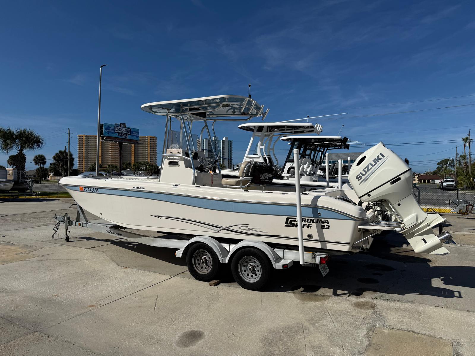 The 2019 Carolina Skiff 23 Ultra Elite is a Center Console boat that measures an impressive 22.92 feet in length, making it an ideal size for both inshore and nearshore excursions. This model is celebrated for its spacious deck layout, which provides ample room for fishing, cruising, or simply relaxing with friends and family. As a used boat, it offers the unique advantage of proven reliability and value, making it a smart investment for those seeking a high-quality Carolina Skiff boat for sale.
