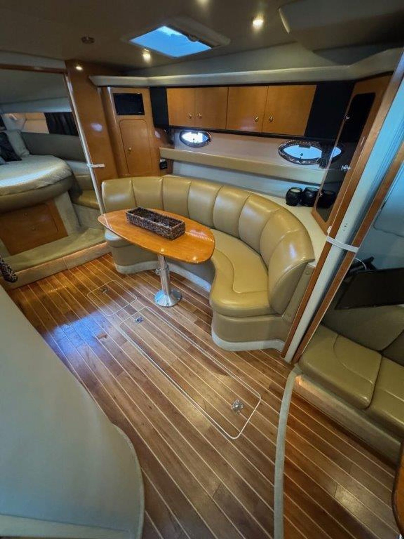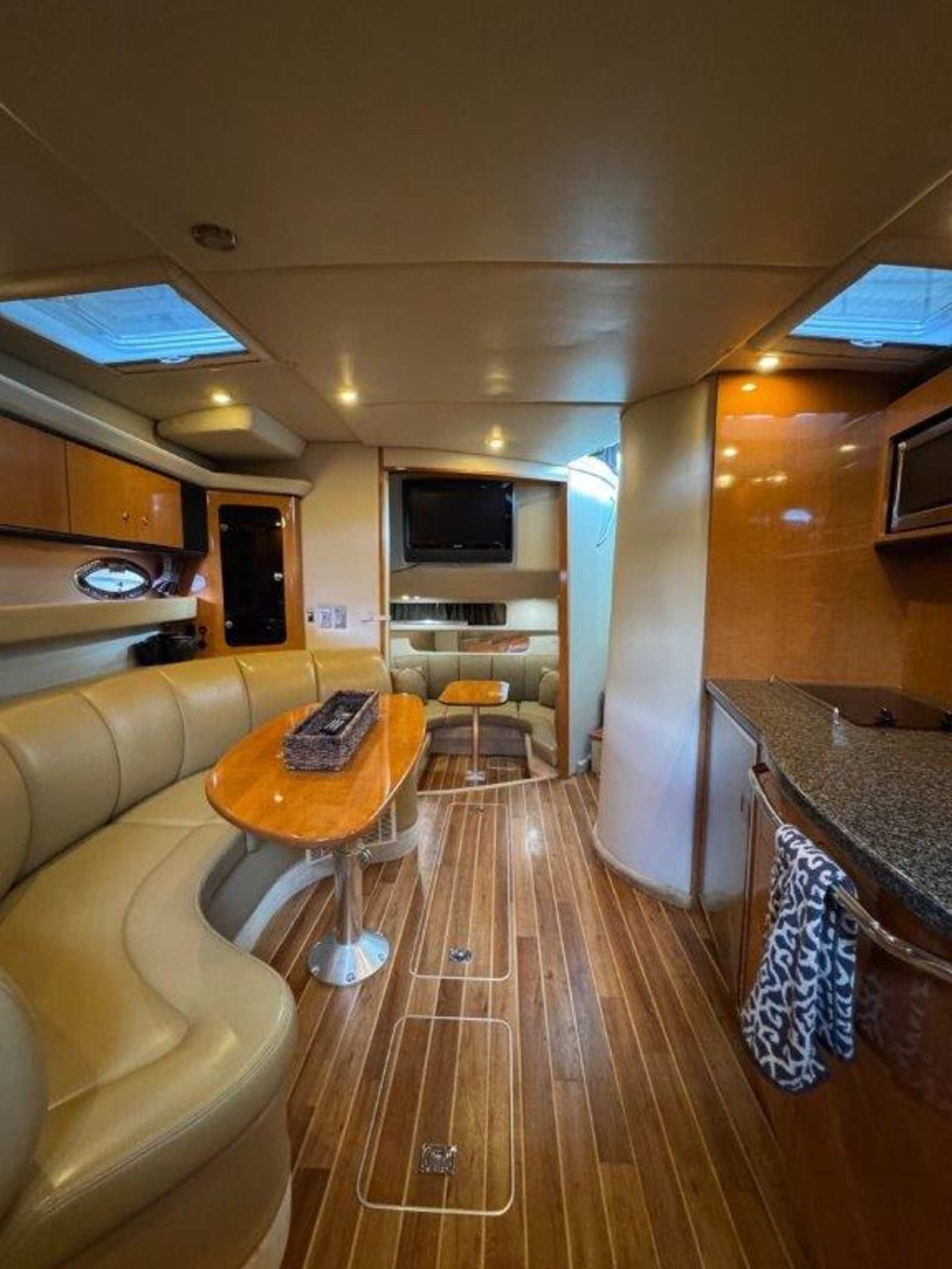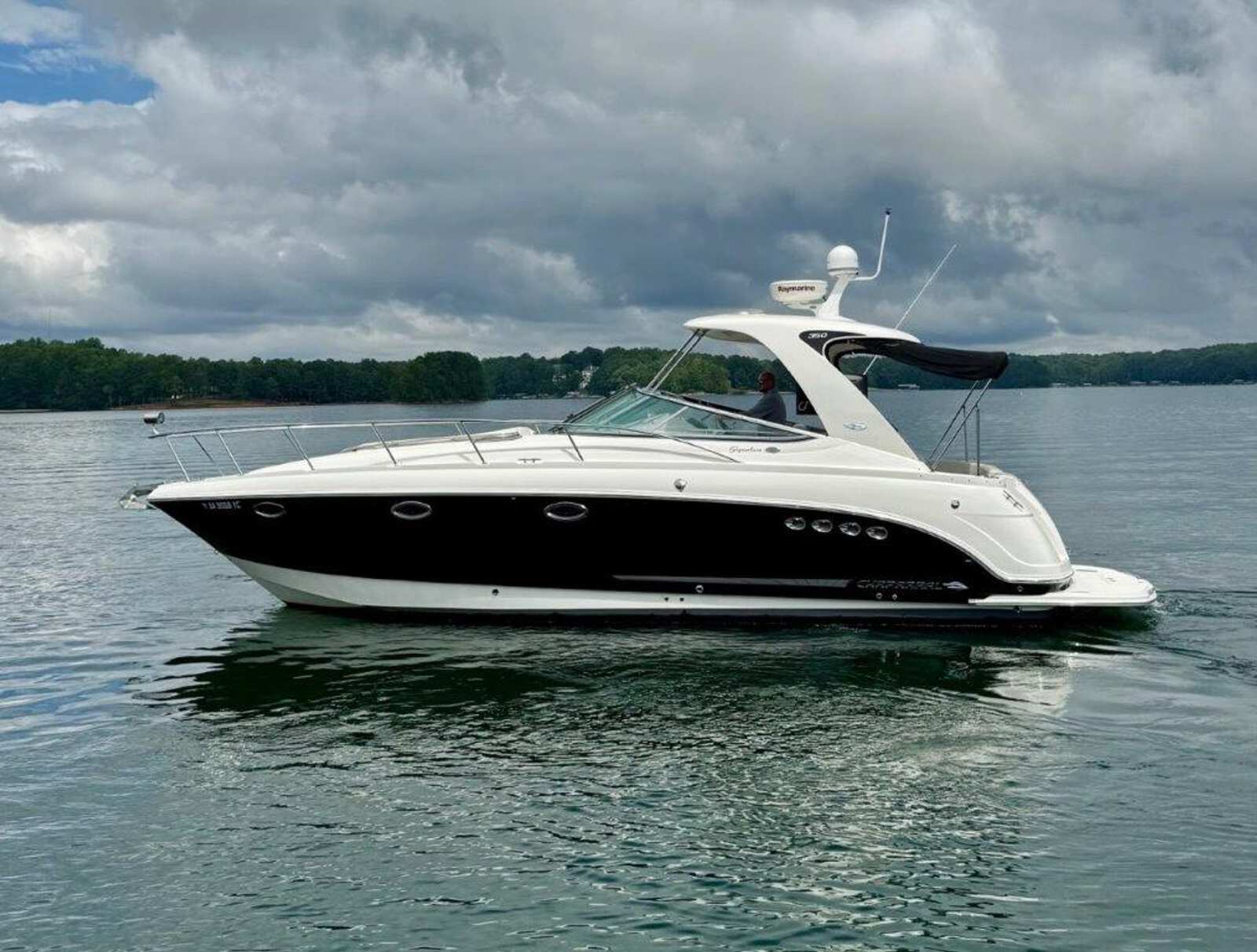 The 350 Signature is designed for entertaining and cruising, offering a spacious cockpit with abundant seating and a thoughtful layout for both day trips and extended stays. Upholstery is in excellent condition, and the full enclosure provides all-weather comfort. The hardtop offers shade while the walk-through windshield allows easy access to the bow and Princess Pad.