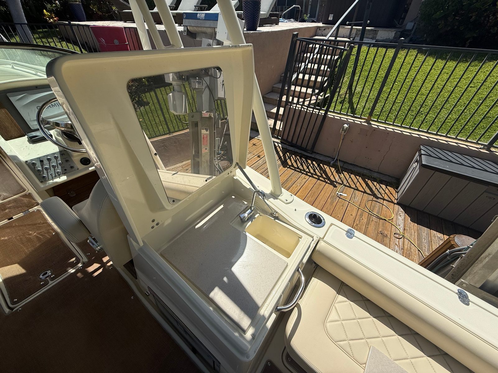 • Deluxe helm and guest seating with flip-down arm rests and flip-up seat bottoms