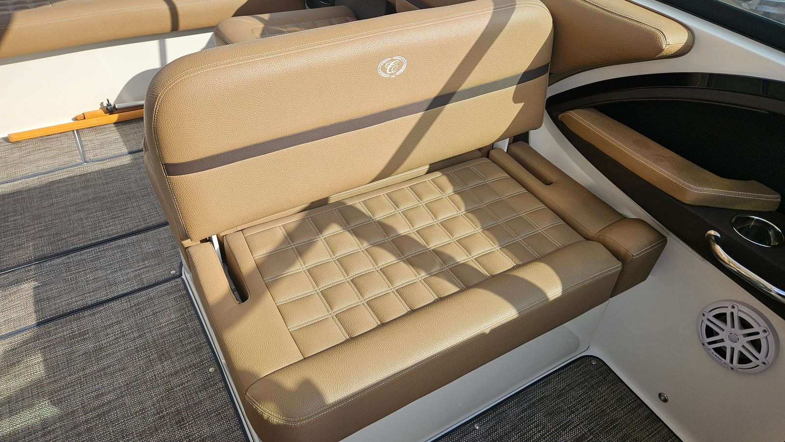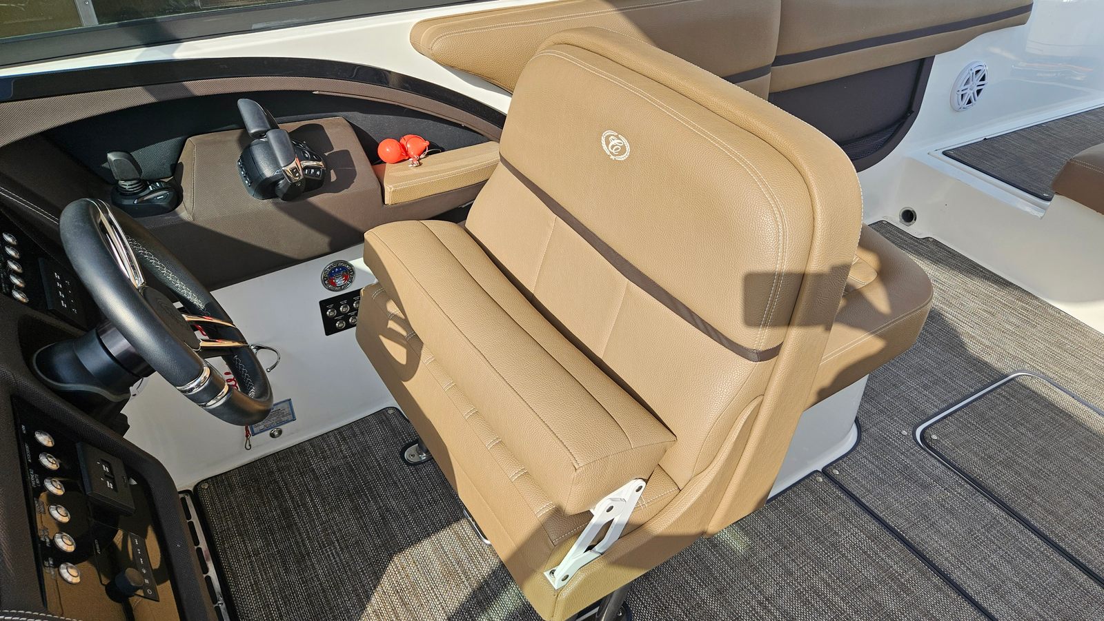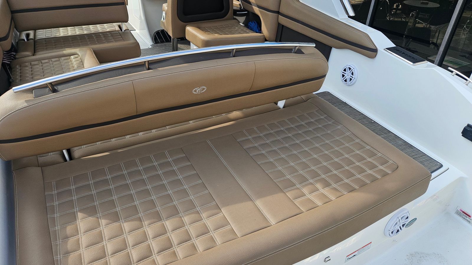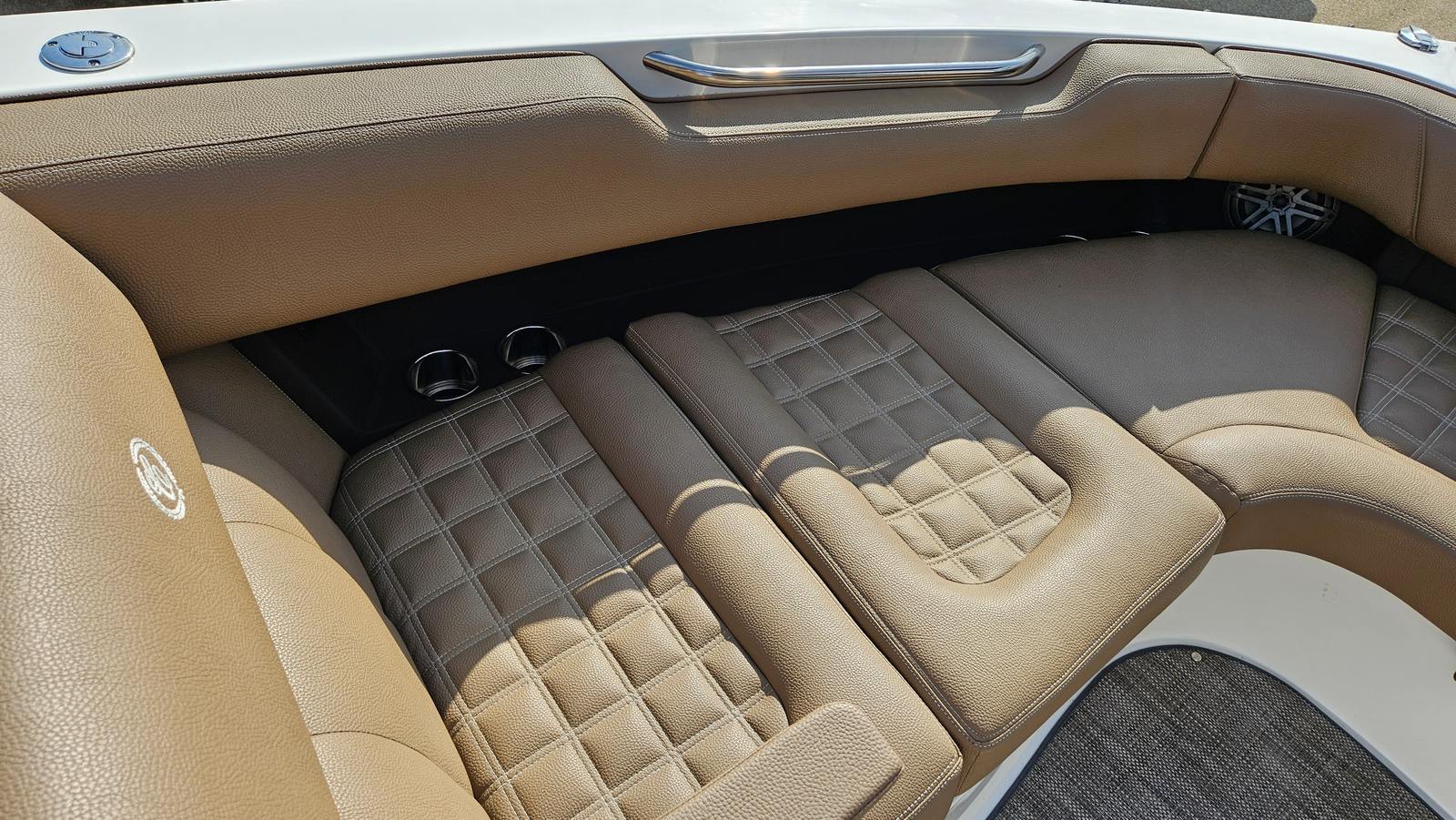 This Bowrider boat for sale is packed with premium features designed to enhance your boating experience. The hard top offers protection from the sun and elements, allowing you to enjoy your time on the water in comfort regardless of the weather. The windlass anchor system makes anchoring effortless, so you can quickly secure your boat and start enjoying your favorite spot. The aluminum triple axle trailer ensures easy transport and storage, giving you the flexibility to explore new waterways or conveniently store your boat when not in use. Snap-in carpet adds a touch of luxury and comfort underfoot, while JL Audio provides high-quality sound for your favorite tunes, creating the perfect atmosphere for any outing.